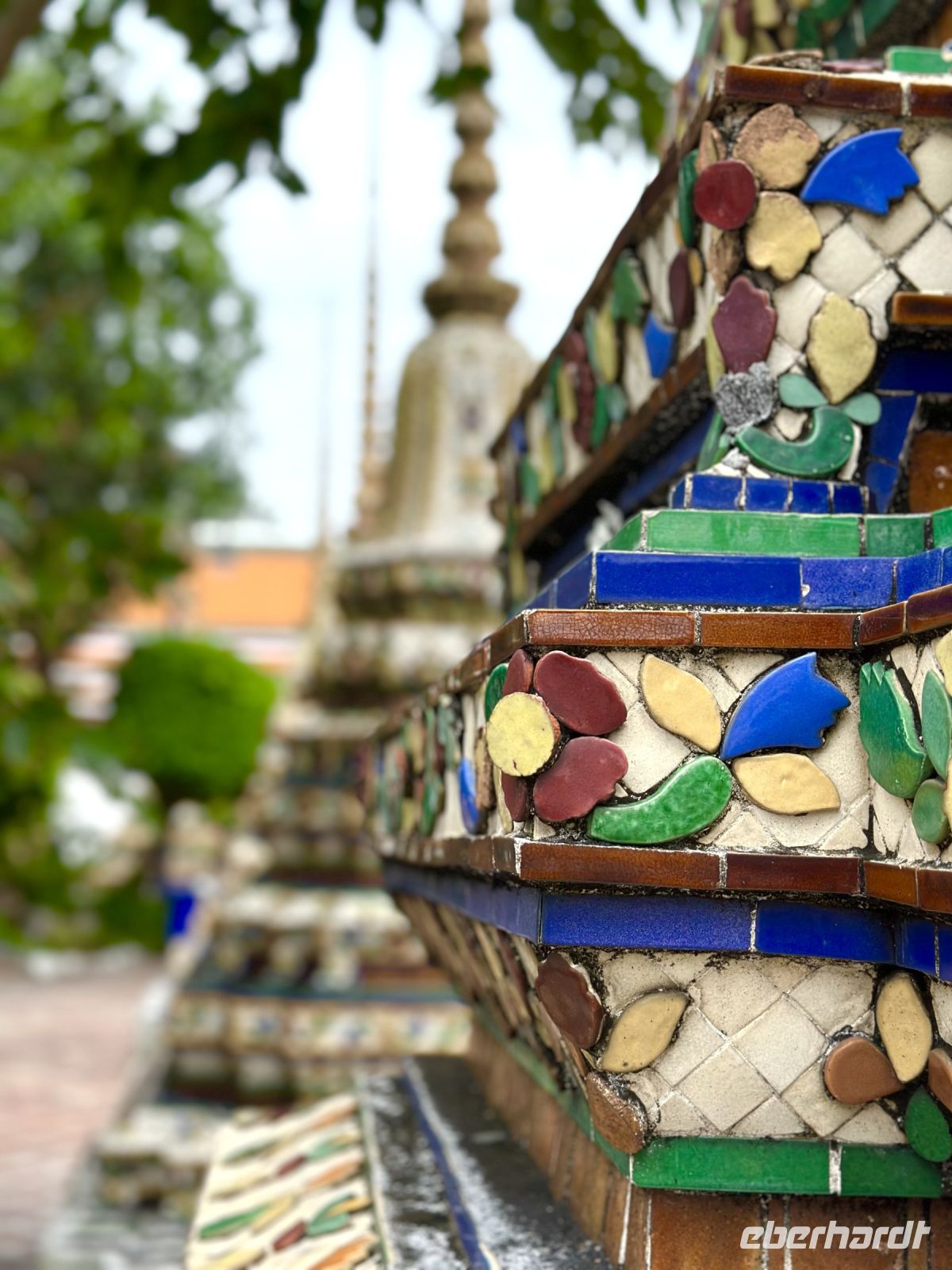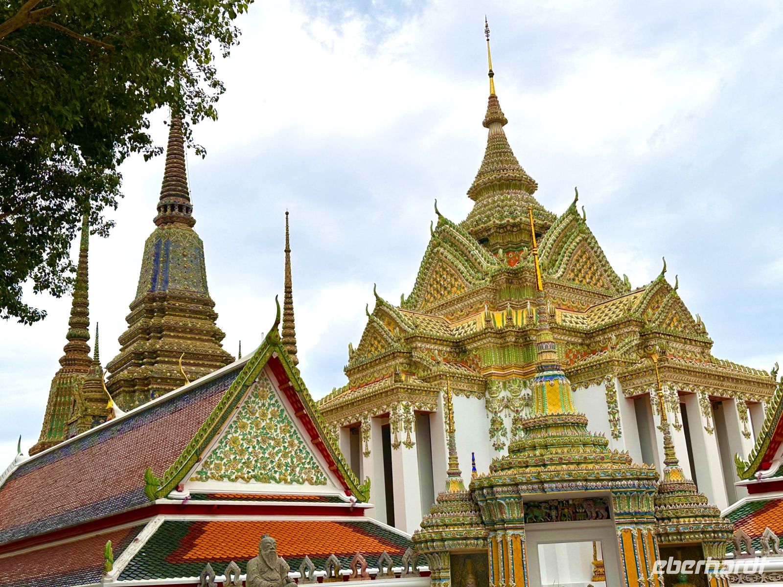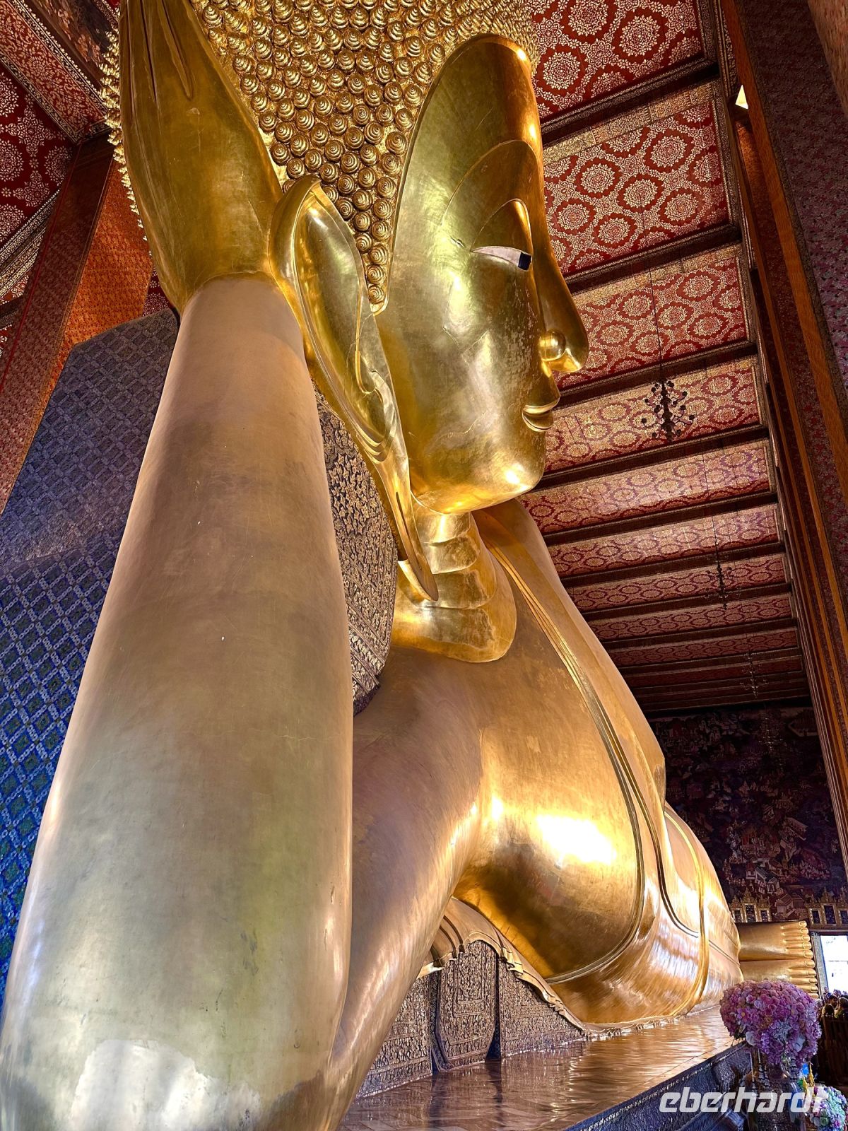 Unser Boot lässt uns später direkt am Wat Arun Tempel raus, den wir nun als erstes besichtigen. Mit der Fähre setzen wir wieder über und schauen uns anschließend den berühmten liegenden Buddha Wat Pho an und sind fasziniert.