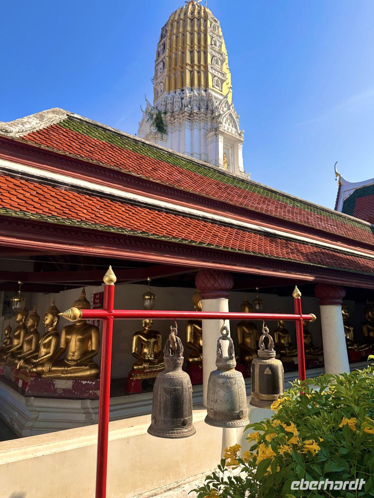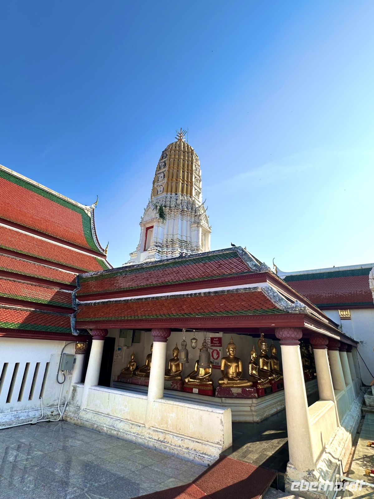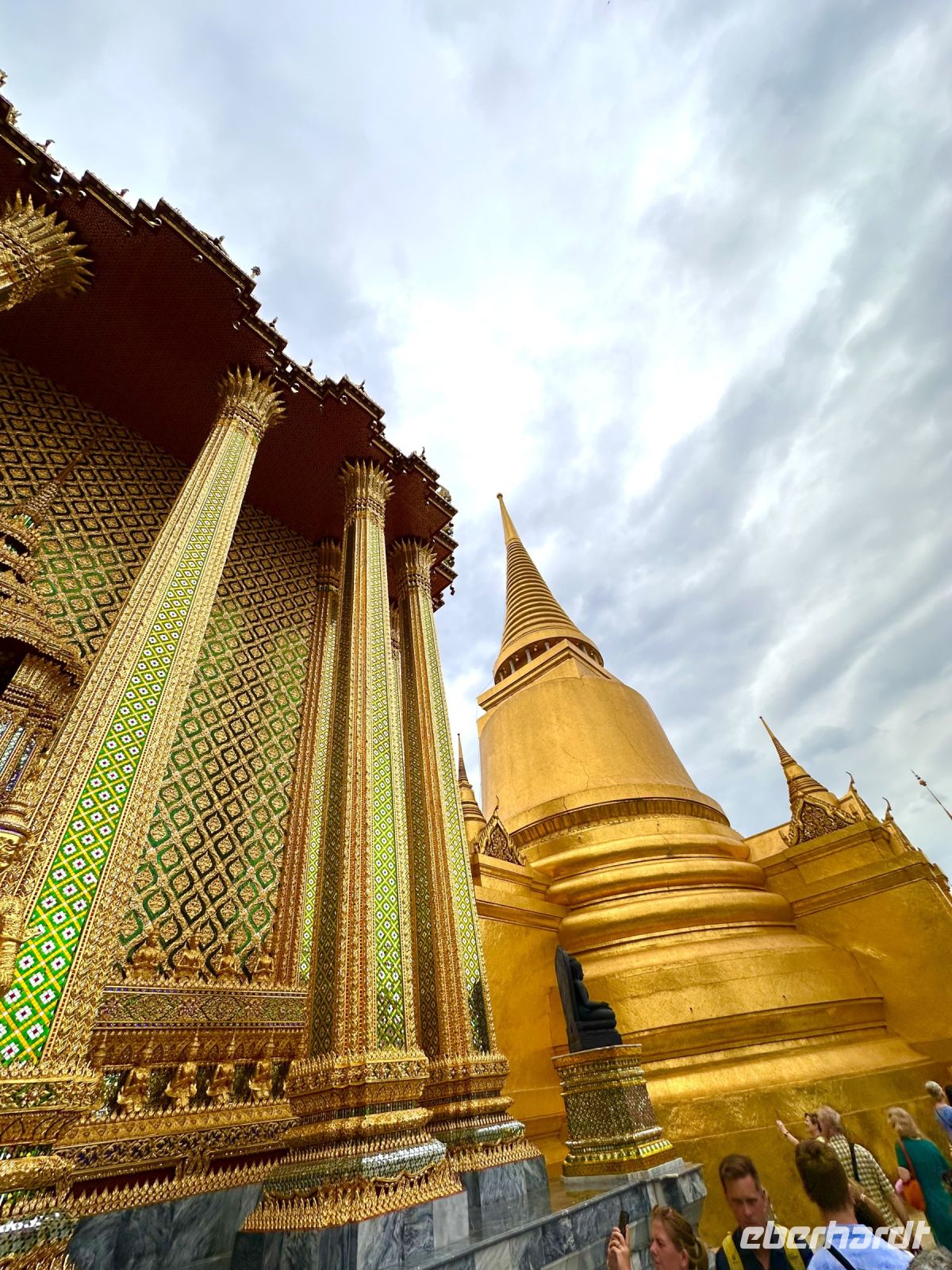 Unser Boot lässt uns später direkt am Wat Arun Tempel raus, den wir nun als erstes besichtigen. Mit der Fähre setzen wir wieder über und schauen uns anschließend den berühmten liegenden Buddha Wat Pho an und sind fasziniert.