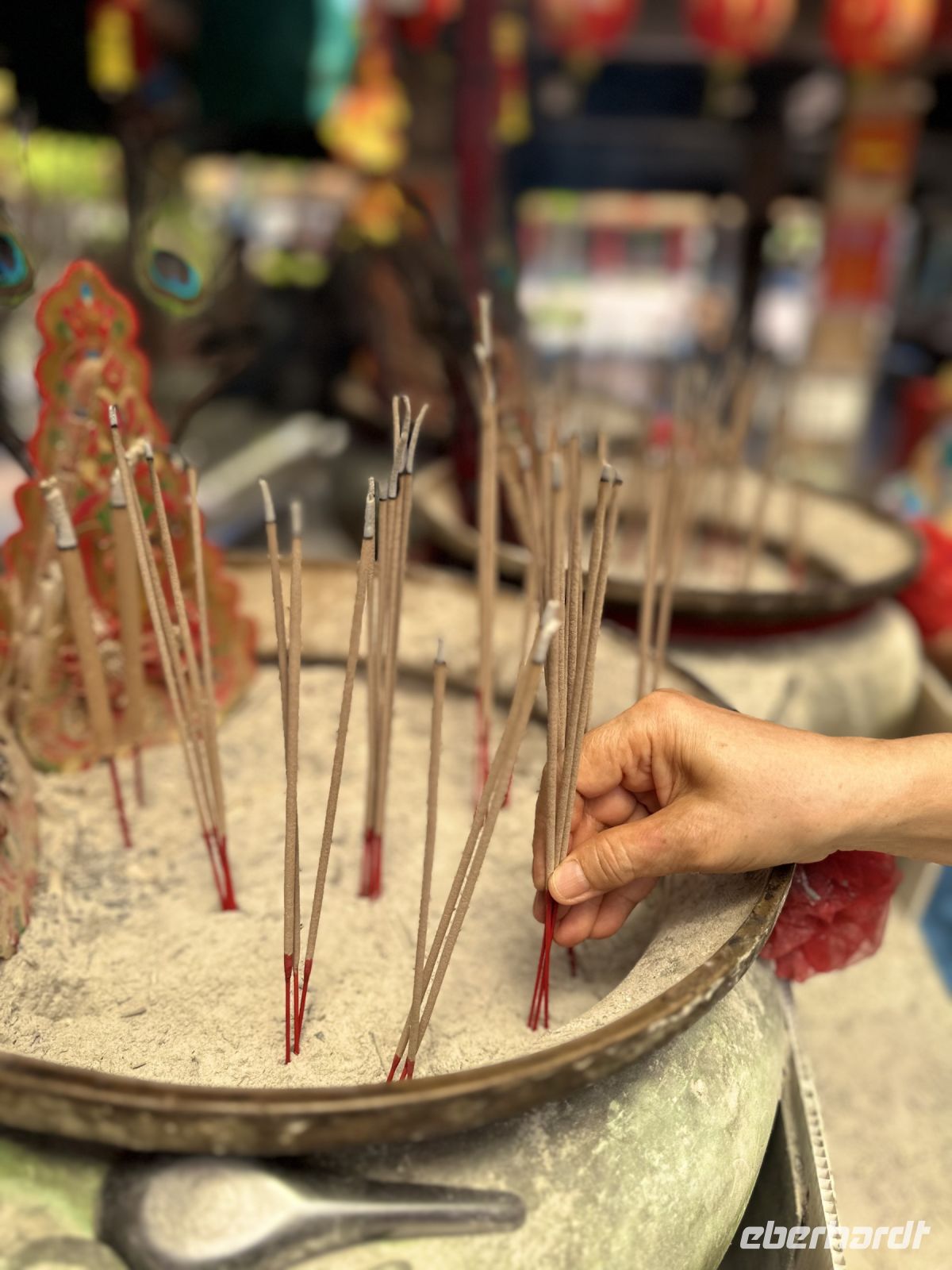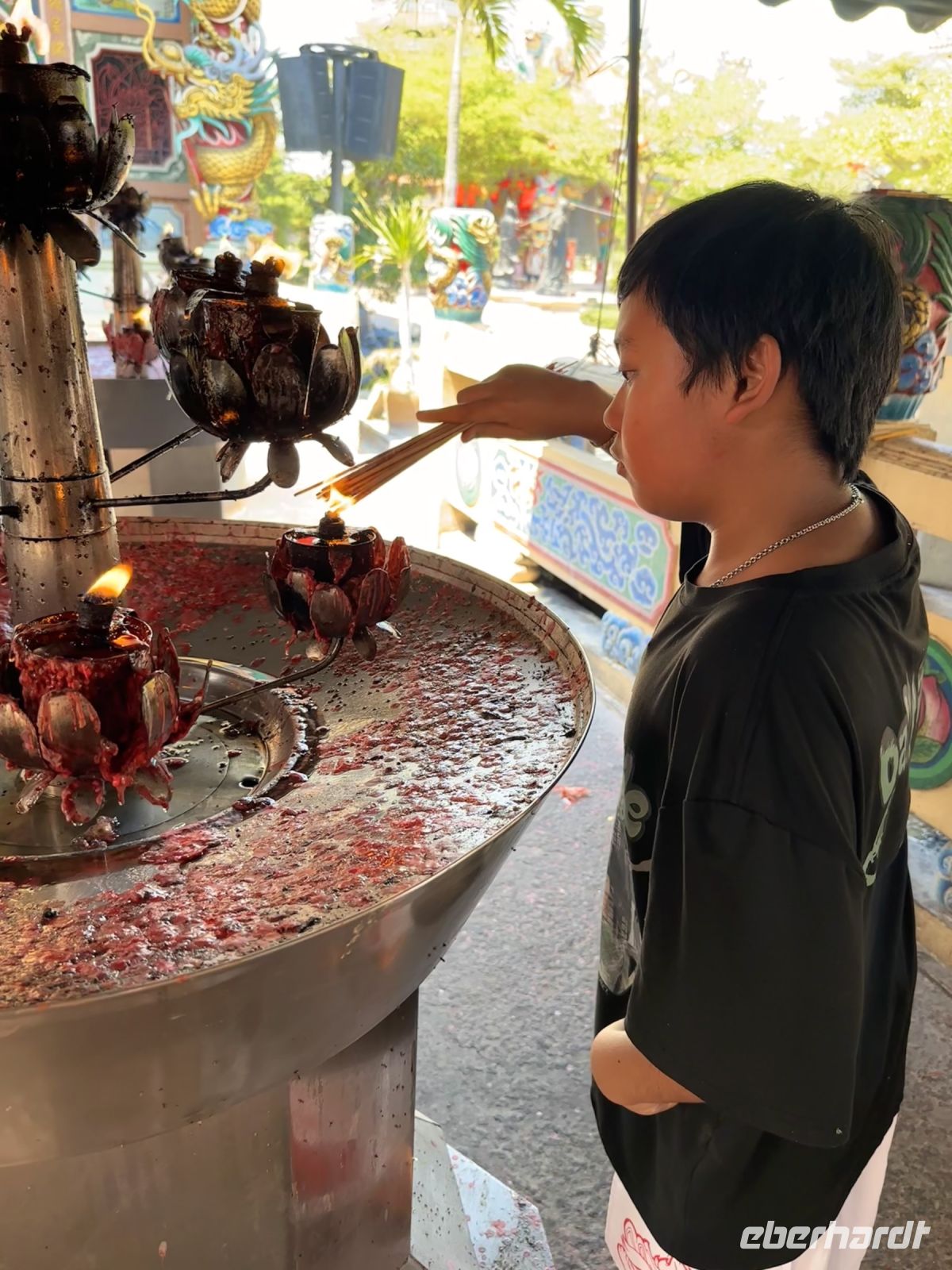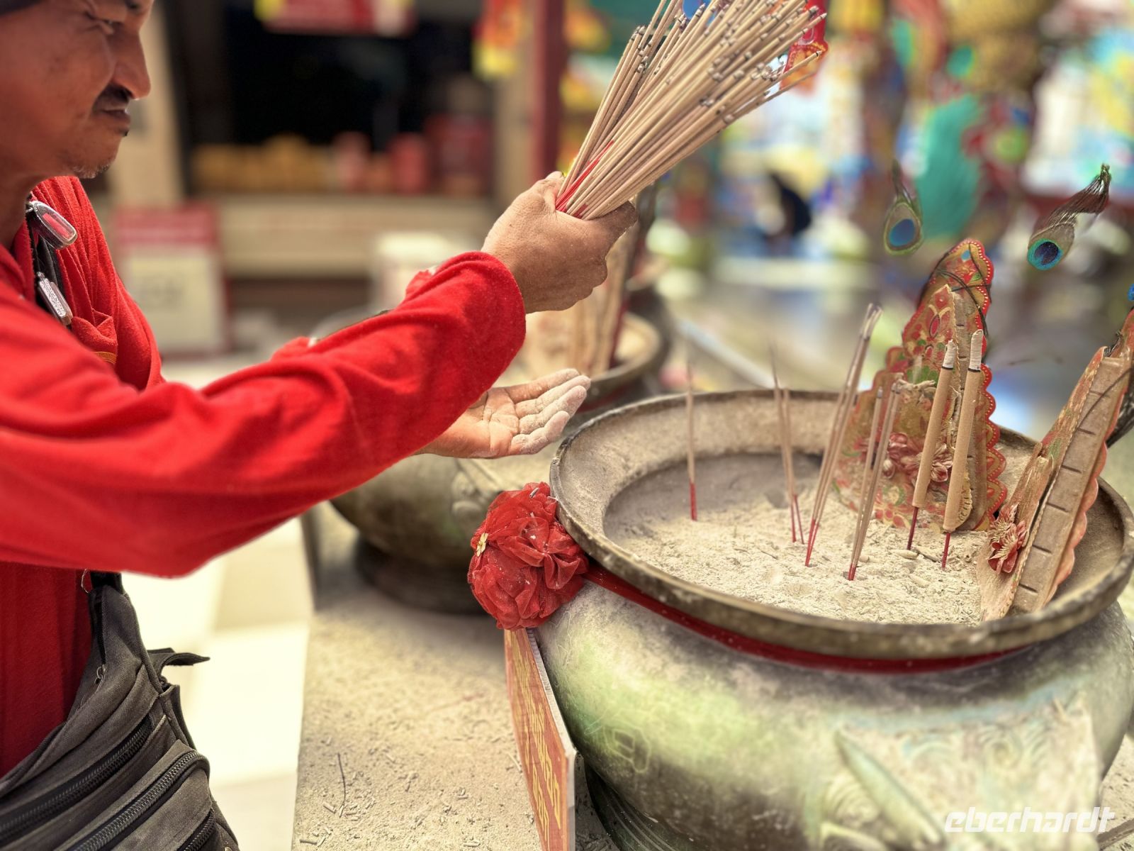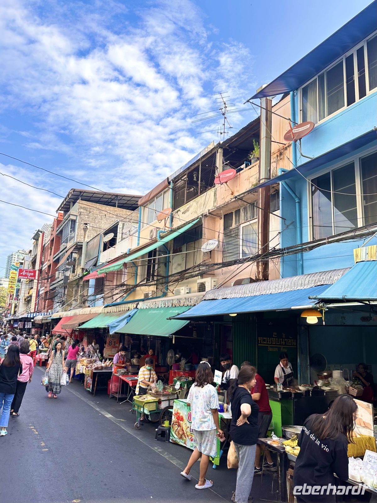 Nach unserer Ankunft zurück in Bangkok haben wir noch kurz Zeit um in den Pool zu springen und fahren anschließend mit unserem örtliche Reiseleiter Taam nach China-Town. Die Hauptstraße von China-Town, die Yaowarat Road, verwandelt sich jeden Abend zu einem riesigen Street-Food-Market mit unzähligen Ständen bis in die kleinen Nebengassen hinein. Wir futtern uns einmal durch den ganzen Markt, von Stand zu Stand. Wir wollen alles mal testen und probieren es in der Gruppe, jeder wie er mag.