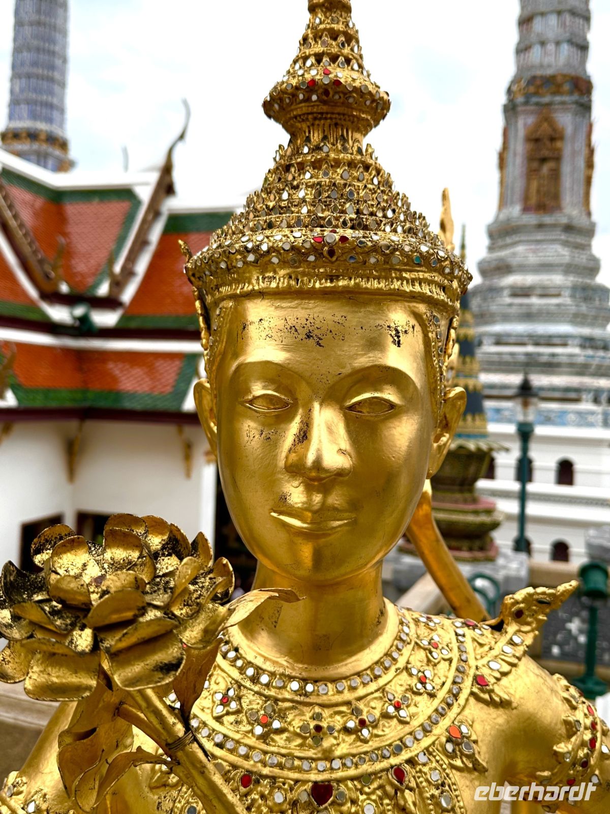 Auf dem Weg zu Fuß zum benachbarten Königspalast führt der Reisebegleiter die Gruppe schon mal in die Köstlichkeiten der bekannten thailändischen Garküchen in den Straßen Bangkoks ein. Gestärkt mit ganz leckeren Kokosbällchen besichtigen wir das riesige Gelände des Königspalastes. Auf dem Weg nach China-Town stärken wir uns noch in einem ausgewählten Restaurant am Buffet und besuchen anschließend den Goldenen Buddha bevor wir voll mit vielen neuen Eindrücken im Kopf zurück ins Hotel kommen, um etwas zu entspannen und die Annehmlichkeiten des Hotels zu nutzen.