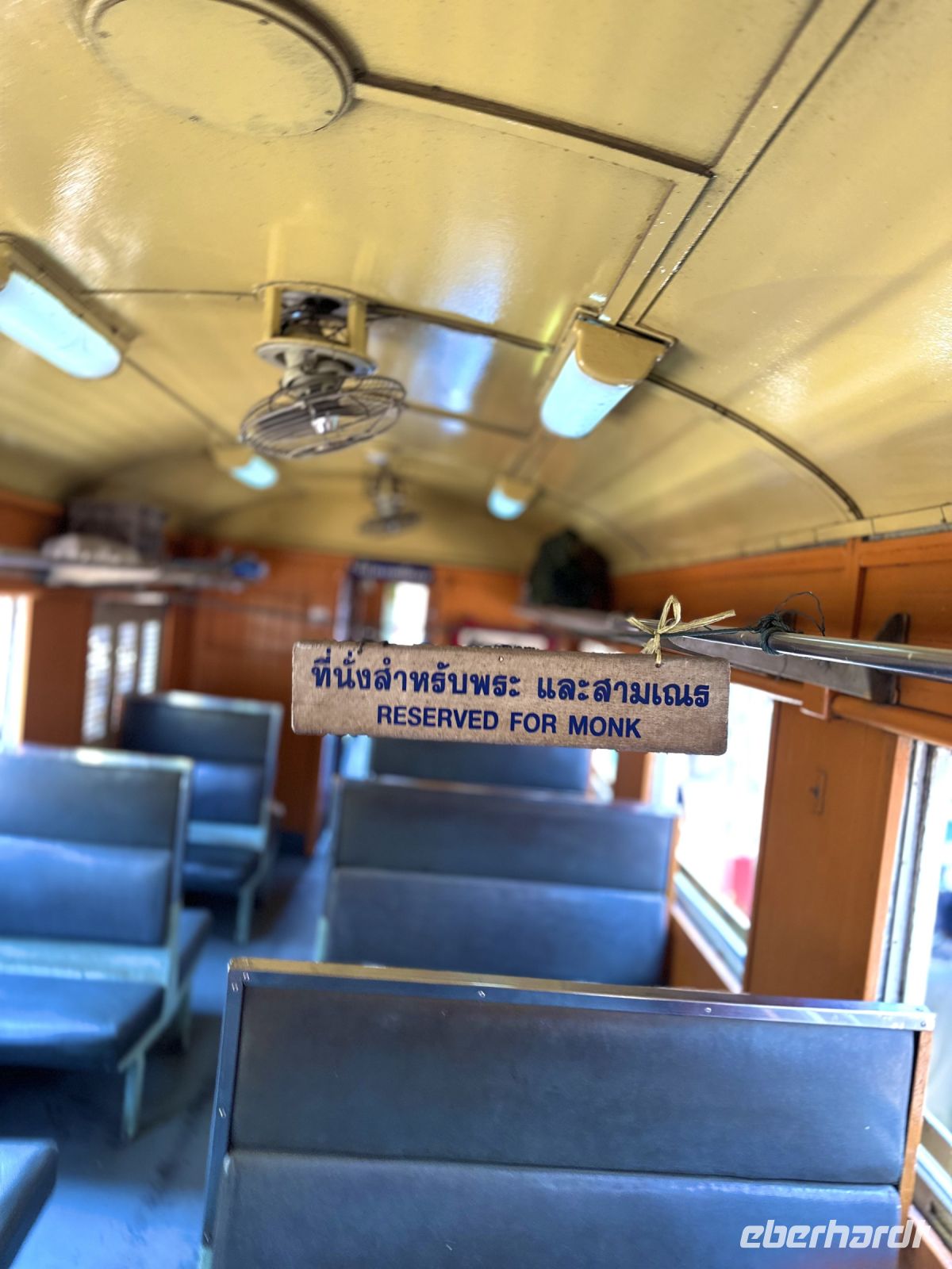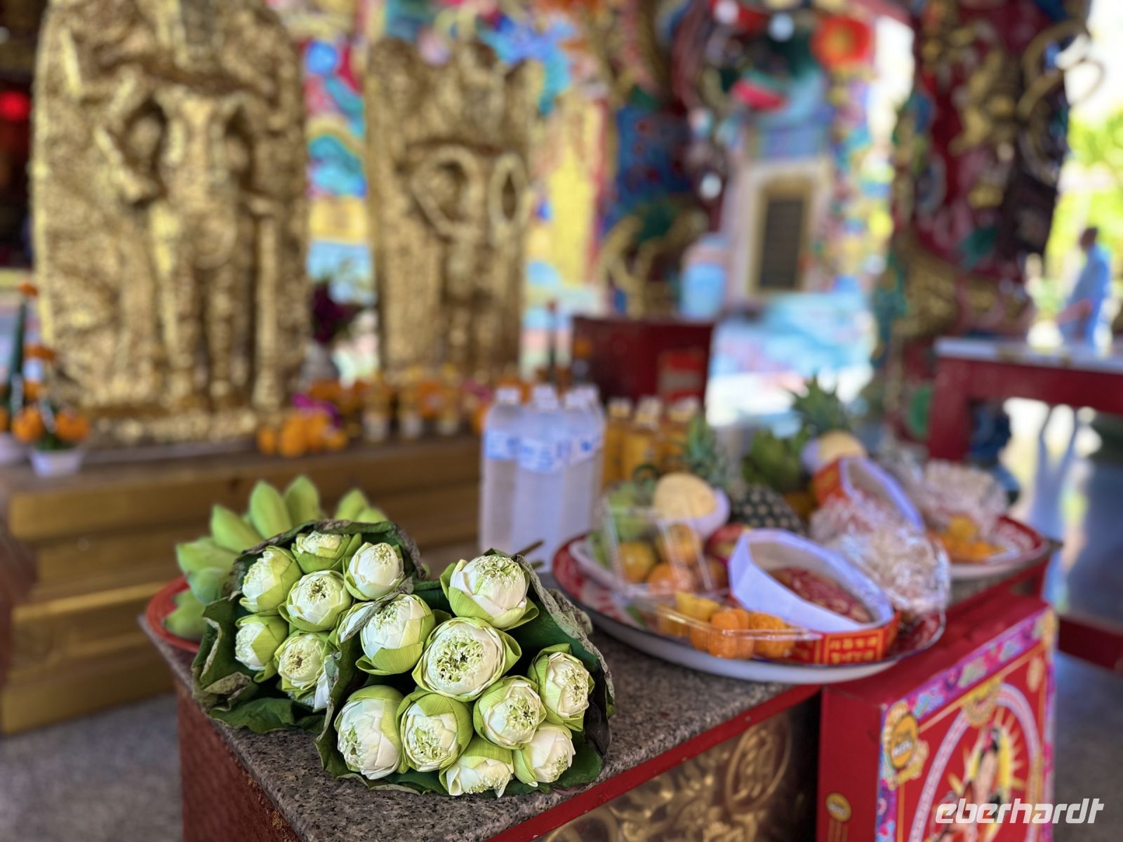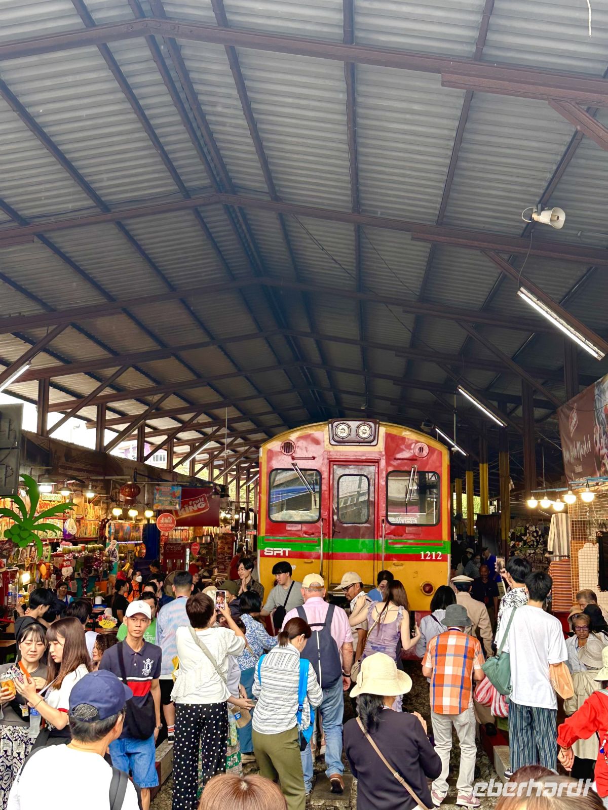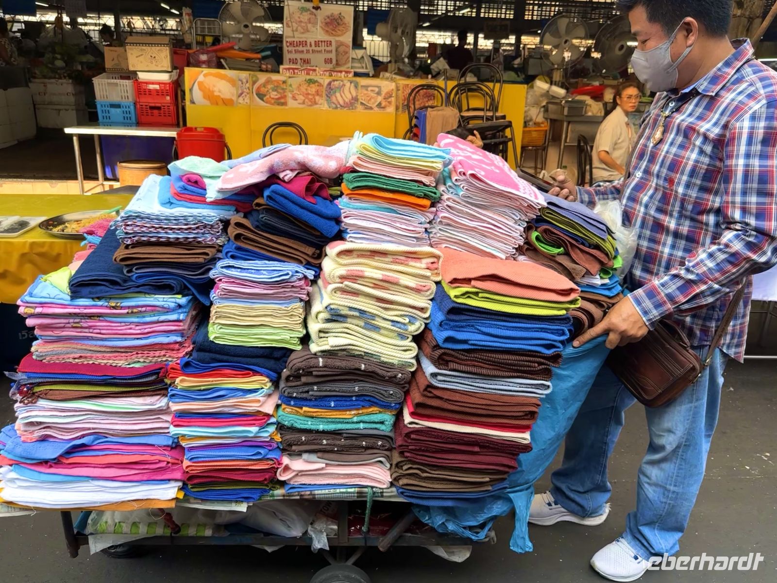 Wir fahren raus ins Bangkoker Umland zu dem berühmten Train Market. Der Markt hat sich da entlang der Bahnlinie etabliert, und der Zug fährt quasi quer durch den Markt. Die Stände sind so dicht an das Bahngleis gebaut, dass die Auslagen und Markisen der stände jedes Mal schnell zurückgebaut werden müssen wenn ein Zug einrollt. Dies geschieht alles in Windeseile und ist geübte tägliche Praxis der Standbetreiber. Wir schauen dem Schauspiel zu und erkunden anschließend den Markt, bis der nächste Zug kommt und das Schauspiel von vorn beginnt.