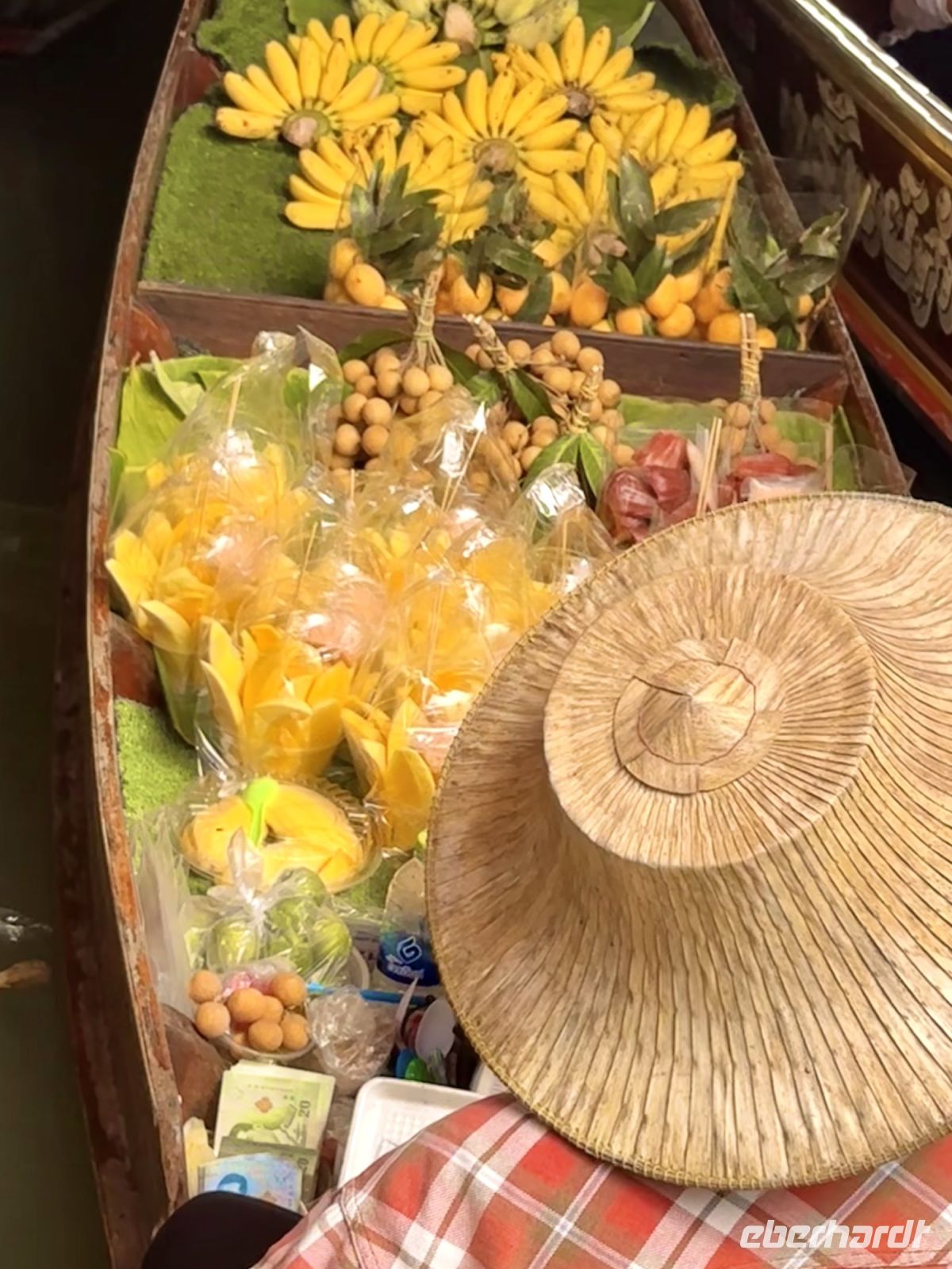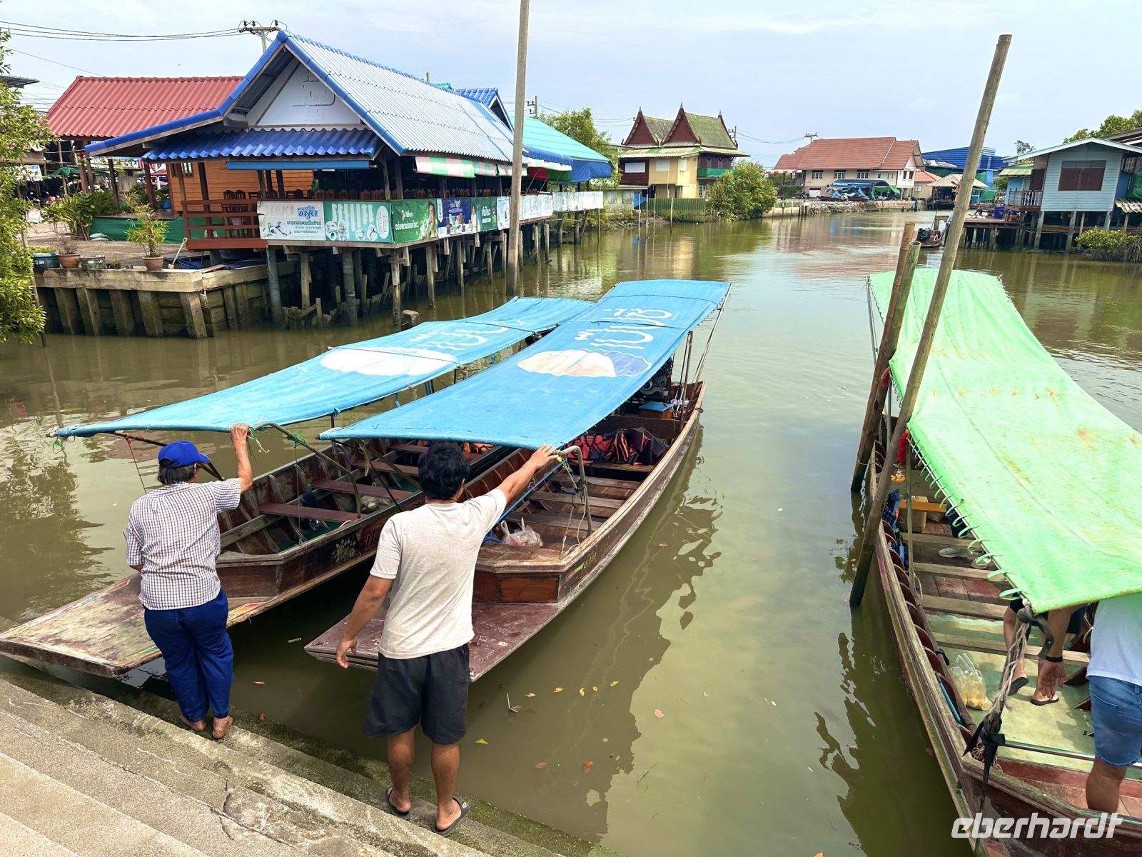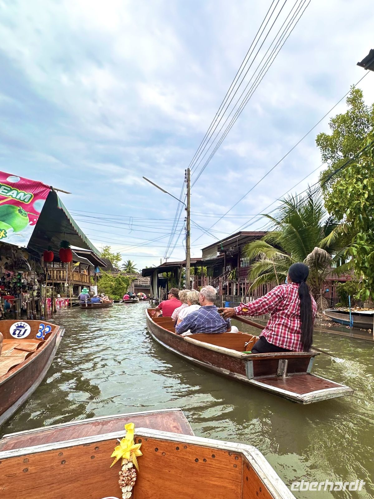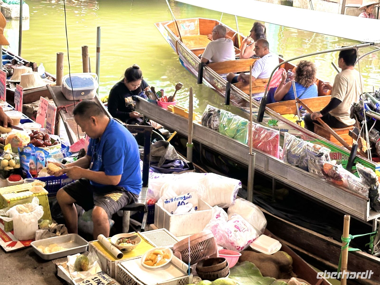 Anschließend fahren wir weiter zu einem Floating Market. Auf einem Longtailboot durchqueren wir den schwimmenden Markt auf dem Händler auf ihren Booten waren zum Kauf anbieten. Früher war dies gängige Praxis für die einheimischen, um sich mit Waren des täglichen Bedarfs zu versorgen.