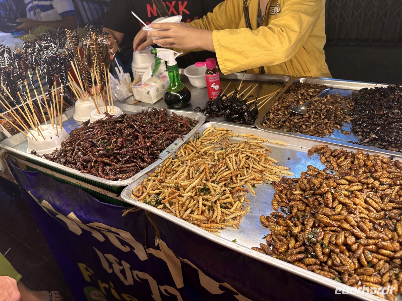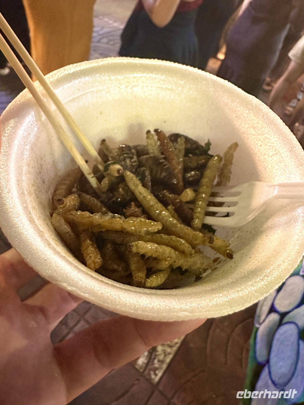 Am Abend besuchen wir einen nahe gelegenen Nachtmarkt und probieren an den verschiedenen Ständen nach Belieben die verschiedensten Köstlichkeiten aus.