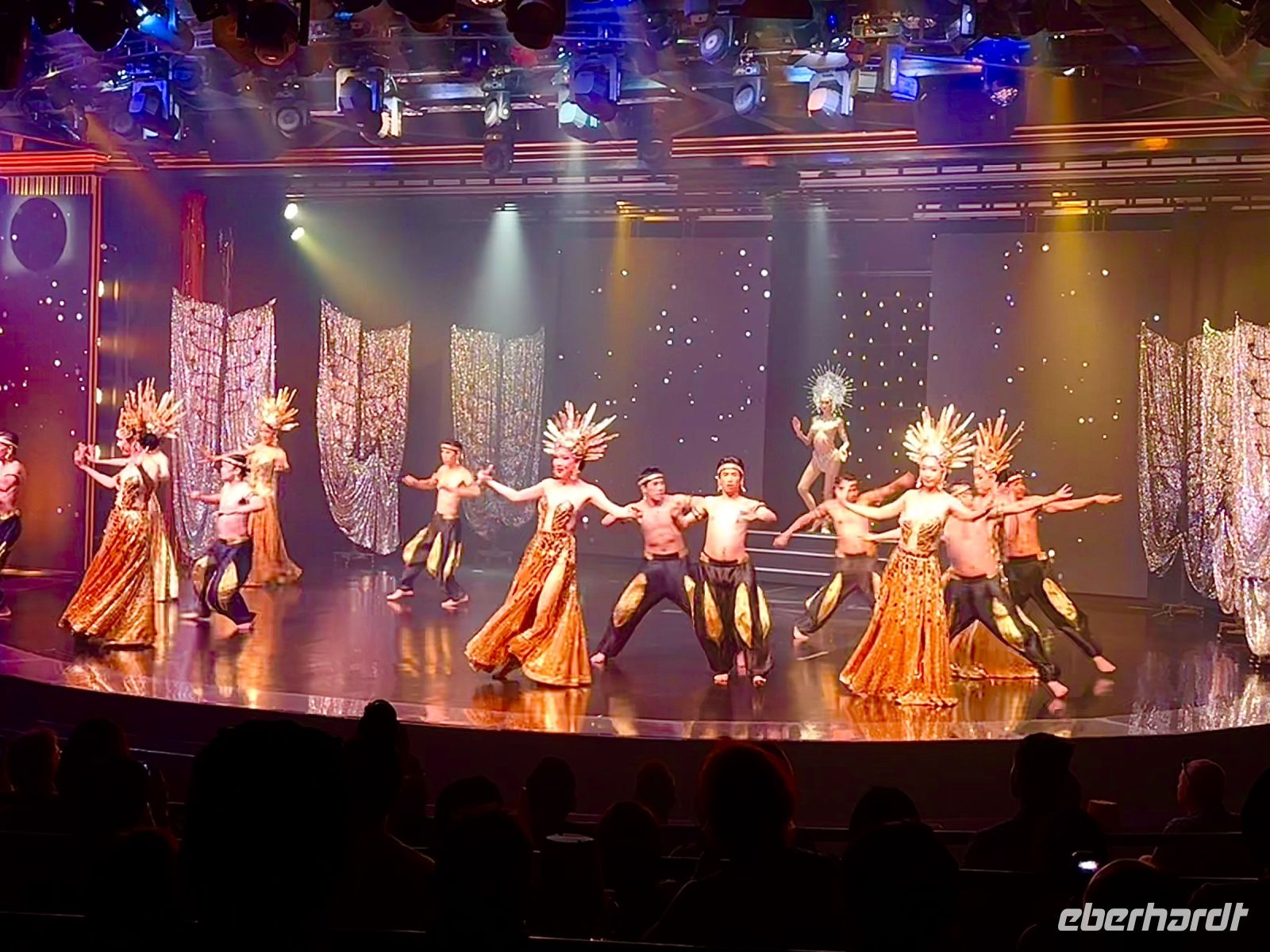 Gefühlt ist die Reisegruppe anschließend kugelrund und wir fahren wieder zurück ins Hotel. Am Abend erwartet uns noch ein schöner Abend in einem nahegelegenen Kabarett-Theater. Wir nehmen unser Abendessen direkt im Theater ein und werden bereits beim Dinner mit einer thailändischen Aufführung unterhalten. Anschließend genießen wir die Show im großen Saal.