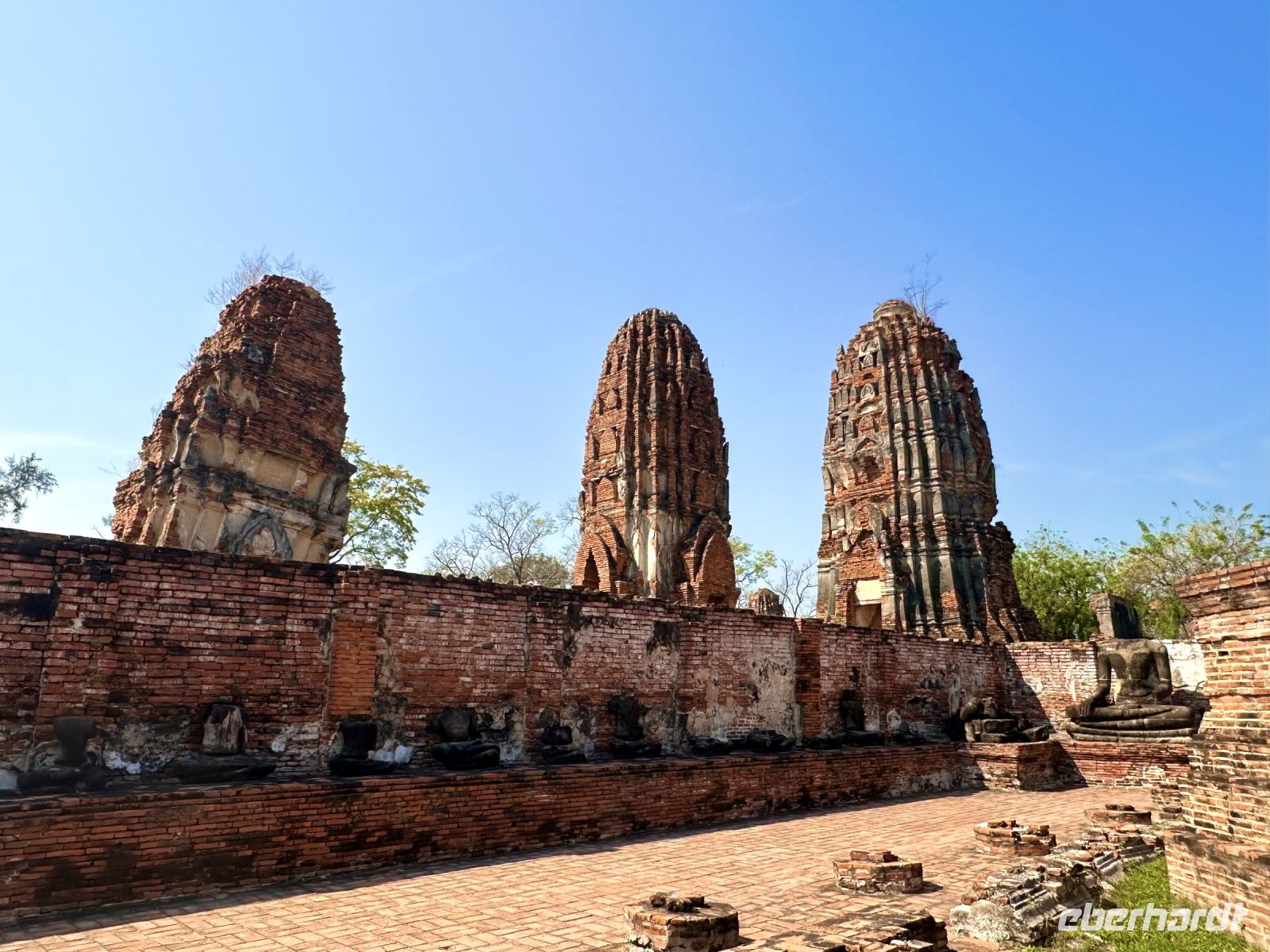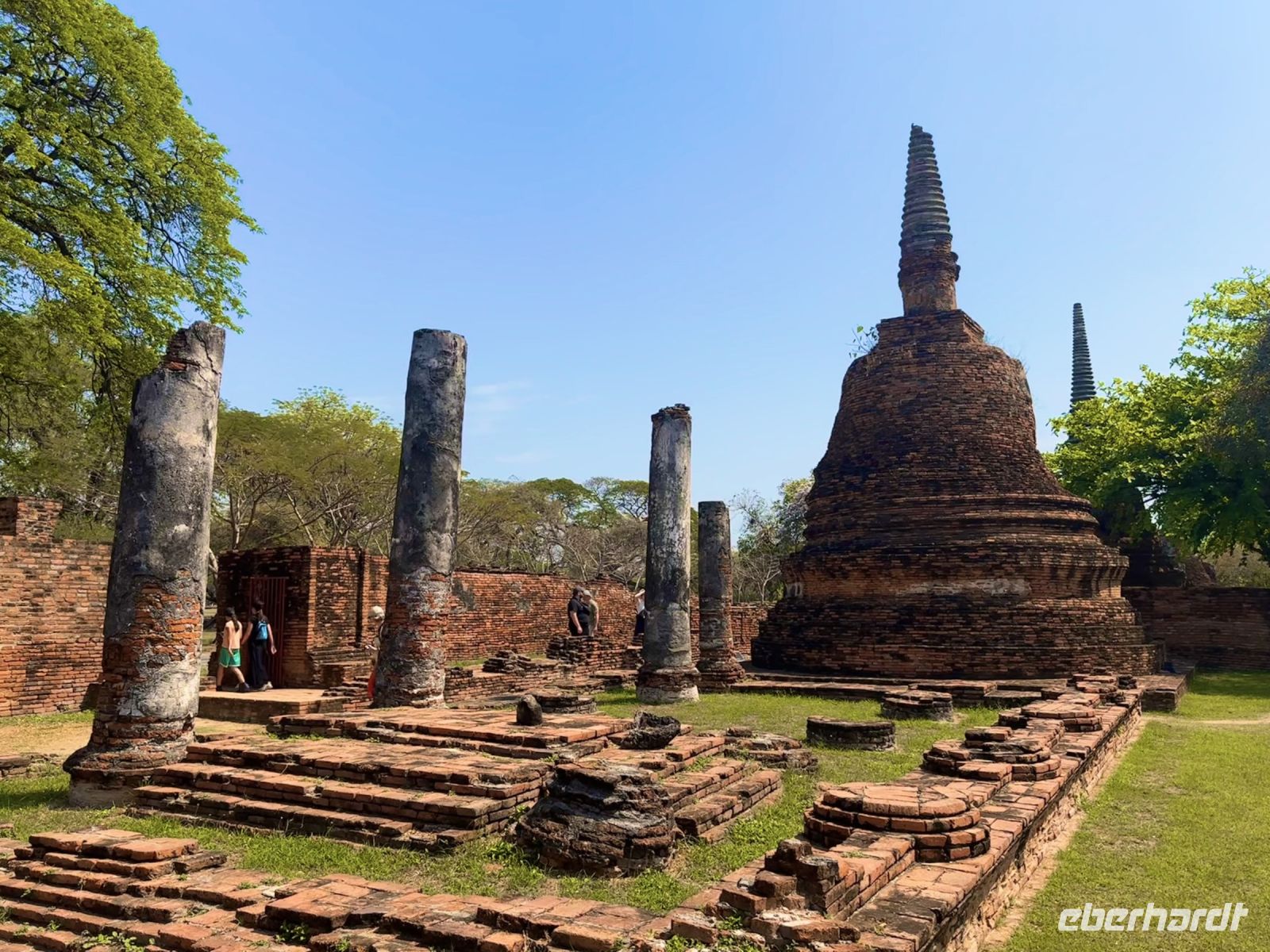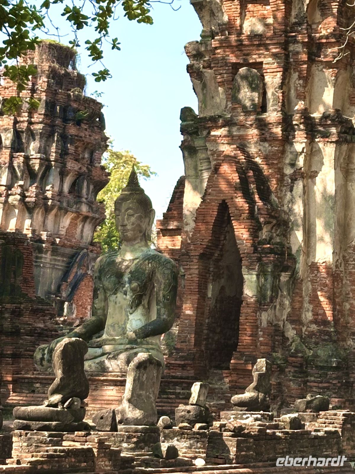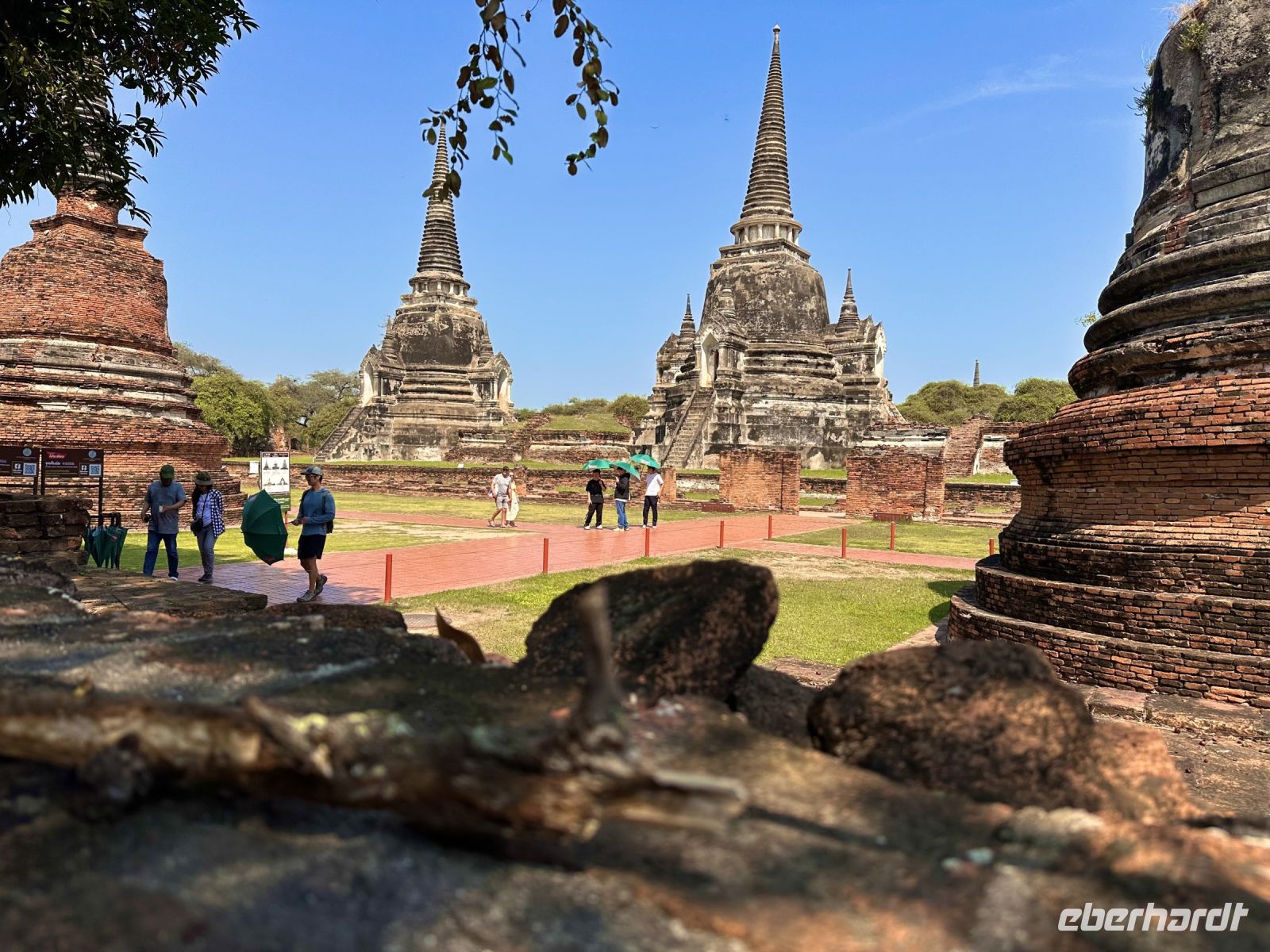 Heute verlassen wir die große Stadt und reisen mit unseren Bussen weiter in Richtung Norden. Entlang der schönen Landschaften genießen wir die Fahrt und kommen in die einstige Hauptstadt des Königreichs Siam. In Ayuthaya besichtigen wir die weitläufigen Ruinen der damaligen Temperanlagen und sind sehr beeindruckt.
