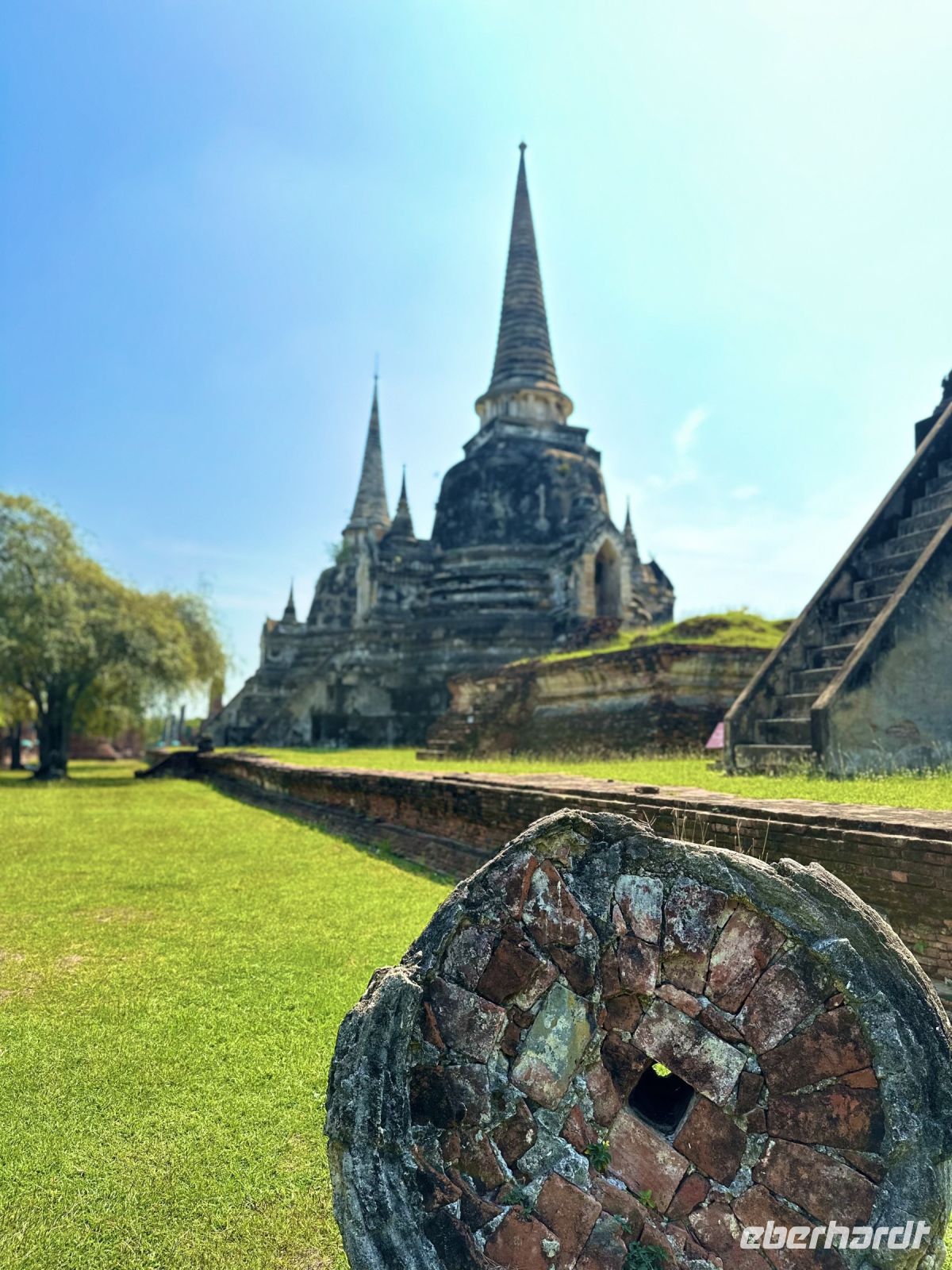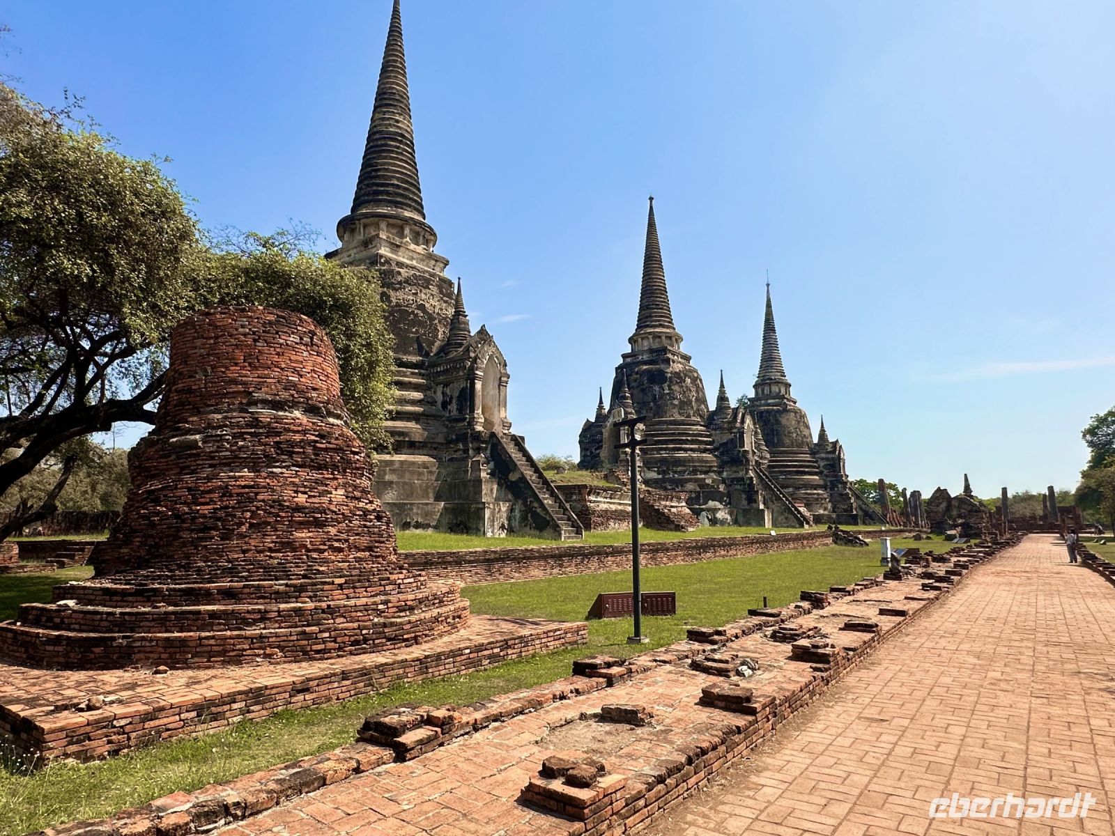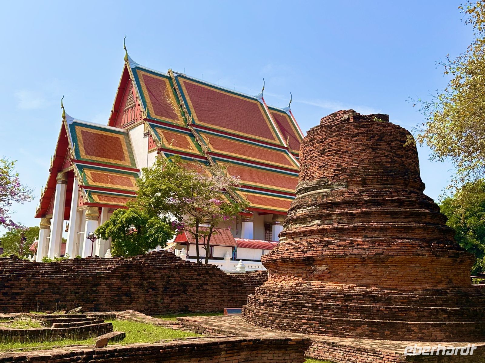 Heute verlassen wir die große Stadt und reisen mit unseren Bussen weiter in Richtung Norden. Entlang der schönen Landschaften genießen wir die Fahrt und kommen in die einstige Hauptstadt des Königreichs Siam. In Ayuthaya besichtigen wir die weitläufigen Ruinen der damaligen Temperanlagen und sind sehr beeindruckt.
