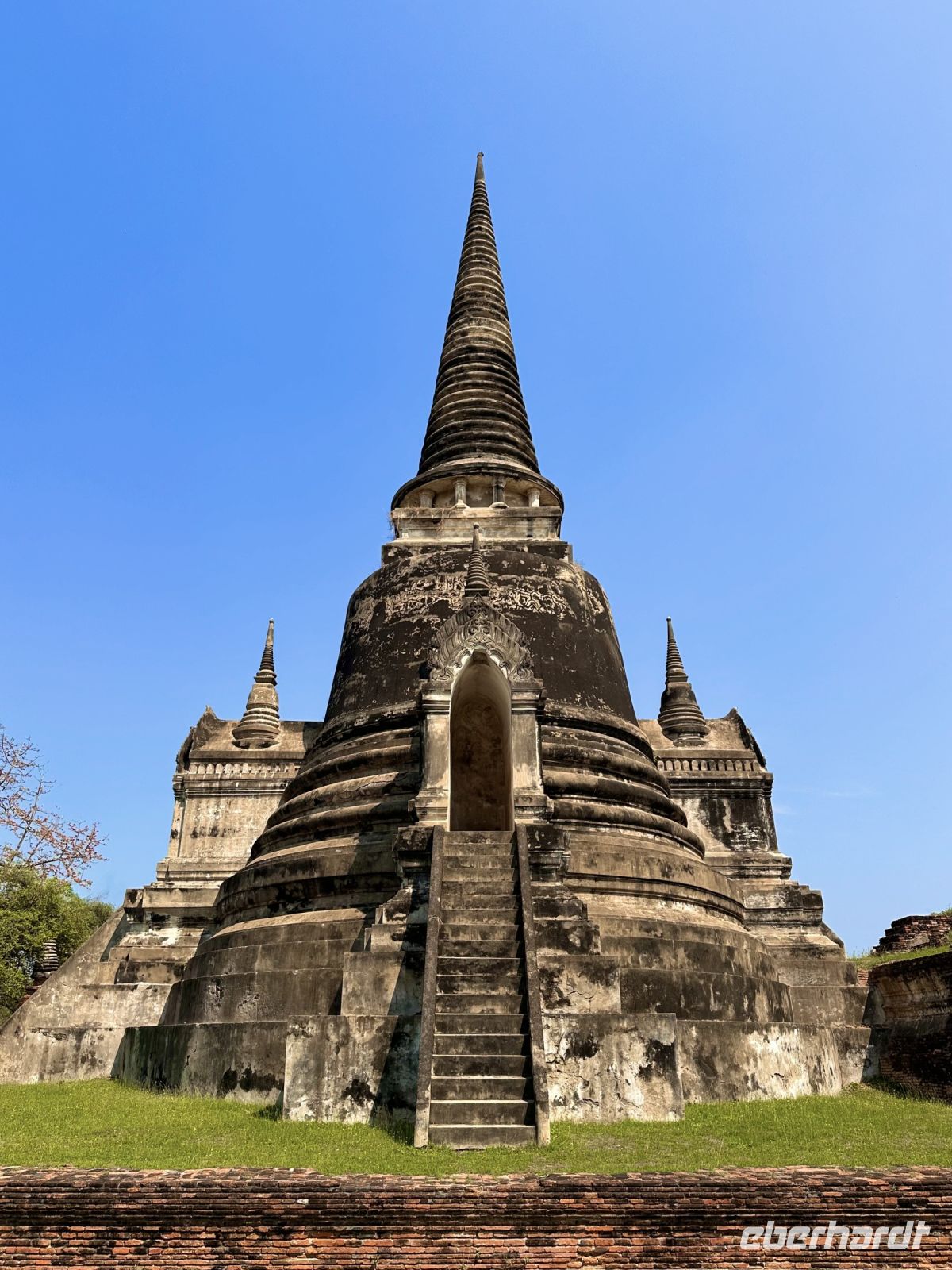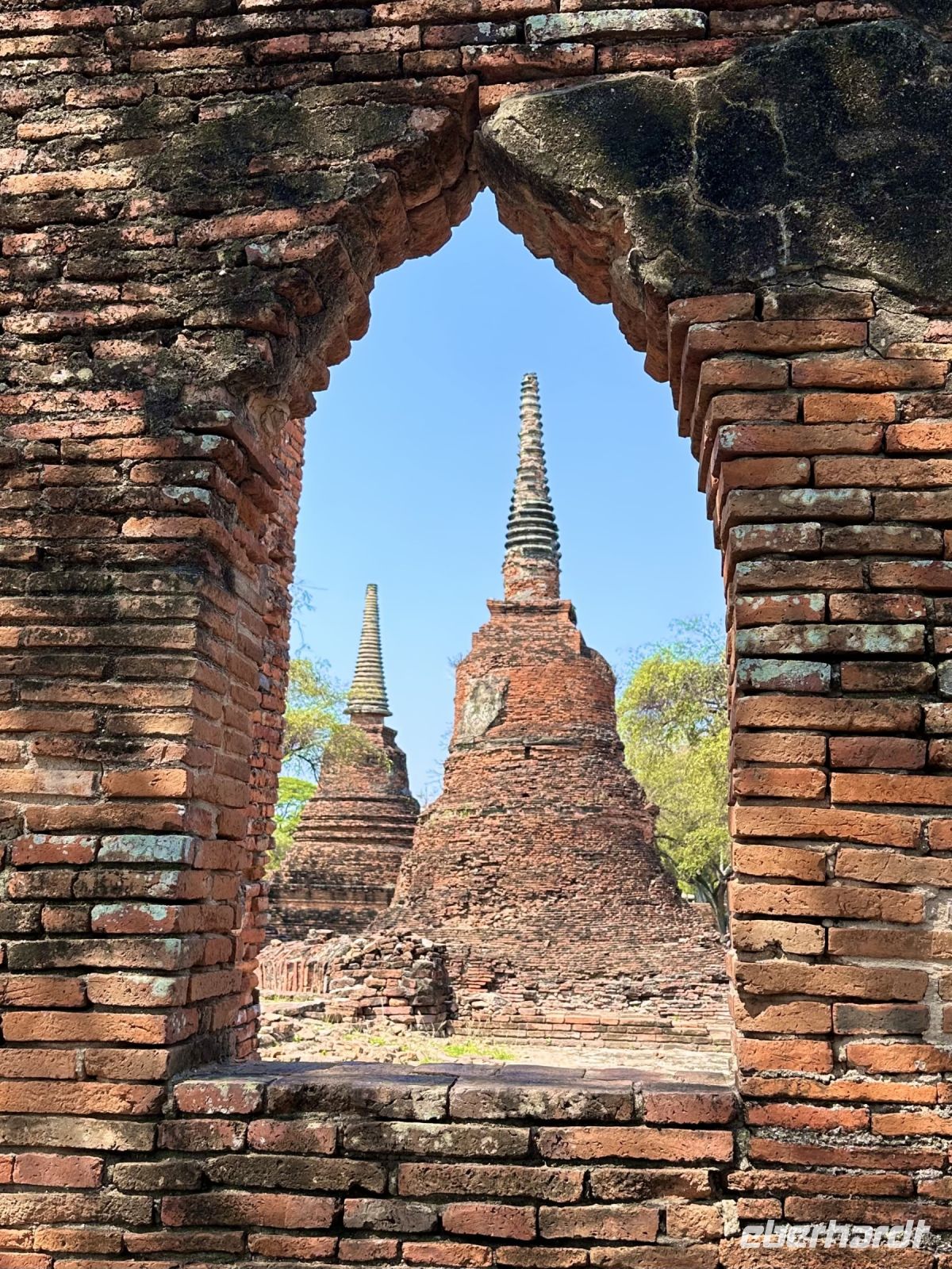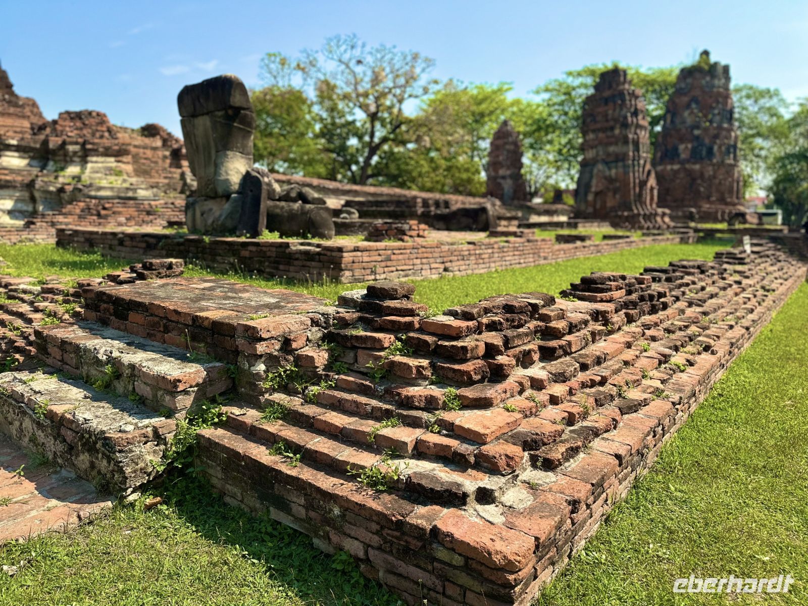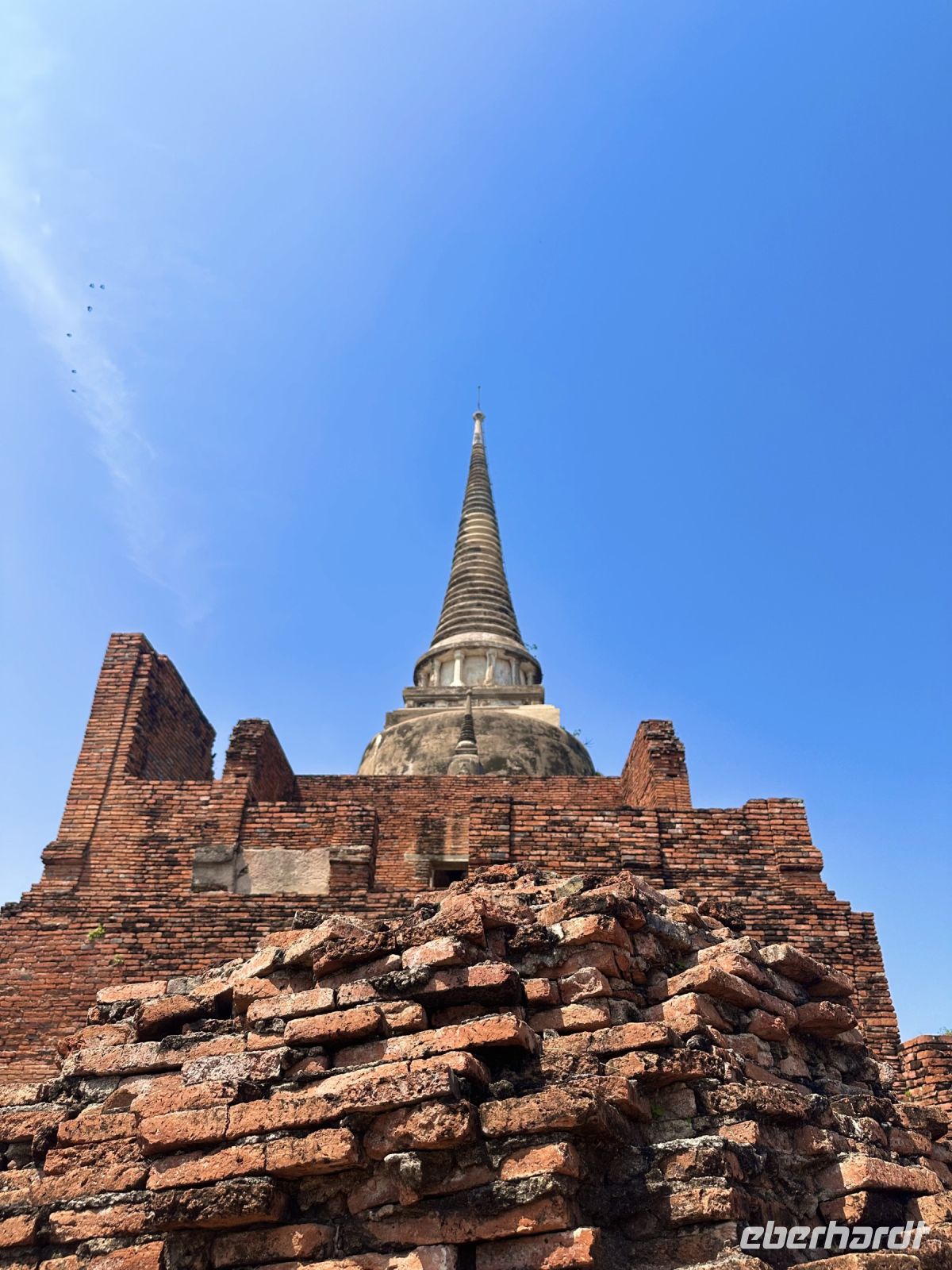 Heute verlassen wir die große Stadt und reisen mit unseren Bussen weiter in Richtung Norden. Entlang der schönen Landschaften genießen wir die Fahrt und kommen in die einstige Hauptstadt des Königreichs Siam. In Ayuthaya besichtigen wir die weitläufigen Ruinen der damaligen Temperanlagen und sind sehr beeindruckt.