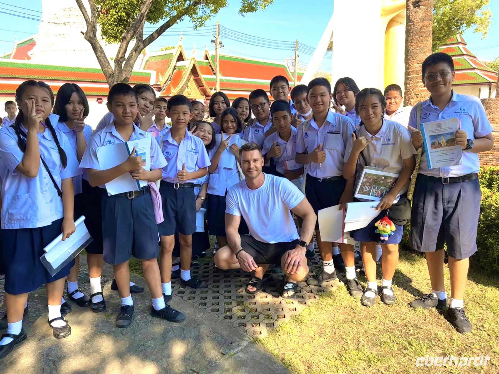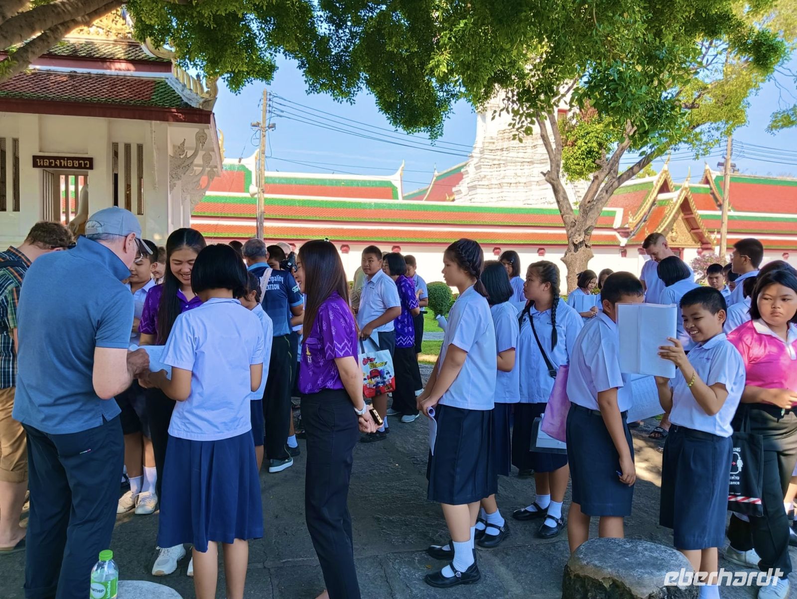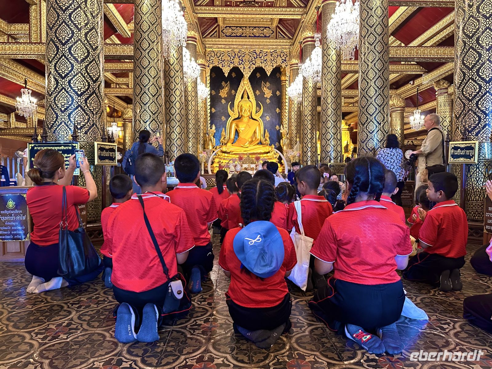 Heute geht unsere Rundreise weiter. Wir packen unsere sieben Sachen und besichtigen in Phitsanulok noch die Tempelanlage Wat Phra Sri Mahatat. Nach der Besichtigung der Tempelanlage treffen wir noch auf eine thailändische Schulklasse, die uns lieb fragt ob wir ihnen bei ihrem Schulprojekt helfen können. Sehr gern sind wir behilflich und helfen den Schülern ihr englisches Smaltalkwissen zu üben.