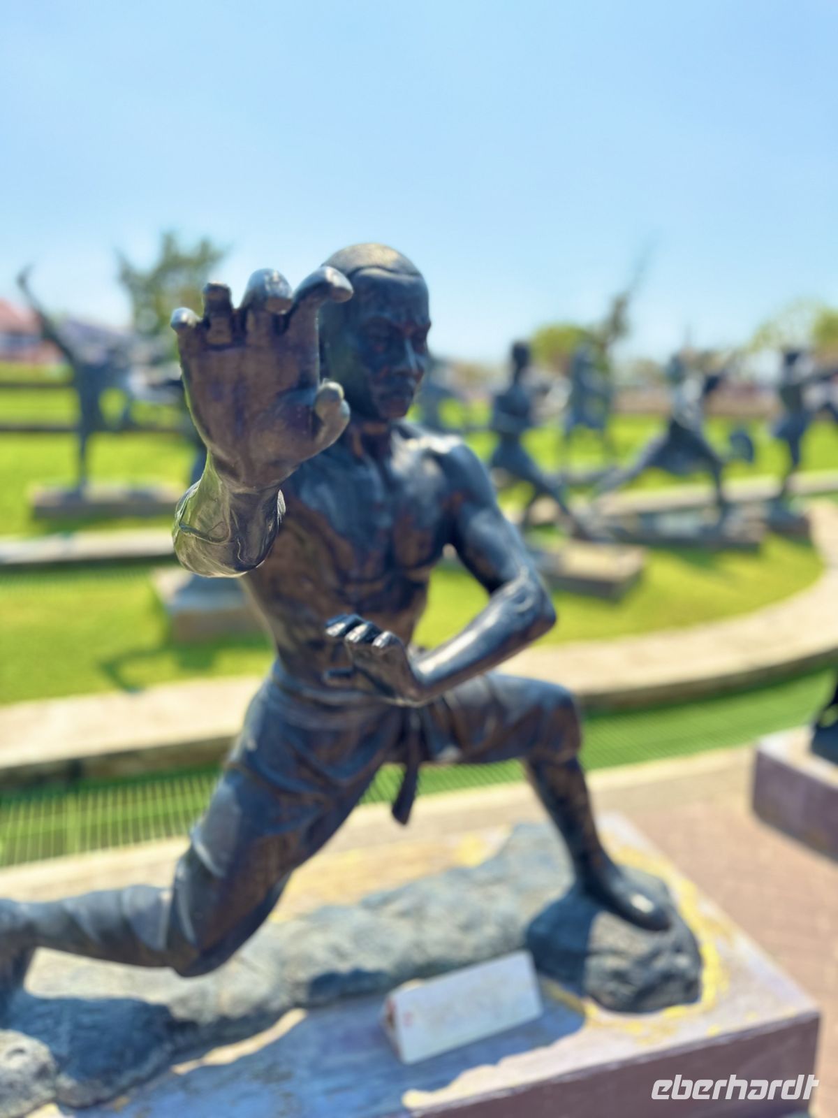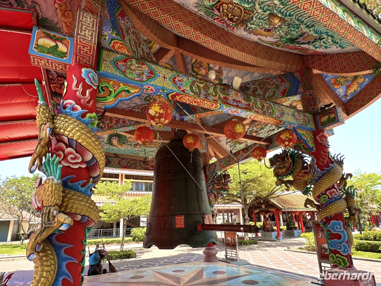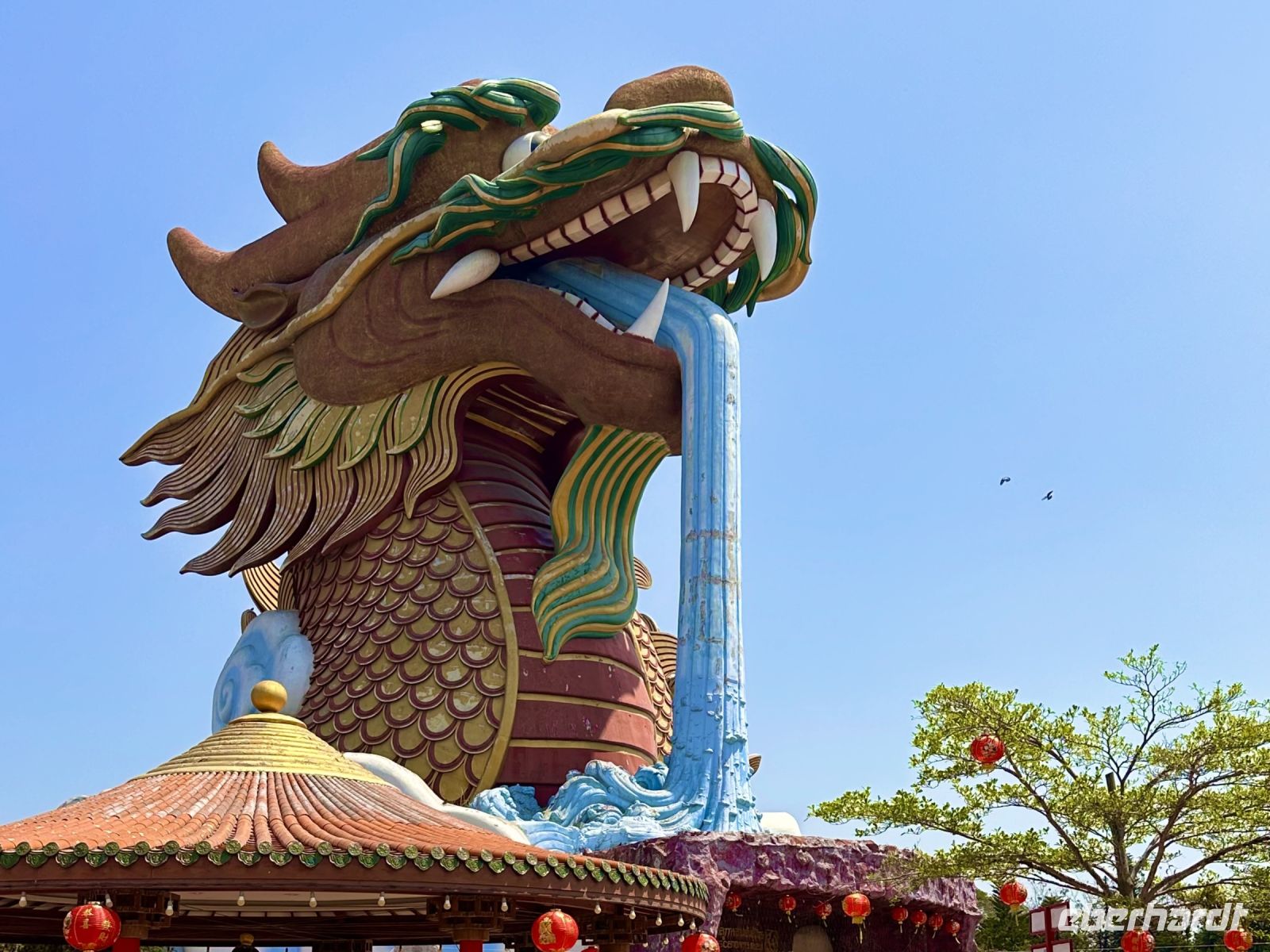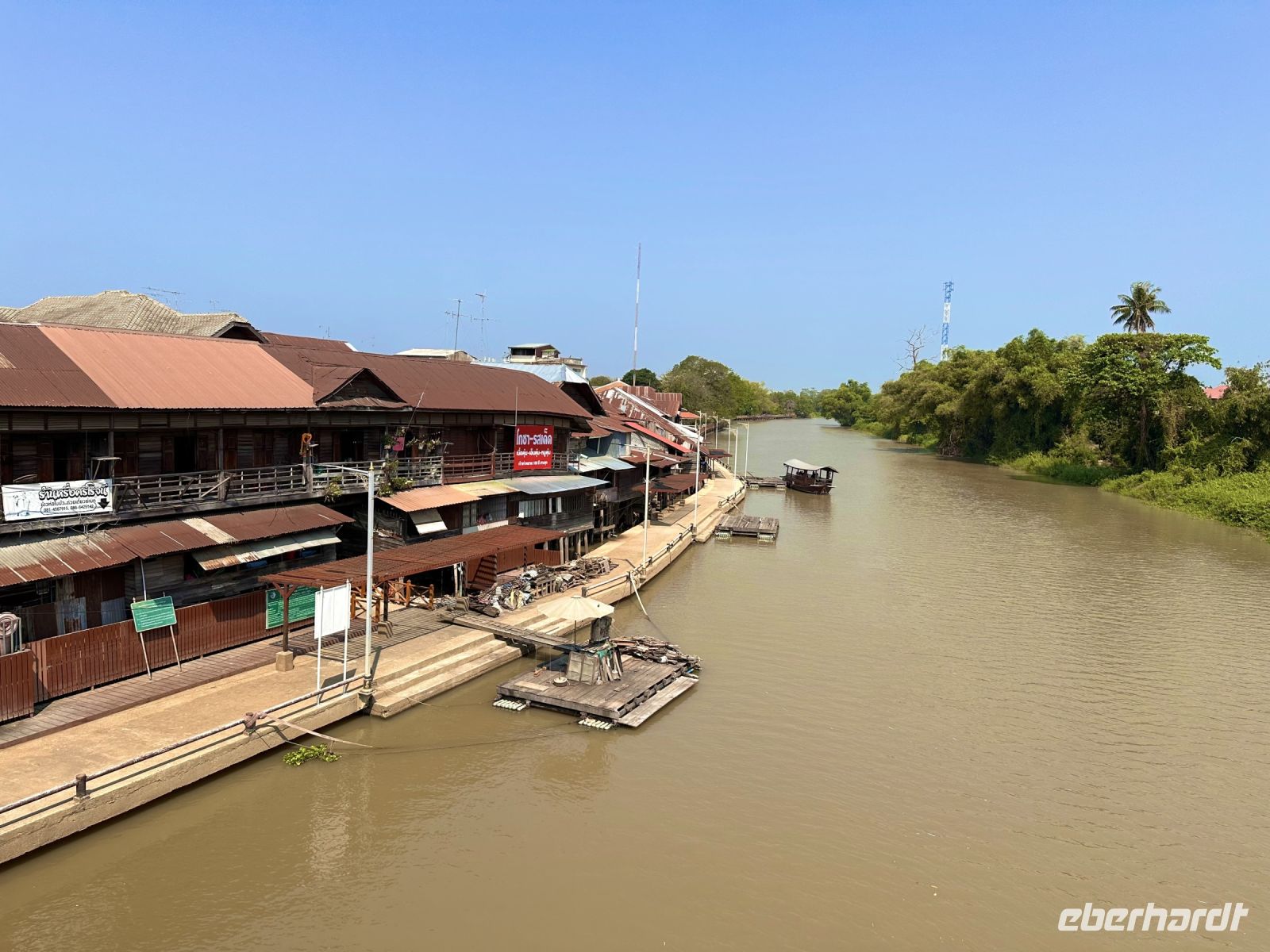 Wir starten heut nach dem Frühstück zum Markt in Sum Chuck. Dieser erstreckt sich durch mehrere Gassen inmitten über hundert Jahre alten Holzhäusern. Wir naschen wieder hier und das und finden auch das eine oder andere Souvenir zum Mitnehmen. Später geht unsere Fahrt weiter nach Suphan Buri zum Giant Dragon. Wir nutzen die Mittagszeit erst zum Essen in einem ausgesuchten thailändischen Restaurant um anschließend gestärkt die Anlage des Giant Dragon zu erkunden. Unsere Mittagsruhe finden wir dann wieder in unseren klimatisierten Bussen auf dem Weg nach Kanchanaburi. Hier besichtigen wir die Bahnbrücke über den Fluss Kwai und freuen uns bereits auf unsere neue ganz besondere Unterkunft, die wir heute beziehen werden.