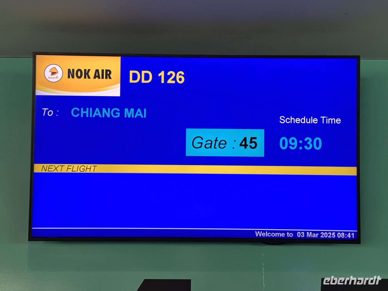 Wir verkürzen heute etwas die Nacht, um so schnell wie möglich zu unserer nächsten Etappe der Rundreise zu gelangen. Wir verlassen heute den Großraum Bangkok und reisen weiter nach Chiang Mai. Wir stehen zeitig auf, um in unseren Bussen wieder nach Bangkok zum Flughafen zu fahren. Die Fahrt ist kurzweilig und manche nutzen sie entspannt zum Fortsetzen der Nachtruhe. Als die Sonne zwischen den Hochhäusern in Bangkok aufgeht, sind wir auch schon fast am Flughafen und fliegen direkt nach Chiang Mai.