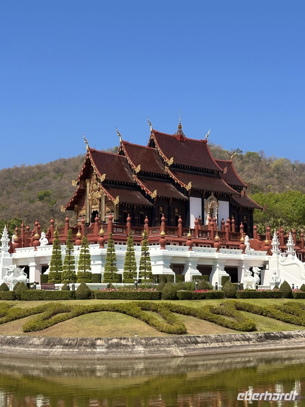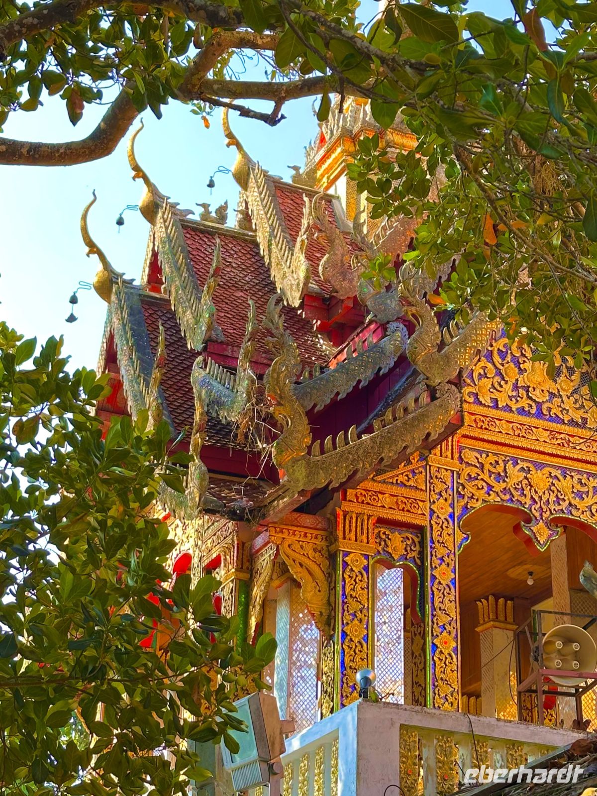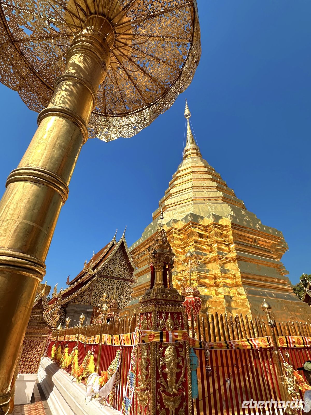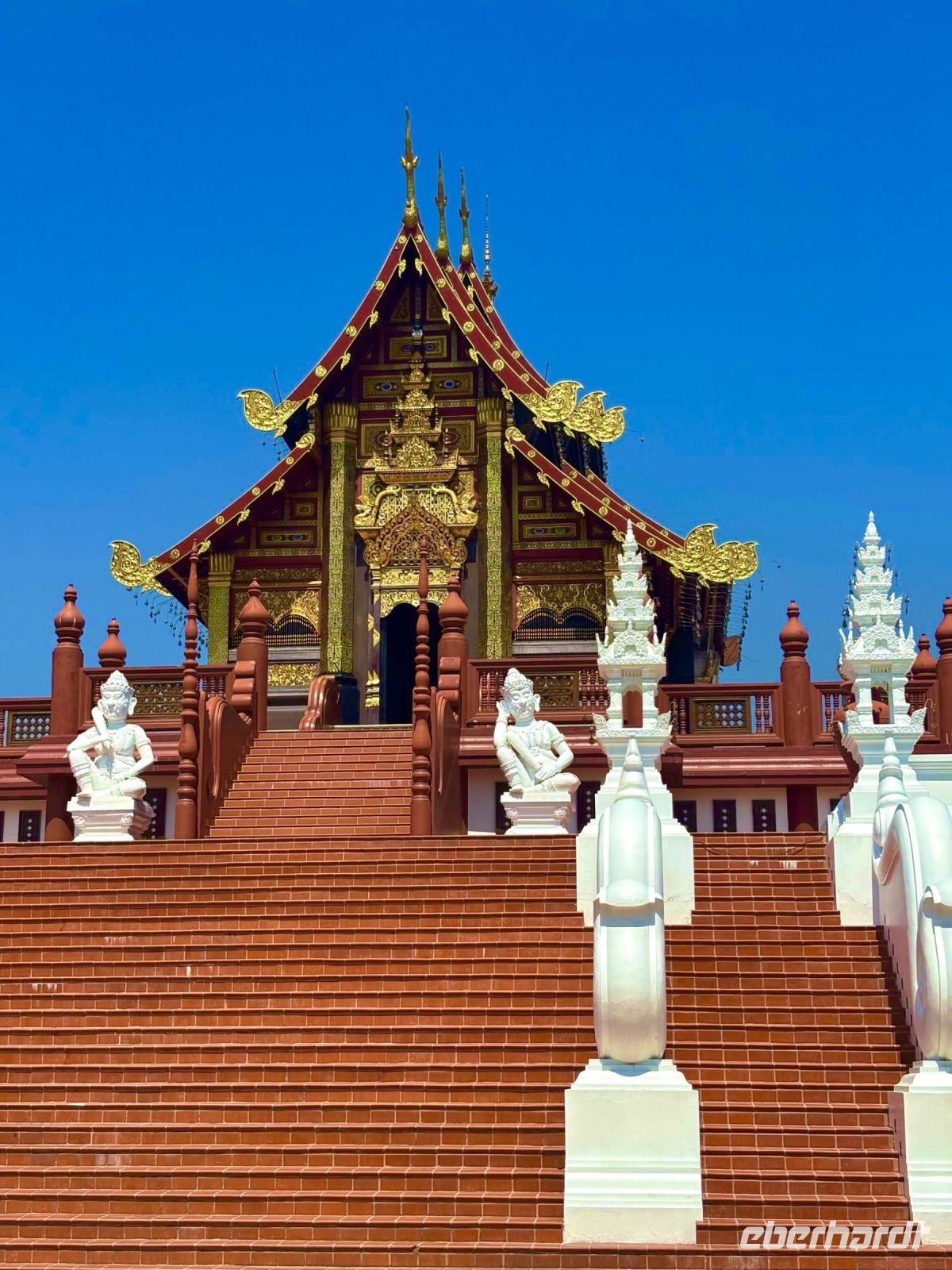 Das Frühstück genießen wir heute im ruhigen Hotelgarten, der sich direkt am Fluss Mae Nam Ping befindet. Danach starten wir mit unserem örtlichen Reiseleiter eine Fahrt hinauf zur Tempelanlage Wast Phra That Doi Suthep. Wir haben genügend Zeit diese ausführlich zu erkunden und dürfen anschließend noch Einblick nehmen in eine Manufaktur für die Verarbeitung von Jade-Stein zu hochwertigem Schmuck. Zurück in der Altstadt werden uns noch einige der unzähligen Tempelanlagen der Stadt gezeigt. Auch diese sind wieder sehr beindruckend und interessant anzusehen. Jeder Tempel ist halt anders und man stößt immer wieder auf neue interessante Elemente, die darin verbaut wurden. Bei einer Rikscha-Tour durch einen Teil der Altstadt bekommen wir noch einen Eindruck von längst vergessenen Transportmethoden.