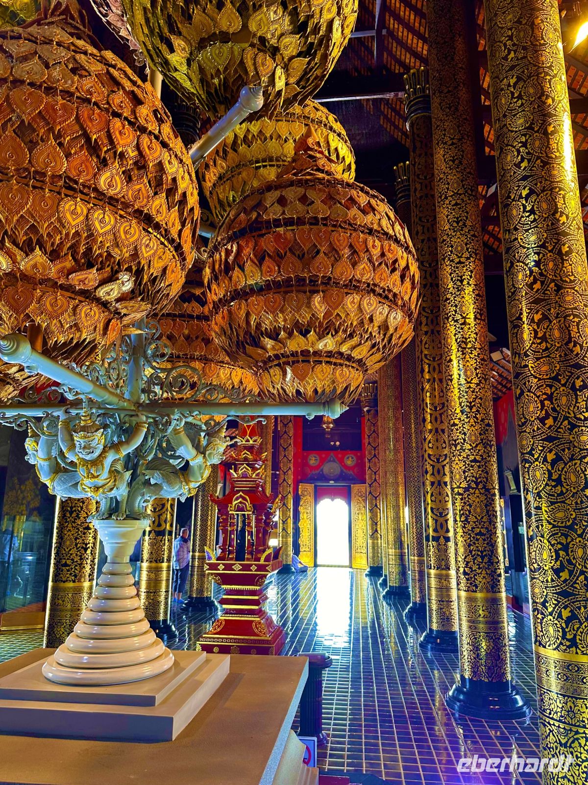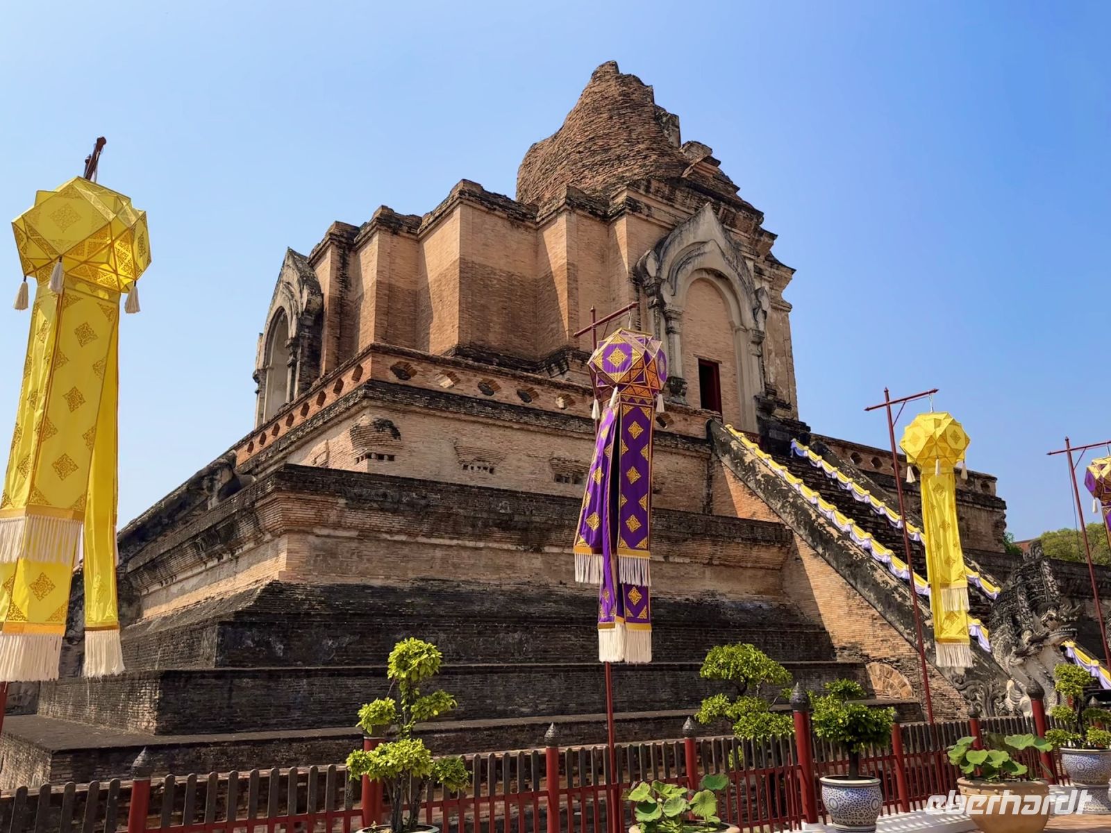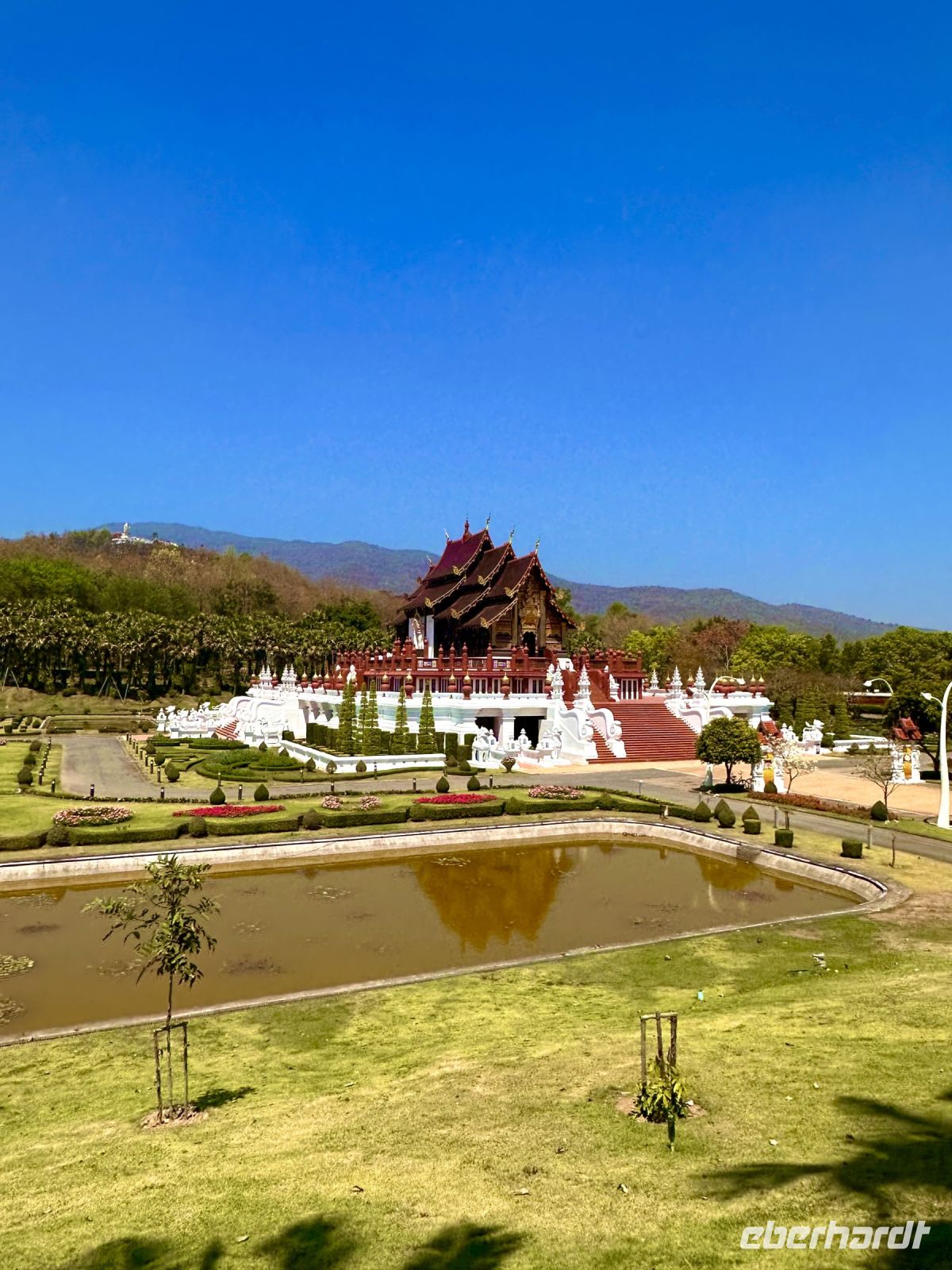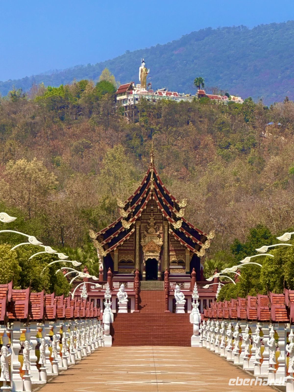 Das Frühstück genießen wir heute im ruhigen Hotelgarten, der sich direkt am Fluss Mae Nam Ping befindet. Danach starten wir mit unserem örtlichen Reiseleiter eine Fahrt hinauf zur Tempelanlage Wast Phra That Doi Suthep. Wir haben genügend Zeit diese ausführlich zu erkunden und dürfen anschließend noch Einblick nehmen in eine Manufaktur für die Verarbeitung von Jade-Stein zu hochwertigem Schmuck. Zurück in der Altstadt werden uns noch einige der unzähligen Tempelanlagen der Stadt gezeigt. Auch diese sind wieder sehr beindruckend und interessant anzusehen. Jeder Tempel ist halt anders und man stößt immer wieder auf neue interessante Elemente, die darin verbaut wurden. Bei einer Rikscha-Tour durch einen Teil der Altstadt bekommen wir noch einen Eindruck von längst vergessenen Transportmethoden.