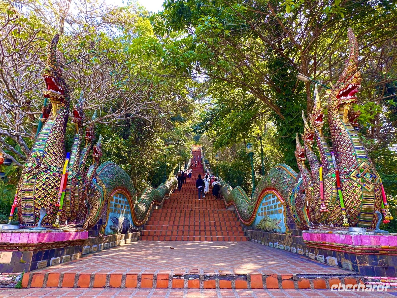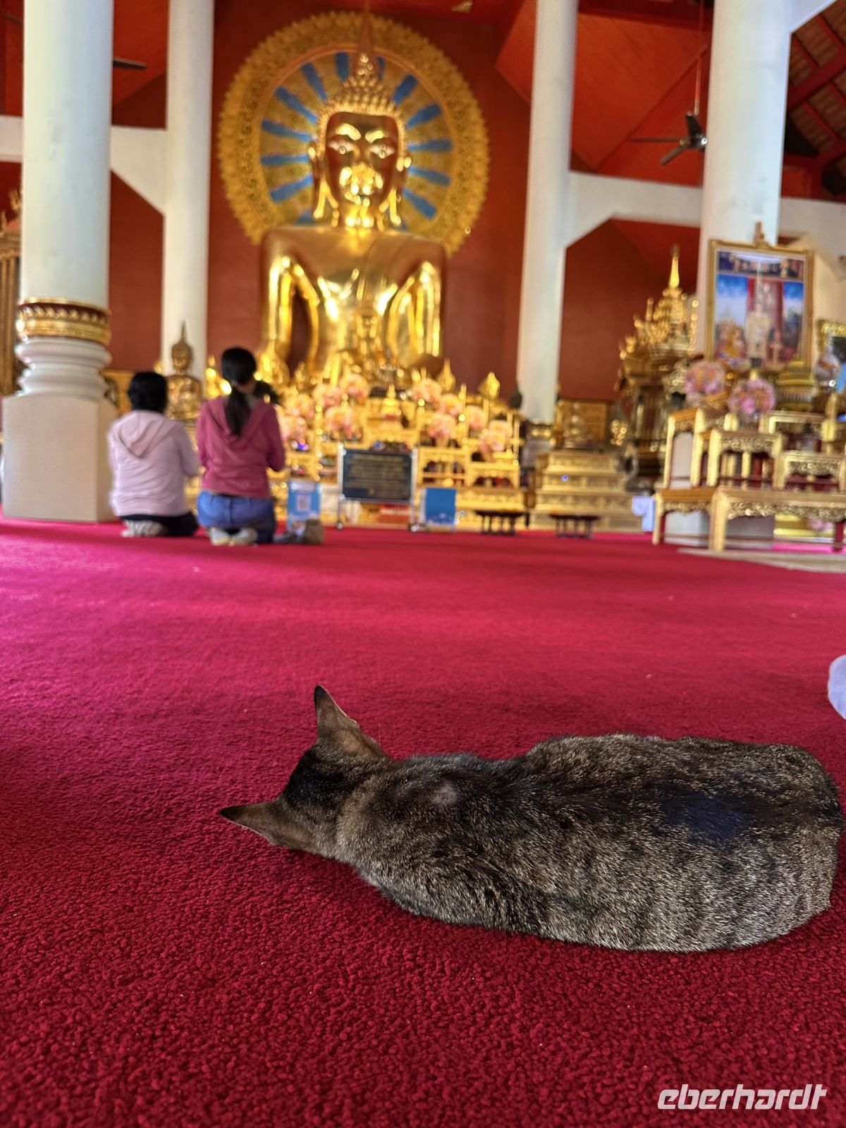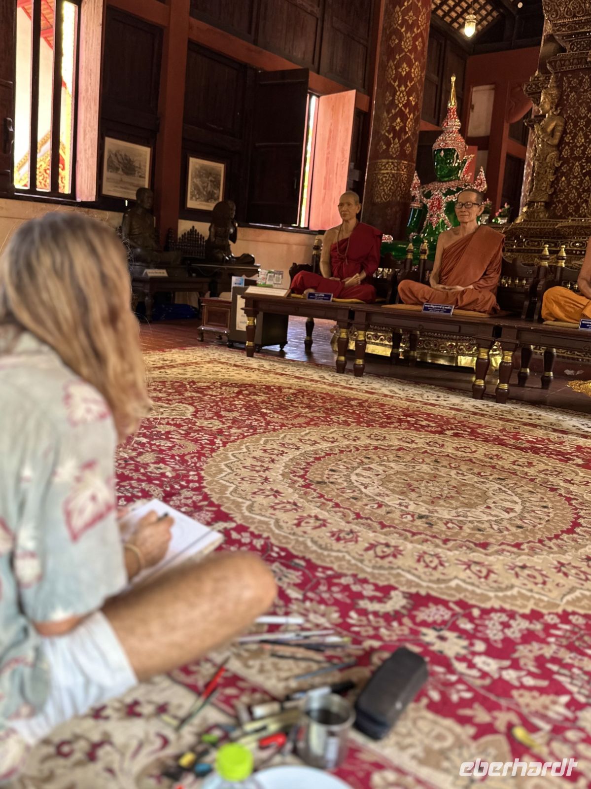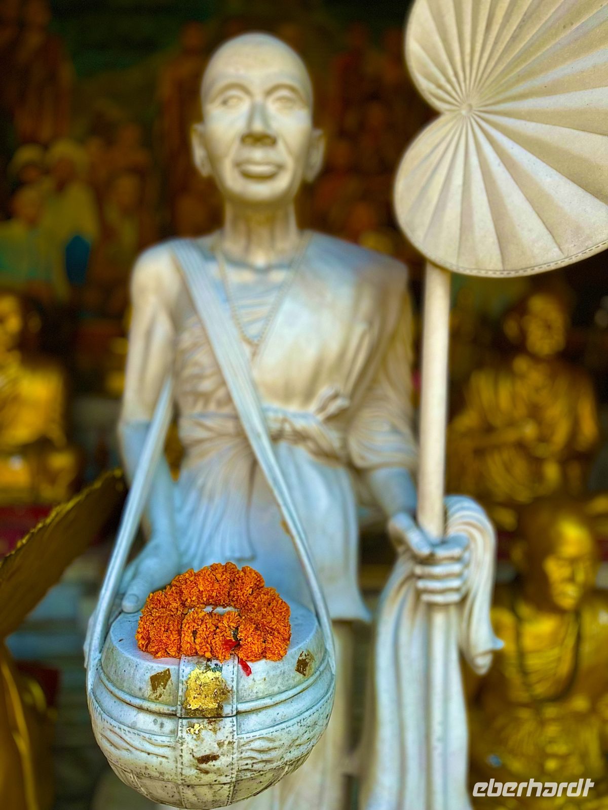 Das Frühstück genießen wir heute im ruhigen Hotelgarten, der sich direkt am Fluss Mae Nam Ping befindet. Danach starten wir mit unserem örtlichen Reiseleiter eine Fahrt hinauf zur Tempelanlage Wast Phra That Doi Suthep. Wir haben genügend Zeit diese ausführlich zu erkunden und dürfen anschließend noch Einblick nehmen in eine Manufaktur für die Verarbeitung von Jade-Stein zu hochwertigem Schmuck. Zurück in der Altstadt werden uns noch einige der unzähligen Tempelanlagen der Stadt gezeigt. Auch diese sind wieder sehr beindruckend und interessant anzusehen. Jeder Tempel ist halt anders und man stößt immer wieder auf neue interessante Elemente, die darin verbaut wurden. Bei einer Rikscha-Tour durch einen Teil der Altstadt bekommen wir noch einen Eindruck von längst vergessenen Transportmethoden.