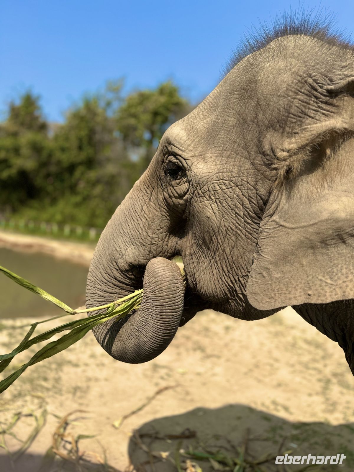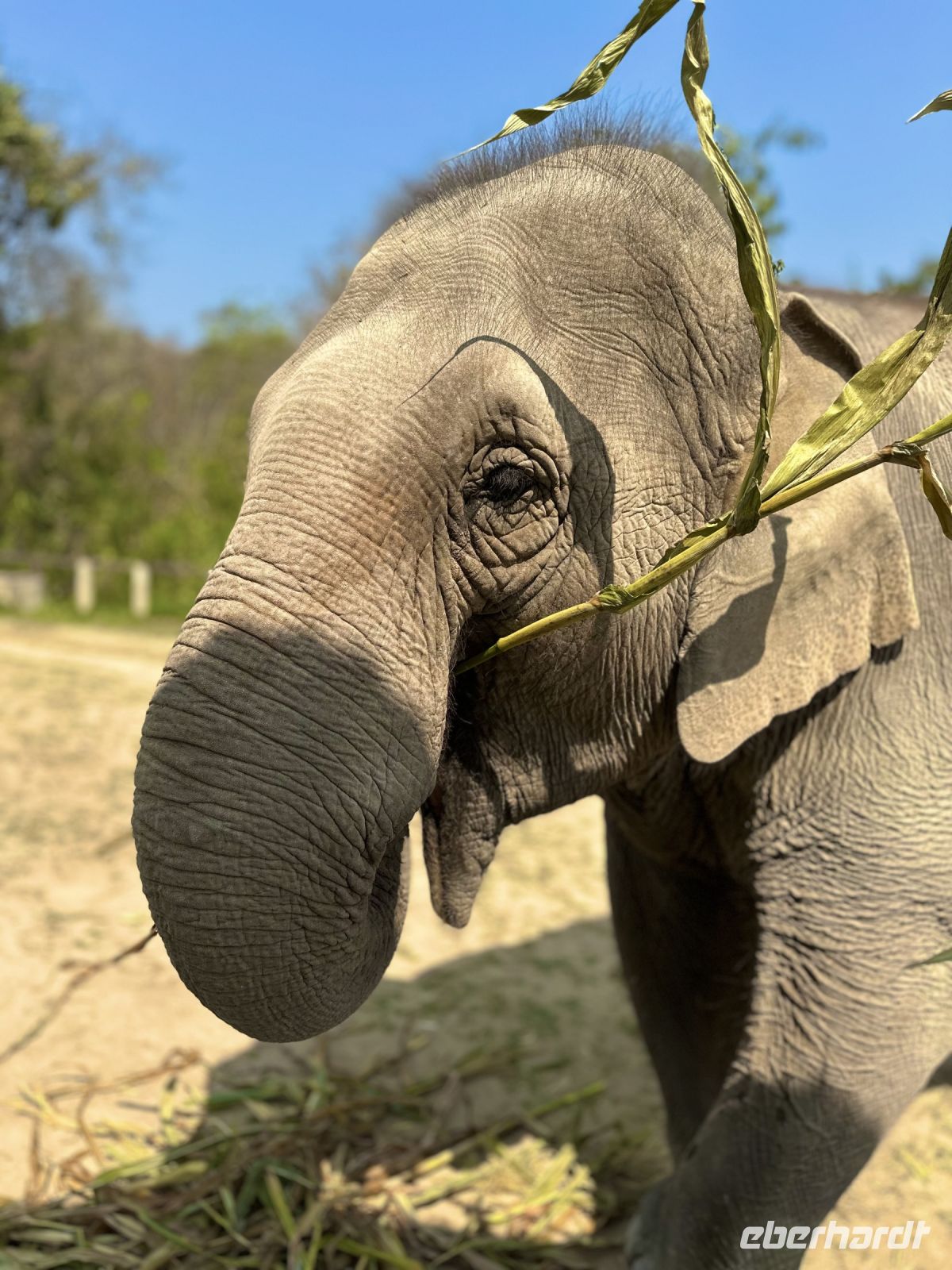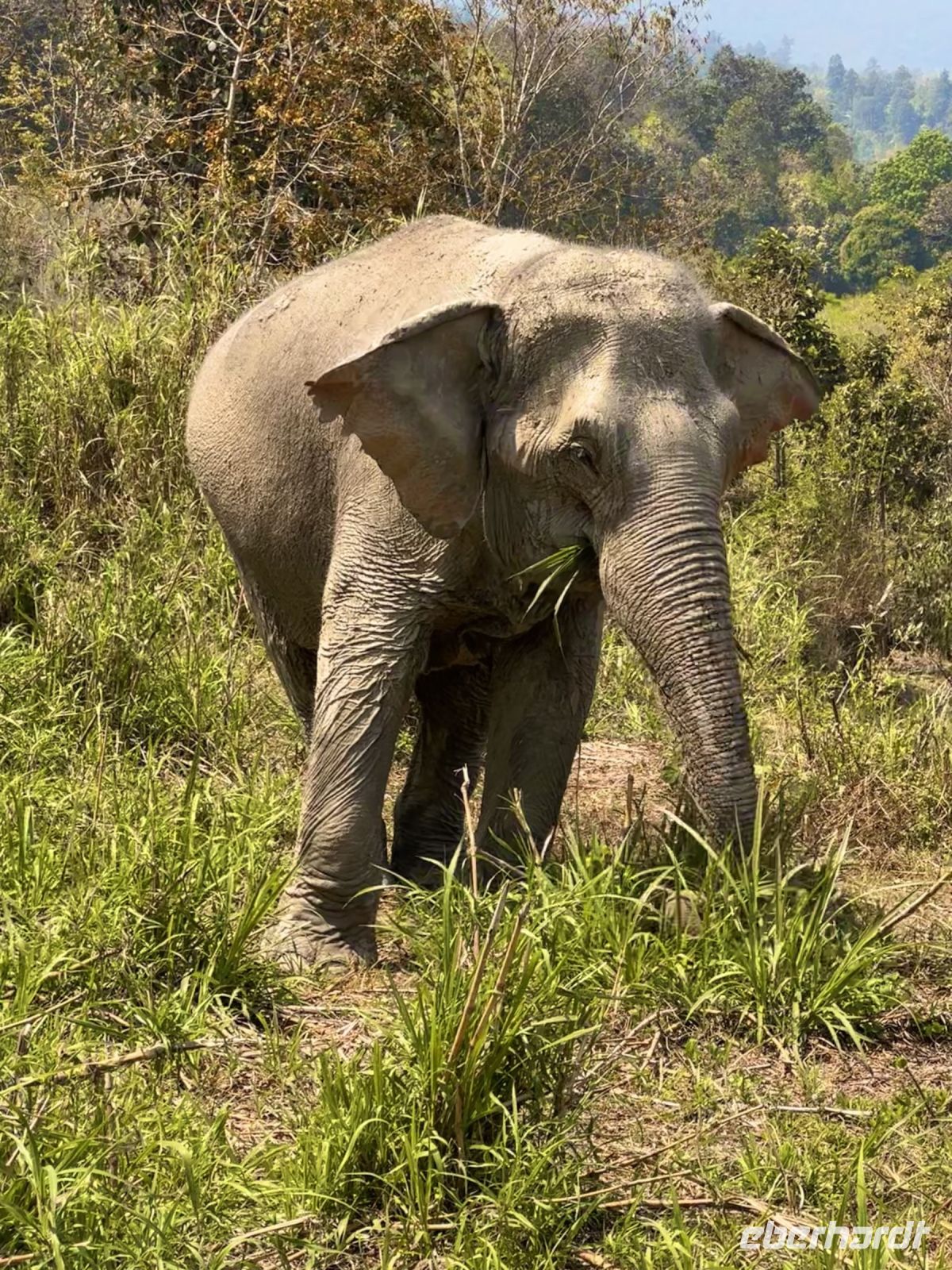 Auf den heutigen Tag freuen wir uns schon seit Tagen. Wir fahren in eines der vielen Elefanten-Camps, die es im Raum Chiang Mai gibt. Die Elefanten werden in den Camps liebevoll und artgerecht gepflegt und verwöhnt. Die Pfleger im Camp erklären uns ausführlich ihre tägliche Arbeit mit den Tieren und geben uns Einblicke in den Umgang und direkten Kontakt mit ihnen. Den ersten Kontakt zu den Tieren haben wir beim Verfüttern von unzähligen Bananen. Die Tiere haben es so gemocht, dass auch keiner Angst hatte so nah den Kontakt zu den Tieren zu haben. Später konnten wir die Tiere in ihrem weitläufigen Gehege besuchen und haben anschließend eine Wanderung mit ihnen unternommen. Die Elefanten kannten natürlich die spannendsten Ecken ihres Reviers und steuerten auch gezielt jedes Schlamm- und Wasserloch an in dem sie sichtlich Spaß hatten. Zurück im Camp konnten sie dann gleich im Teich baden und die Besucher konnten die Gelegenheit nutzen den Tieren bei der Wäsche zu helfen. Ab in die Badesachen und ab in den Teich zum plantschen mit den Dickhäutern. Nachdem wir uns an einem leckeren Essen im Camp stärken konnten, sollten die Elefanten auch noch etwas zum Naschen bekommen. Hierzu bereiteten die Teilnehmer unter Anleitung der Elefantenpfleger leckere Häppchen für die Tiere zu, die sie dann natürlich auch direkt an die Tiere verfüttern konnten.
