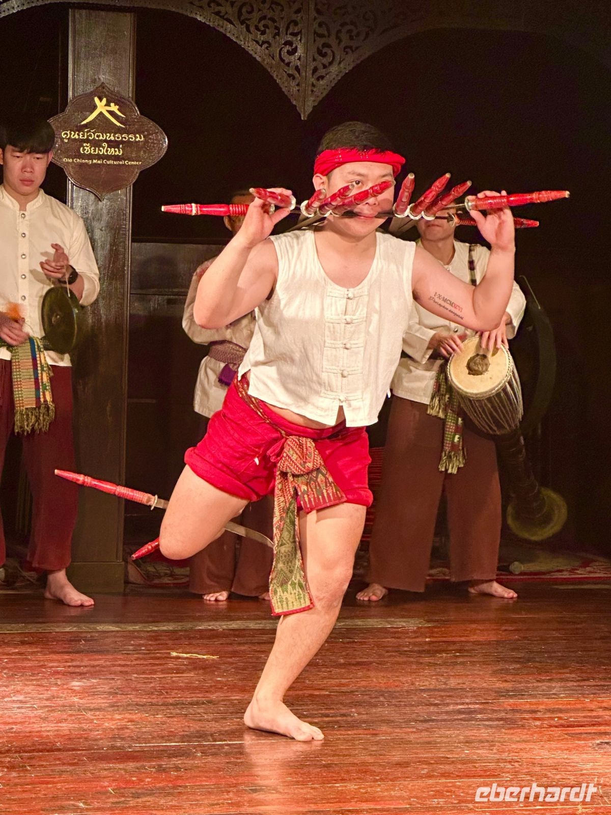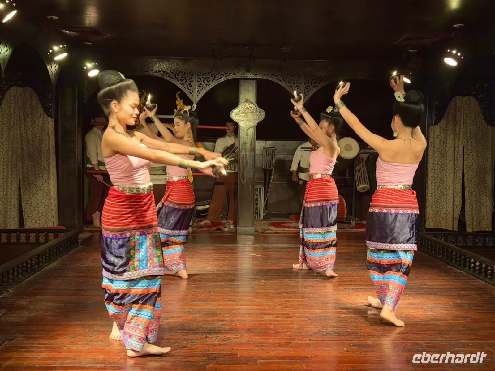 Zurück im Hotel mit unseren vielen tollen neuen Eindrücken im Kopf bereiten wir uns entspannt auf unseren letzten gemeinsamen Abend der Reise vor. Wir wollen heut zu einer Khantoke-Dinner-Show gehen. Uns erwartet ein schmackhaftes Abendessen in einer tollen Location, während wir ein traditionelles thailändisches Bühnenprogramm bewundern können. Dies ist ein sehr schöner Abschluss unserer Reise und wir genießen es sehr.