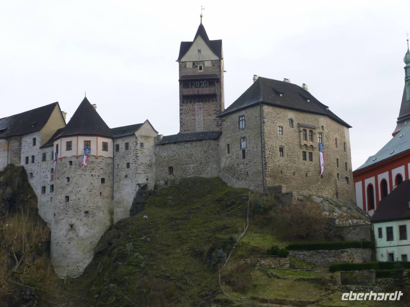 Die Burg aus dem 13. Jahrhundert war einst Gefängnis und Königsherberge, sah Truppenbesatzung, Brand und 30jährige Kriegswirren. Erhalten blieb leider nicht Goethes kostbare Steinesammlung, dafür Porzellan- und Zinsammlungen sowie spätgotische Fresken und eine romanische Rotunde. 2006 drehte man hier Szenen des James-Bond-Films "Casino Royale".