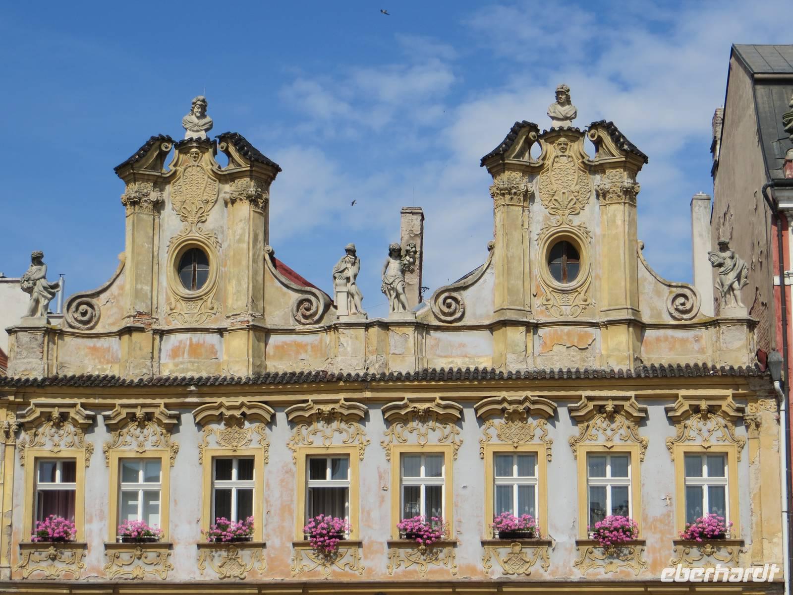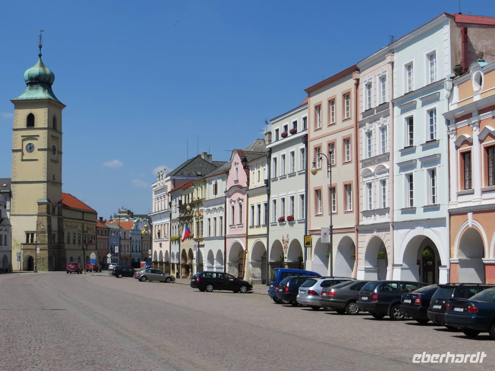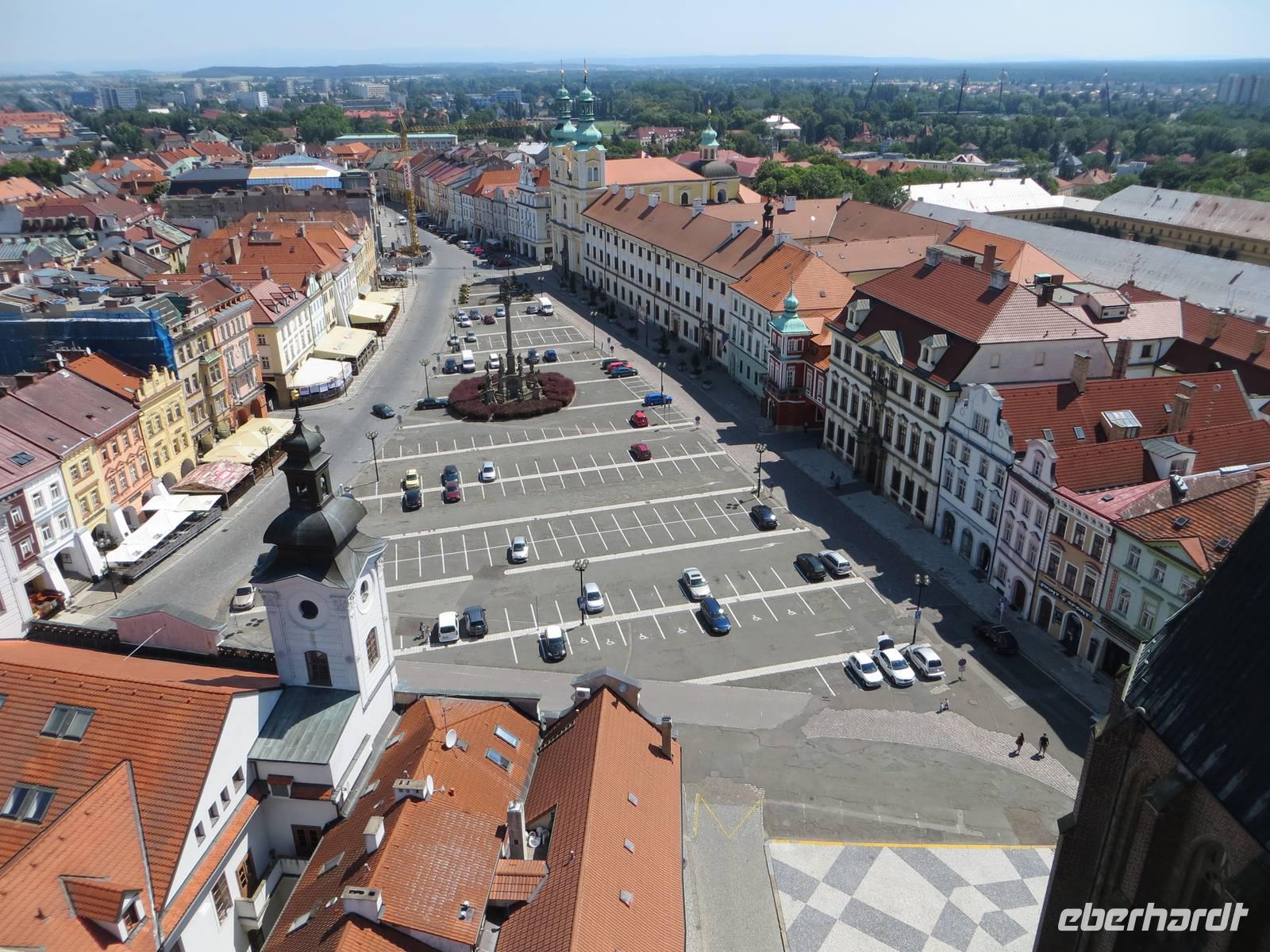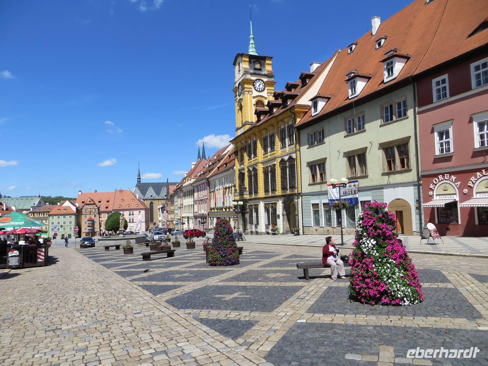 Königgrätz ging mit der zu damaliger Zeit größten Schlacht in die Geschichte ein: am 3.Juli 1866 trafen auf den Hügeln westlich von Königgrätz vierhunderttausend Soldaten der Österreicher und verbündeten Sachsen auf die Preußen. Die Schlacht besiegelte die Vorherrschaft Preußens im deutschen Raum und war Vorbote der deutschen Reichseinigung unter preußischer Führung. In der Nähe des Hügels von Chlum, wenige Kilometer vor Königrätz, erinnerten wir uns des schrecklichen Geschehens. In Königgrätz, dem Königingrätz, stiegen wir hinauf zur Altstadt. Über den Kleinen Markt bummelten wir in den sonnig-heißen Gassen am Theater vorbei Richtung Bischöflichem Gymnasium und dann zur Heilig-Geist-Kirche, der gotischen Dominante der Stadt. Bevor wir sie besichtigten, zogen hier die Templer - oder solche die sich, auch Österreich kommend, dafür halten - mit Fahnen und Ordenstracht aus der Kathedrale. Zu individuellem Bummel verabschiedeten wir uns auf dem Großen Platz in Anblick von Weißem Turm, barocker Kapelle und Jesuiten-Bischofspalast. Mancher bummelte noch hinab zur Elbe, in deren Nähe zahlreiche markante Gebäude des „Salons der Republik" - vorrangig der Jugendstilarchitektur - zu sehen sind.