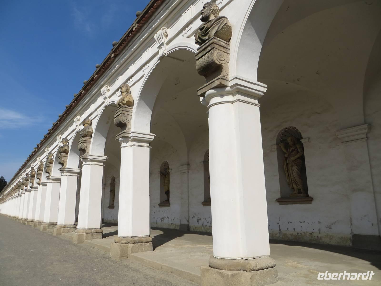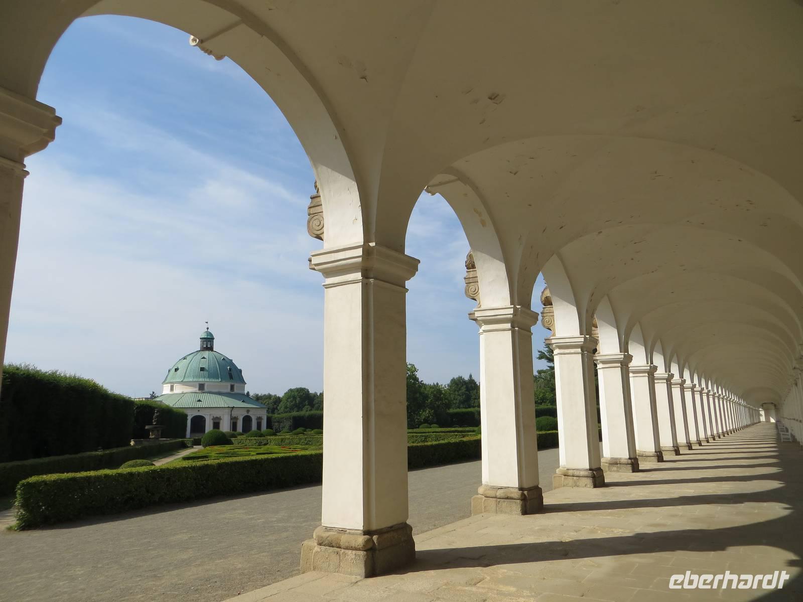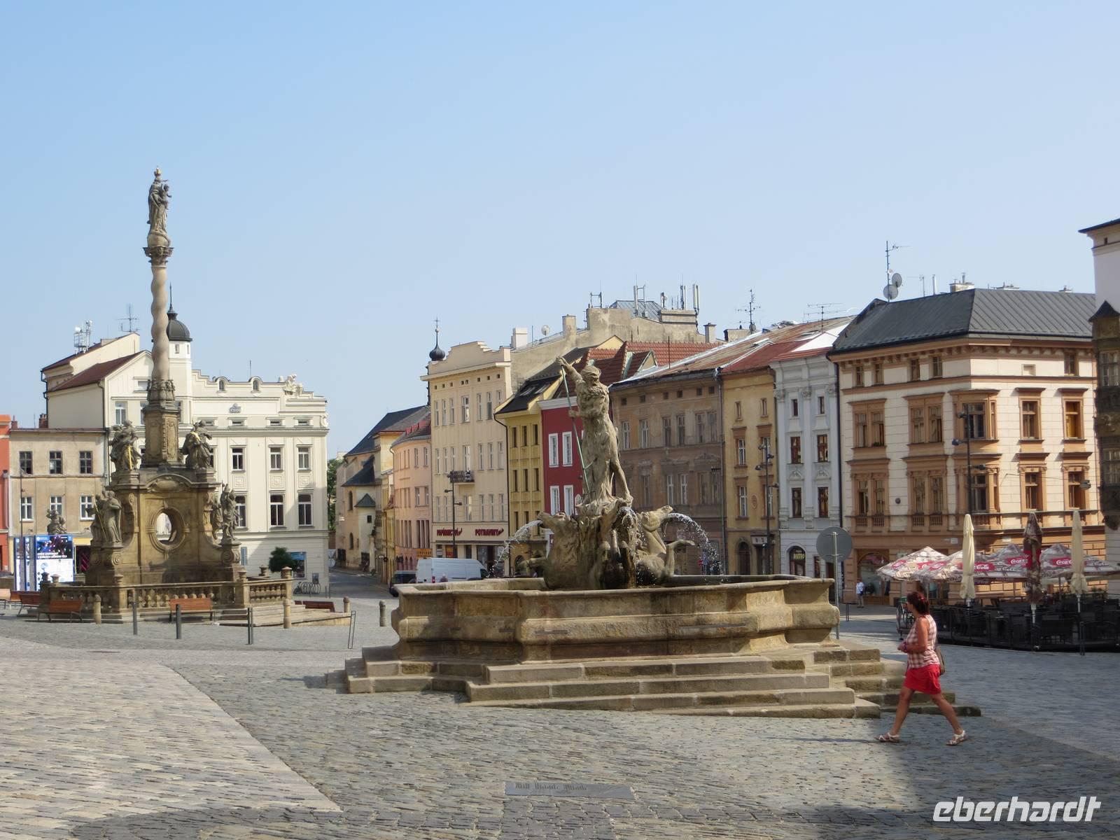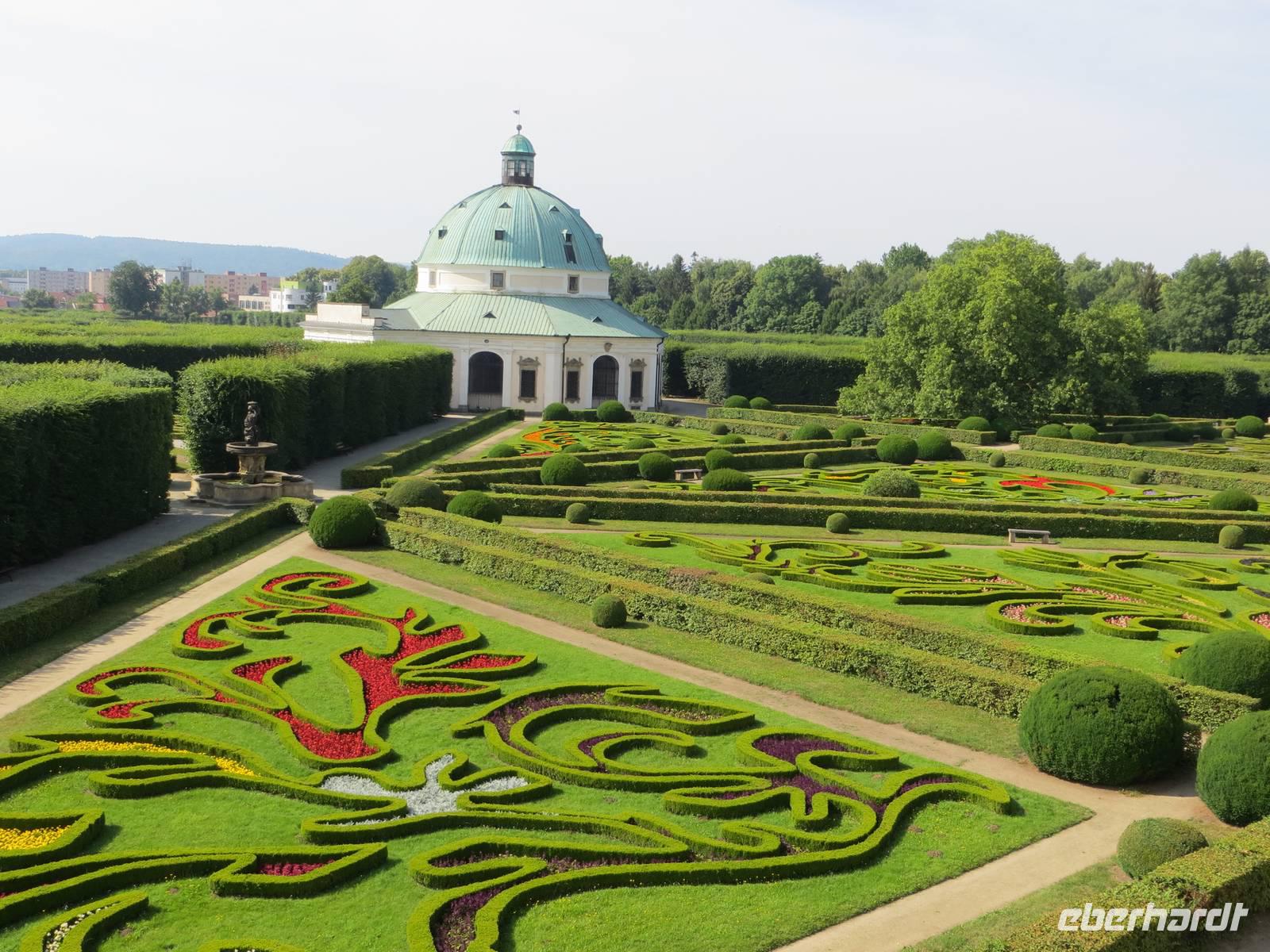 Ein weiterer heißer Reisetag stand bevor: acht Uhr starteten wir nach Kromeriz. Dort schlenderten wir zunächst durch den Blumengarten, eine wohlgeordnete Parklandschaft im französischen Stil mit klassizistischen Kolonnaden. Neu eröffnet seit diesem Jahr nun auch das östliche Areal des Parks und die Orangerien. So gewinnt dieses phantastische Gartenbauensemble noch mehr an Wert. Am UNESCO-Weltkulturerbe-Standort mit Schloss und einem englischen Park bestaunten wir das Schloss. Von besonderer geschichtlicher Bedeutung ist im Schloss der große Saal, in dem sich 1848/49 ein österreichischer Reichstag zu gründen versuchte. Zur heißen Mittagszeit besuchten wir den bischöflichen Weinkeller und kosteten Tropfen aus teils französischen Reben, die in der Region angebaut werden und den Gaumen der Bischöfe noch heute benetzen: Ruländer, Riesling, Sauvignon und Frankovka. Den Imbiss zum Besänftigen des Alkohols nahmen wir einige Schritte entfernt in der ehemaligen Münzstätte des Bischofs ein. So schon ein wenig müde fuhren wir nach Olmütz, der ehemaligen mährischen Metropole mit Erzbischofssitz. Für manchen ist es wohl die nach Prag schönste historische Altstadt Tschechiens; für die meisten Gäste in diesem Jahr war es bei 36 Grad allerdings recht anstrengend. Vom Dom St. Wenzel brachte uns der Bus vorbei an bischöflichen Gebäuden und Universitätsgebäuden bis in die Nähe des Ober- und Untermarktes mit Rathaus und Dreifaltigkeitssäule - wieder ein tschechisches UNESCO-Welterbe.