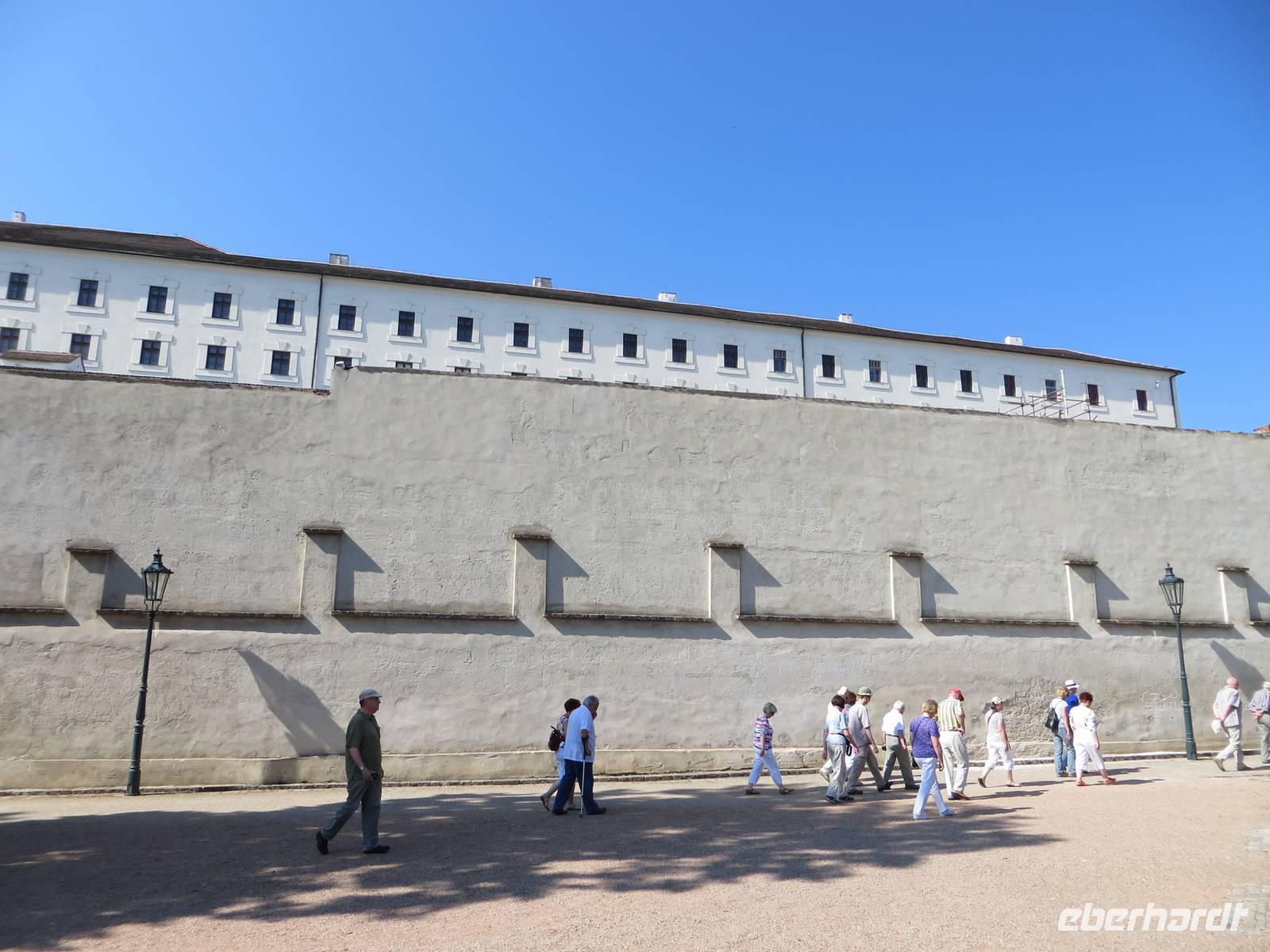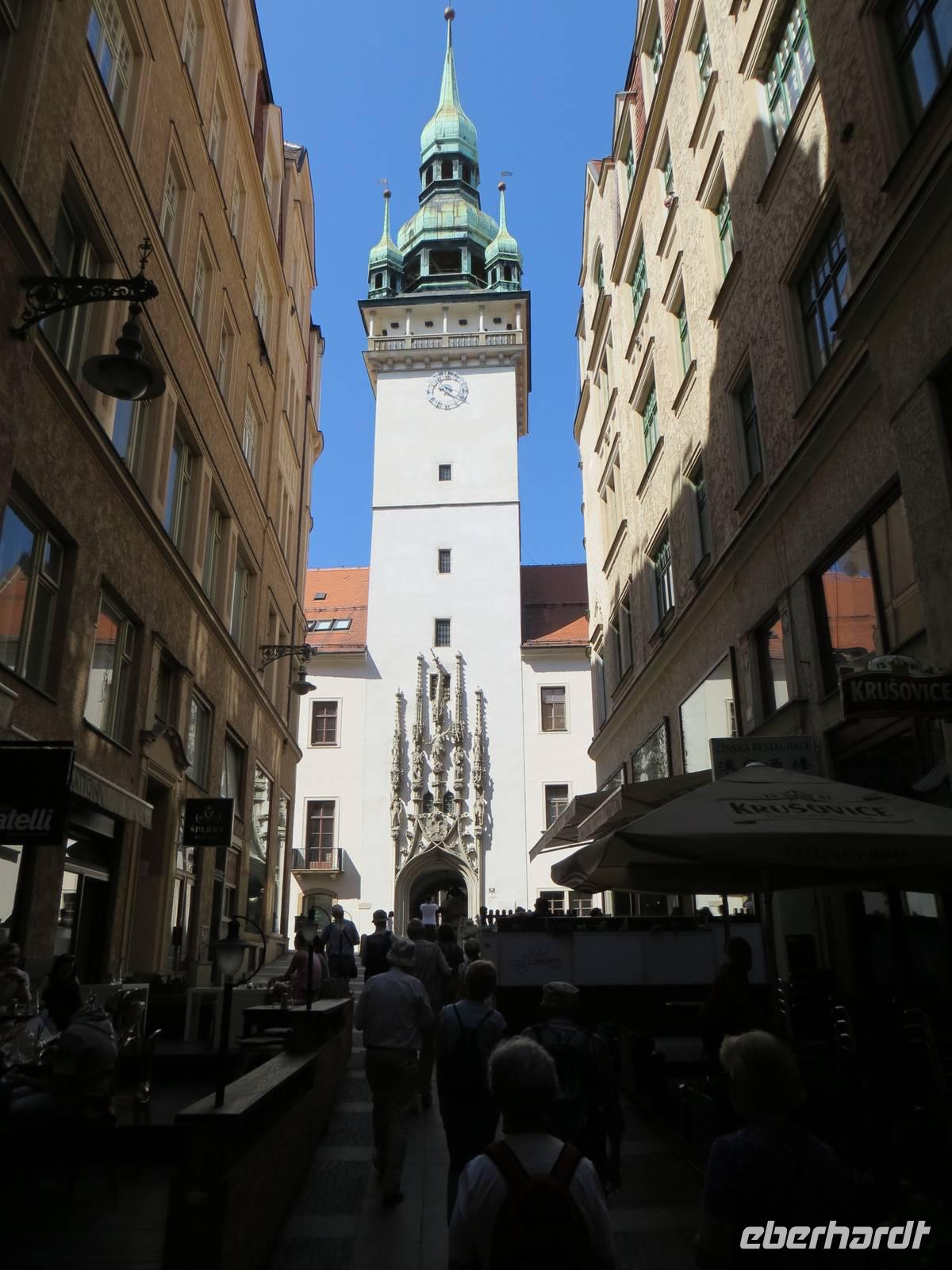Nur wenige Minuten sind es zu Fuß vom innerstädtischen Hotel Slavia auf die Burg Spilberk, dennoch entschlossen wir uns mit unserer örtlichen Reiseleiterin Ilse auf die Burg hinauf zu fahren. Von der einstigen Festungsanlage, langzeitig auch als Gefängnis genutzt, hat man einen guten Blick auf die Stadt mit Augustinerkloster, wo Gregor Mendel forschte, Messegelände und Altstadt. Am späten Vormittag bummelten wir dann vom Hotel durch die Altstadt bis zu St. Peter & Paul, dem gotischen Dom der Stadt.