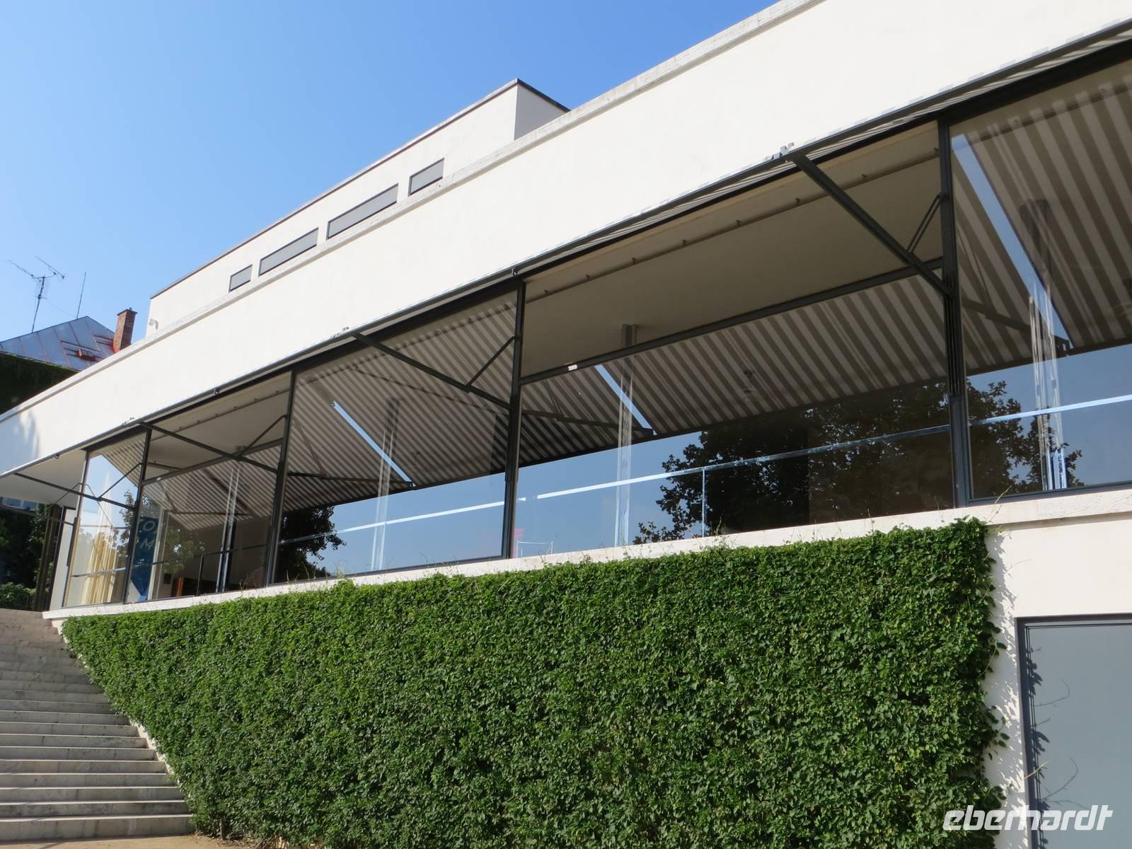 Nach Gotik, Renaissance und Barock auf unserer Tour wollten wir am späten Nachmittag auch ein meisterliches Bauwerk des Bauhauses sehen. So stoppten wir an der UNESCO-gekrönten Villa Tugenhat in Brünn, die einst Mies van der Rohe konzipierte. Wir hatten Glück und konnten durch den Garten bummeln und so wohl eines der architektonisch bedeutsamsten Wohnhäuser der Welt sehen. Der Bus brachte uns dann zum Abendessen im der Mährischen Hütte, wo das Essen und das Inventar durchaus als mährisch zu bezeichnen ist, indes die Beschallung mit Weltpop der Achtziger auf CD wenig Mährisch war.