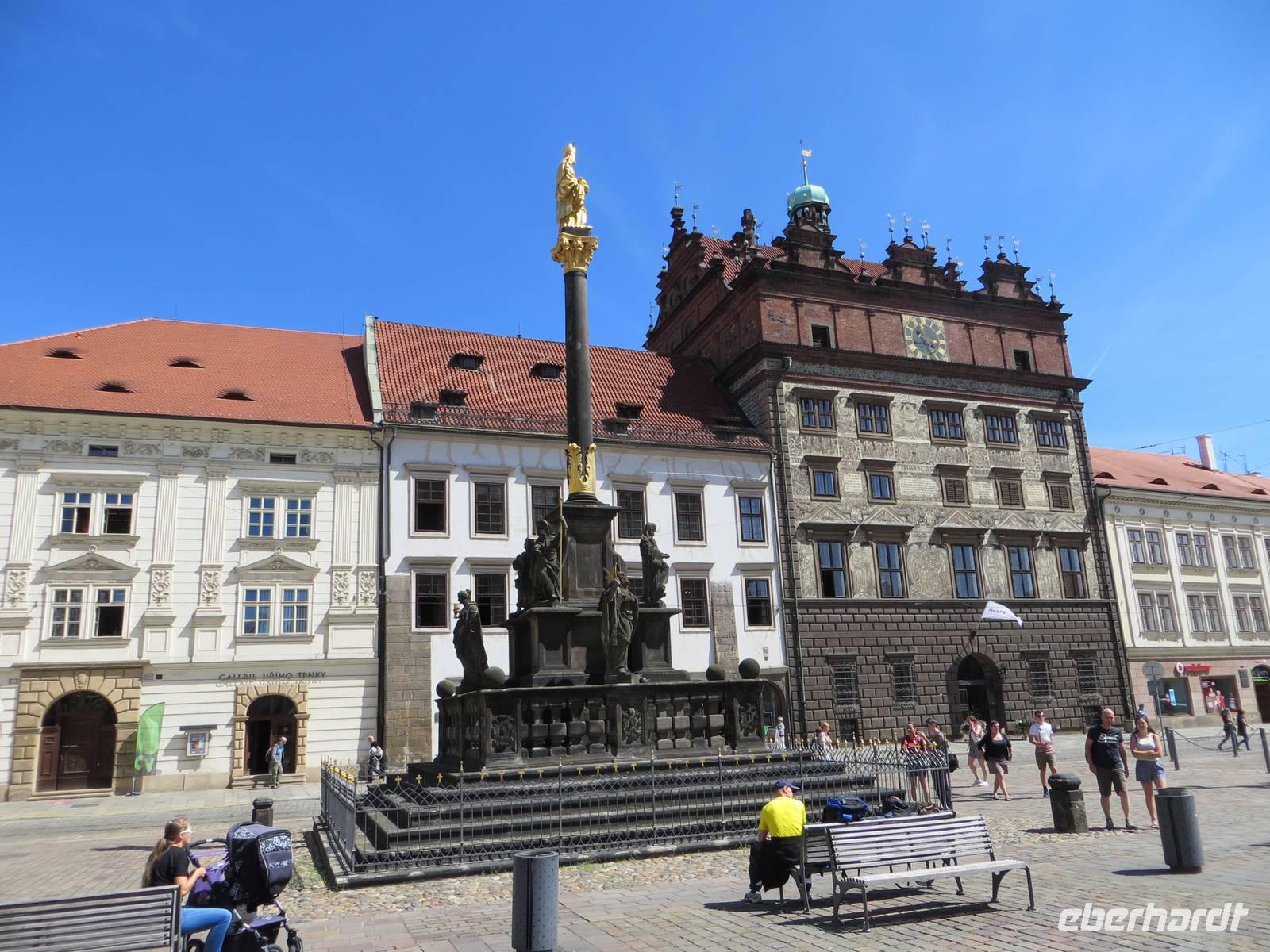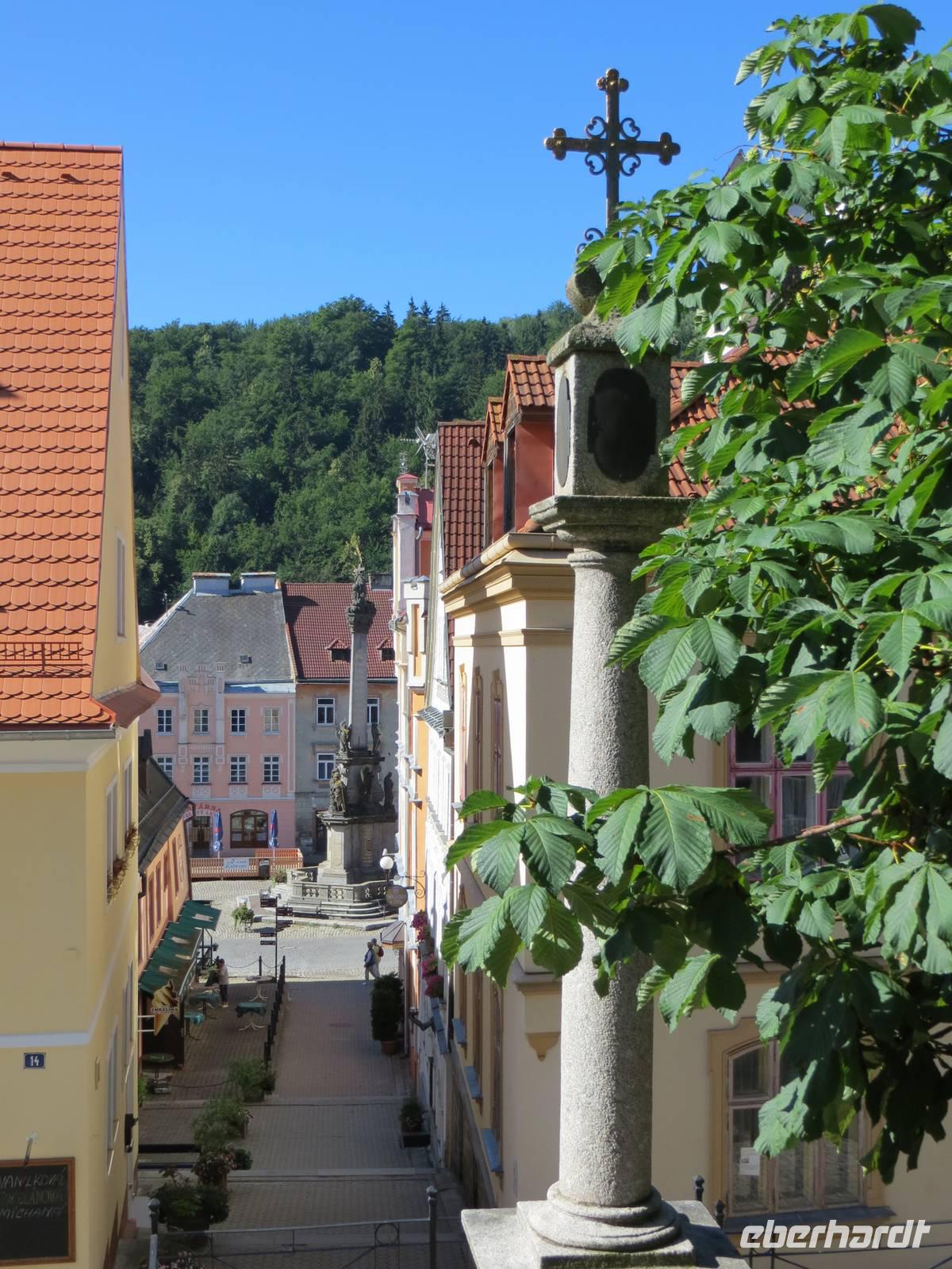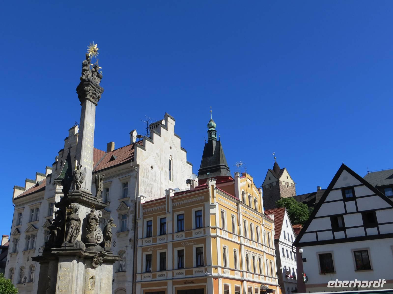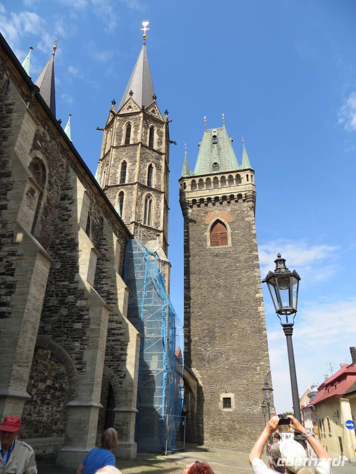 Nach Schlösser- und Burgentagen wollten wir uns heute einige Orte mit Geschichte im Westen Tschechiens anschauen. Auf Grund seiner industriellen Geschichte gilt Pilsen oft eher als graue Stadt. Indes hat Pilsen - insbesondere in Vorbereitung als Kulturhauptstadt Europas 2015 - an touristischer Qualität gewonnen und rund um den Markt einige ansehnliche Gebäude herausgeputzt. Bedeutsam vor allem St. Bartholomäus, der höchste Kirchturm Tschechiens, auf den einige Gäste stiegen und Sicht hinab auf die Altstadt und hinüber zu den Industriestandorten der Stadt genossen. Mittagspause dann in Eger, dem heutigen Cheb. Auch diese Stadt, bekannt eher als Stadt der Vertriebenen, der tschechischen Sinti und Roma, von Vietnamesen und Prostituierten, hat an Charme gewonnen: der Markt, die Gassen im Umfeld und die Parkanlage an der ehemaligen Kaiserpfalz. Zeit nochmals an Wallenstein zu erinnern, der hier 1634 ermordet wurde. Gästen mit ein wenig Fitness ist indess wirklich der kurze Weg zur Kaiserpfalz und deren Besichtigung zu empfehlen. Nachmittagsstopp dann in Karlsbad und Bummel entlang der Tepla vom Grandhotel Pupp zu den Kolonnaden, an deren Quellen sich auch Atatürk, Goethe und Marx labten. Heute ist Karlsbad wohl die russischste Stadt in Mitteleuropa...auch wenn es scheinbar nicht mehr so boomt wie noch in den Vorjahren.