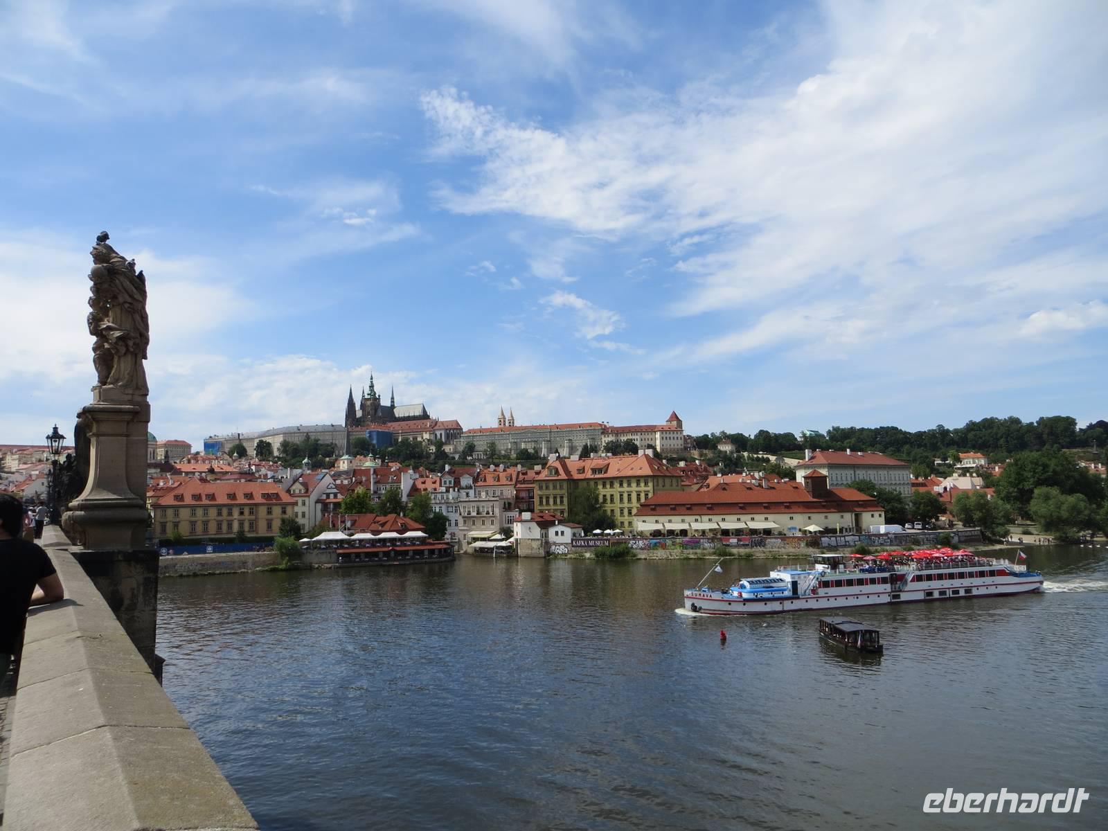 Nach zwei Stunden Fahrt hatten wir gegen Mittag den Stadtrand von Prag erreicht. Die Karlsbader Straße von Prag führt direkt über den Weißen Berg, 1620 Austragungsort einer bedeutenden Schlacht des Dreißigjährigen Krieges. Nach typisch Prager-Hotelanfahrt (rund um das Caree und Stopp im fließenden Verkehr) standen wir an der Rezeption des repräsentativen Boutique-Hotels Seven Days in Prag 2, oder Nove Mesto, nur vierhundert Meter vom Wenzelsplatz entfernt. Insider nutzten den Nachmittag dann zum individuellen Erkunden der Stadt entsprechend ihrer spezifischen Interessen; all jene die vor langer Zeit oder noch nie in Prag waren, nutzten die Orientierungstour entlang Wenzelsplatz zum Altstädter Rathaus durch Stare Mesto zur Karlsbrücke mit Blick auf den Hradschin, um einen Ausgangspunkt für individuelles Erkunden zu bestimmen. Bei bestem Sommerwetter waren wir ein gänzlich unbedeutender Bestandteil der Touristenmassen in dieser europäischen Hauptstadt ersten Ranges.