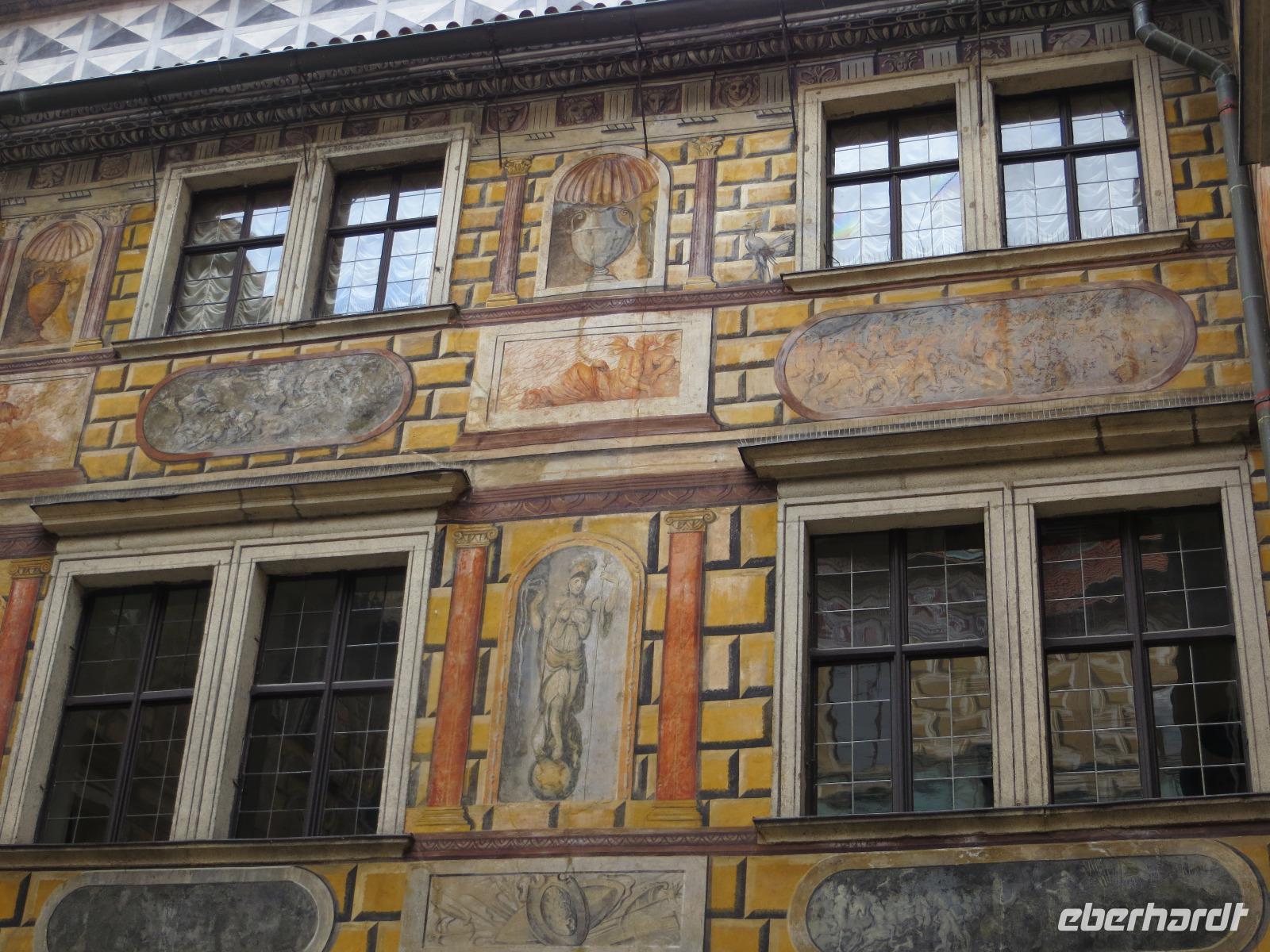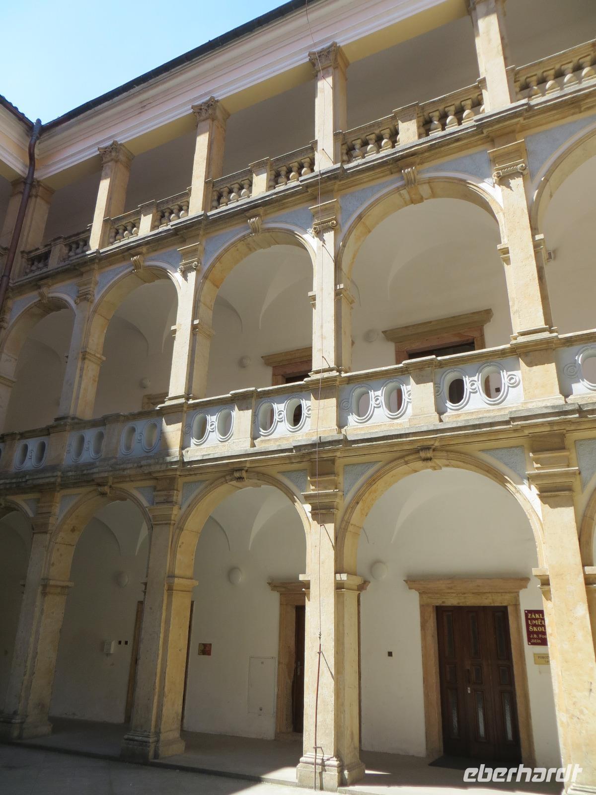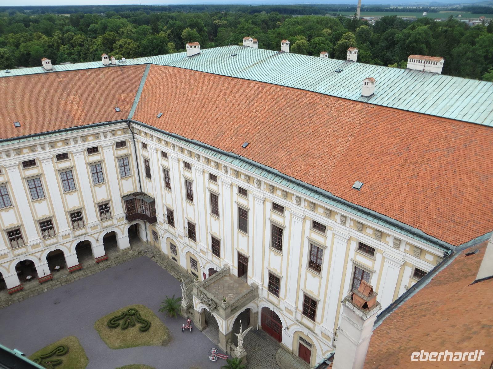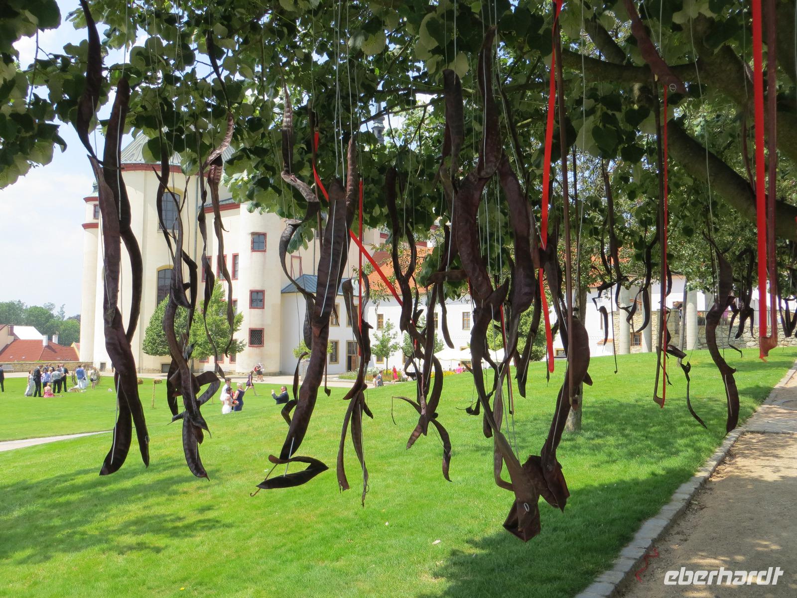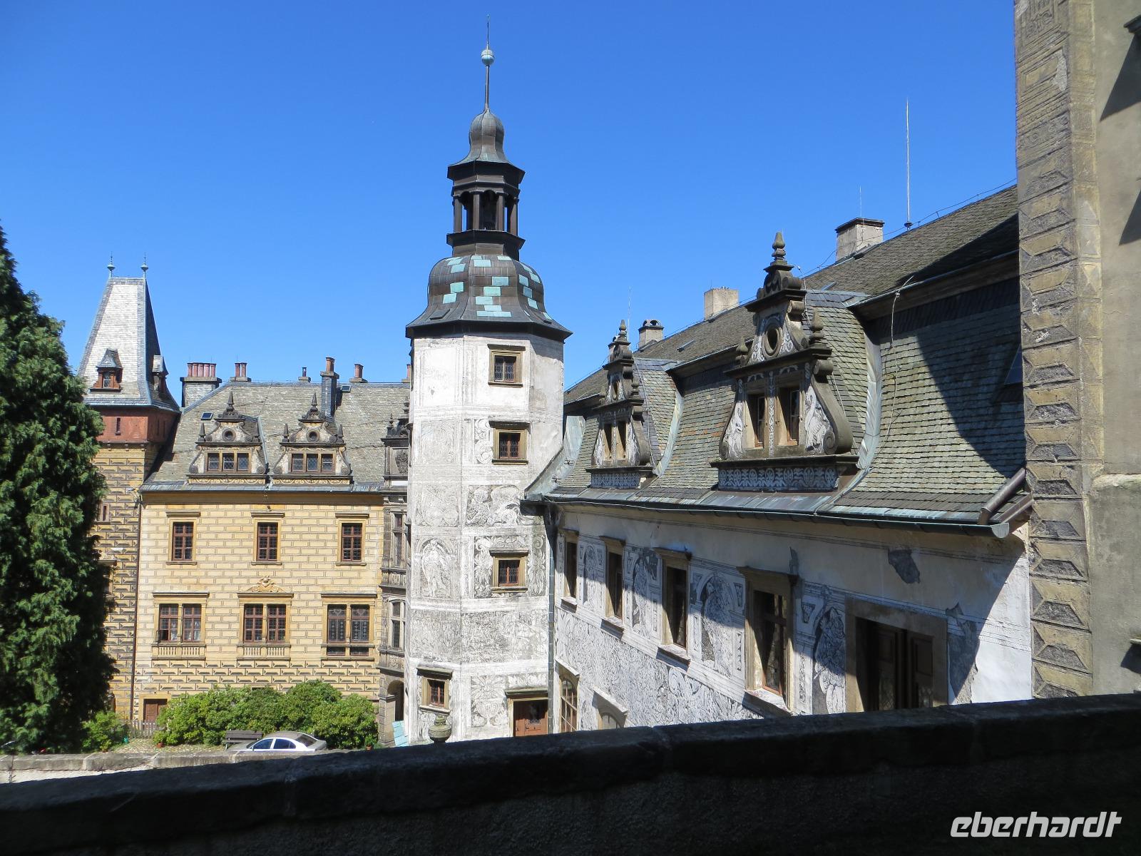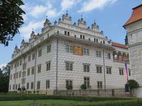 Am zeitigen Nachmittag erreichten wir Litomysl, die Geburtsstadt Smetanas. Mit ausreichend Zeit bis zur Schlossbesichtigung bummelten wir zunächst durch den einstigen Klostergarten. Noch war auch Zeit zum Fotografieren der bekannten Sgraffito-Fassade des Schlosses. Für die hiesigen Smetana-Musikfestspiele waren im Innenhof des Schlosses eine Bühne und mehr als tausend Plätze errichtet - so konnte man den von den UNESCO-„geehrten" Sgraffiti im Innenhof nur vom obersten Schlossgang sehen. Beeindruckend aber das kleine Schlosstheater - eines der ältesten noch original erhaltenen spätbarocken Schlosstheater in Europa.