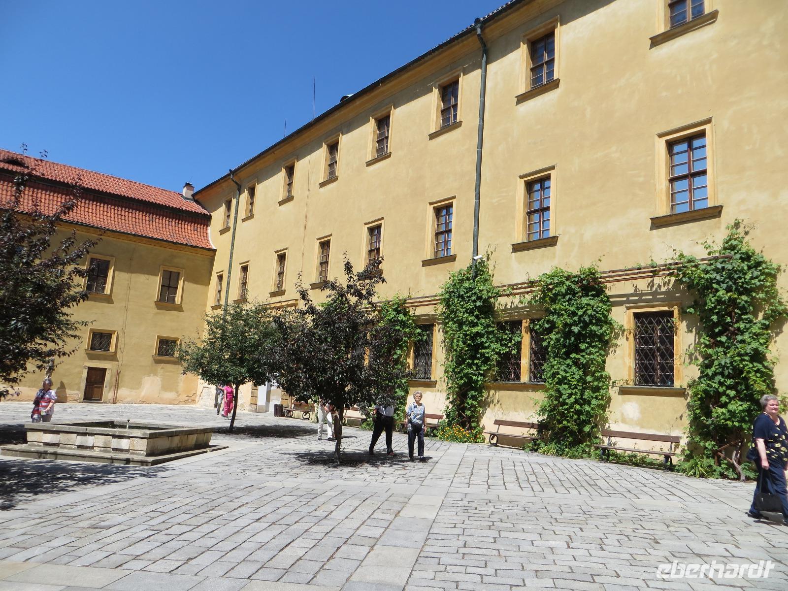 Nach zwei Stunden Fahrt hatten wir gegen Mittag den Stadtrand von Prag erreicht. Die Karlsbader Straße von Prag führt direkt über den Weißen Berg, 1620 Austragungsort einer bedeutenden Schlacht des Dreißigjährigen Krieges. Mit unserem Minibus und tschechischem Fahrer war dann sogar eine kleine Stadtrundfahrt durch Prag möglich: Hradschinberg, Mala Strana, Moldauufer und dann Einflug auf der dreispurigen Einbahnstraße zum Hotel. Nach typisch Prager-Hotelanfahrt (rund um das Caree und Stopp im fließenden Verkehr) standen wir an der Rezeption des repräsentativen Boutique-Hotels Seven Days in Prag 2, oder Nove Mesto, nur vierhundert Meter vom Wenzelsplatz entfernt. Insider nutzten den Nachmittag dann zum individuellen Erkunden der Stadt entsprechend ihrer spezifischen Interessen; all jene, die vor langer Zeit einmal in Prag waren, nutzten eine gemeinsame Orientierungstour entlang Wenzelsplatz zum Altstädter Rathaus durch Stare Mesto zur Karlsbrücke mit Blick auf den Hradschin, um einen Ausgangspunkt für individuelles Erkunden zu bestimmen. Bei durchwachsenen Sommerwetter - warm aber manchmal ein Regensprenkeln - waren wir ein gänzlich unbedeutender Bestandteil der Touristenmassen in dieser europäischen Hauptstadt ersten Ranges. Am Abend saßen wohl doch die meisten vor dem Fernseher: Fußball EM Deutschland gegen Italien - ein Viertelfinalspiel.