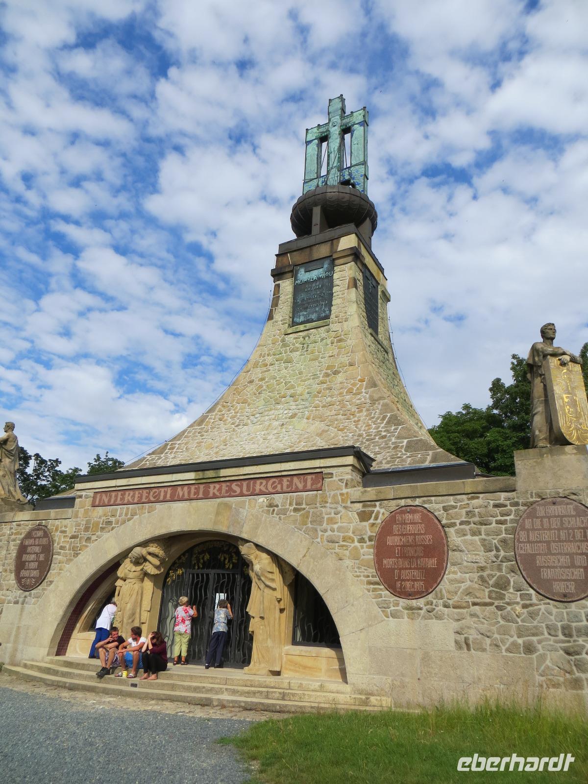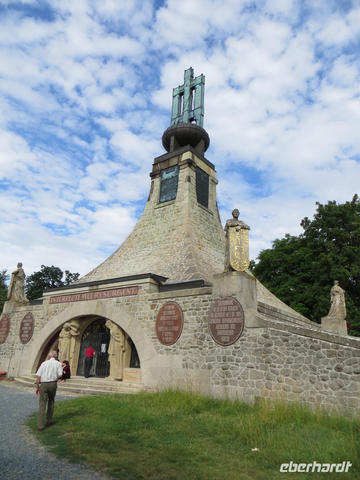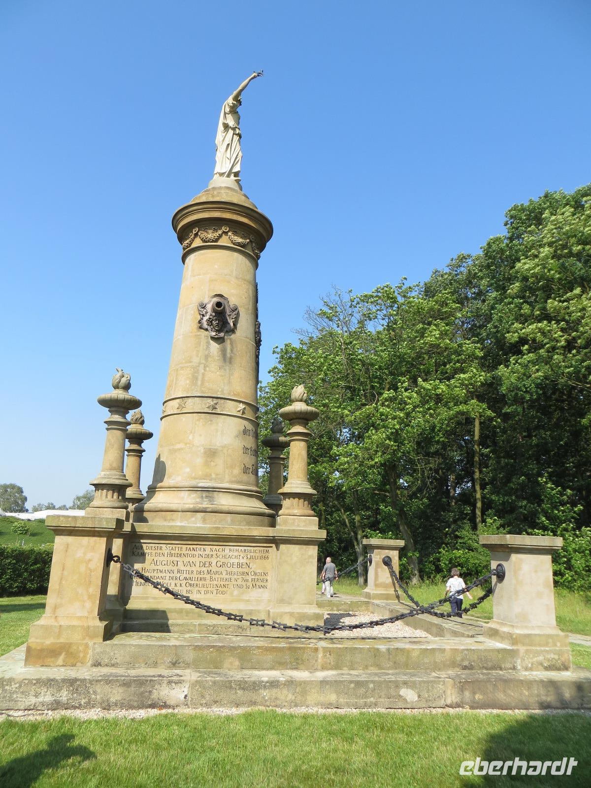 Auf der Rückfahrt nach Brünn verließen wir die Autobahn und fuhren zunächst zum Schloss Austerlitz mit seinem sehr geplegten Park, in dem einst auch Napoleon sein Lager aufgeschlagen hatte. Von hier eroberten wir mit dem Bus den Hügel bei Prace, an dem am 2. Dezember 1805 die Dreikaiserschlacht tobte.