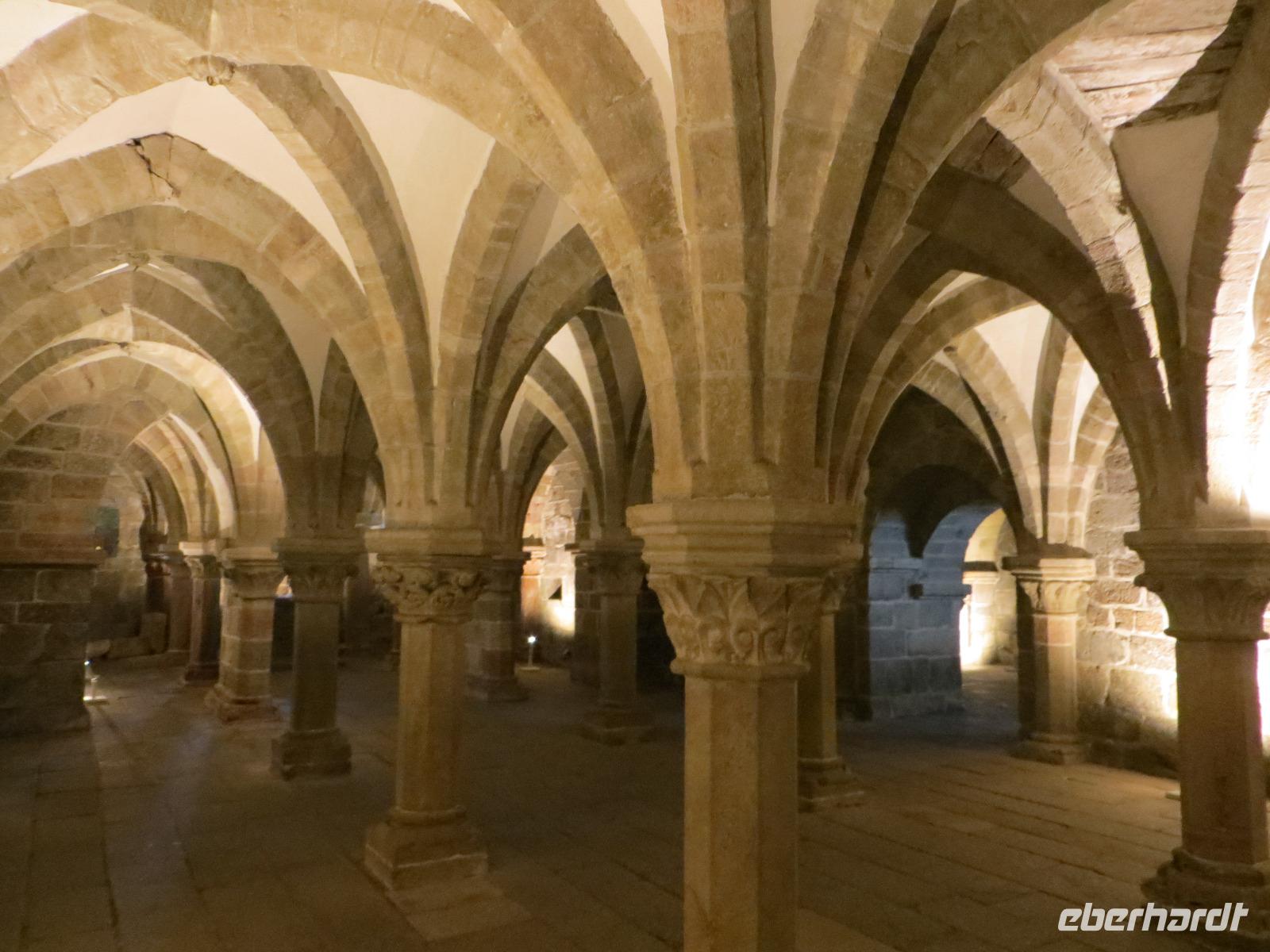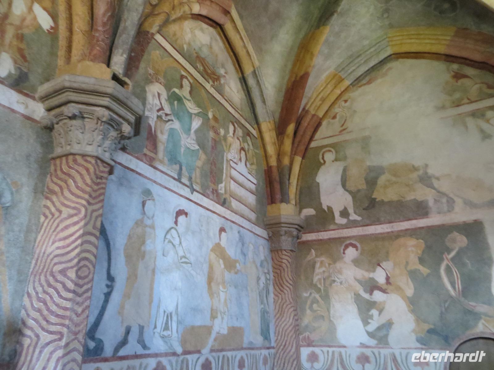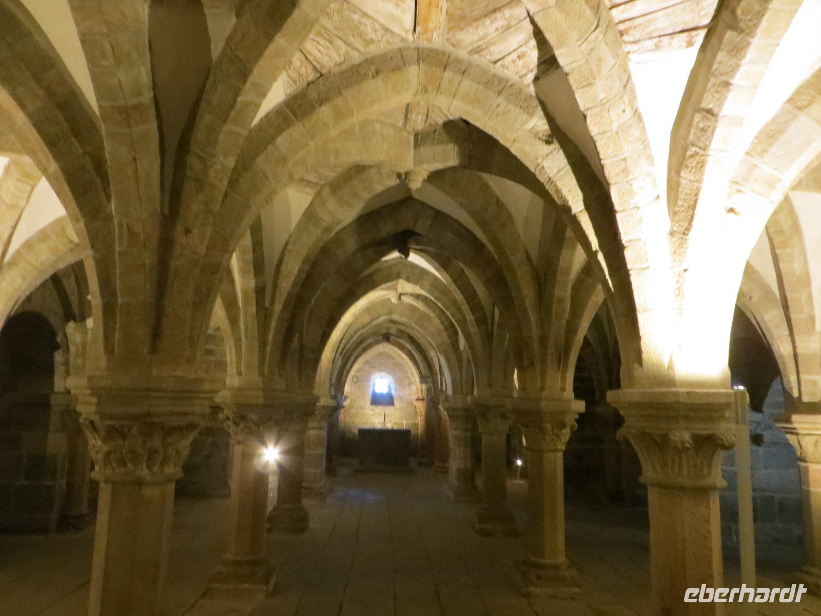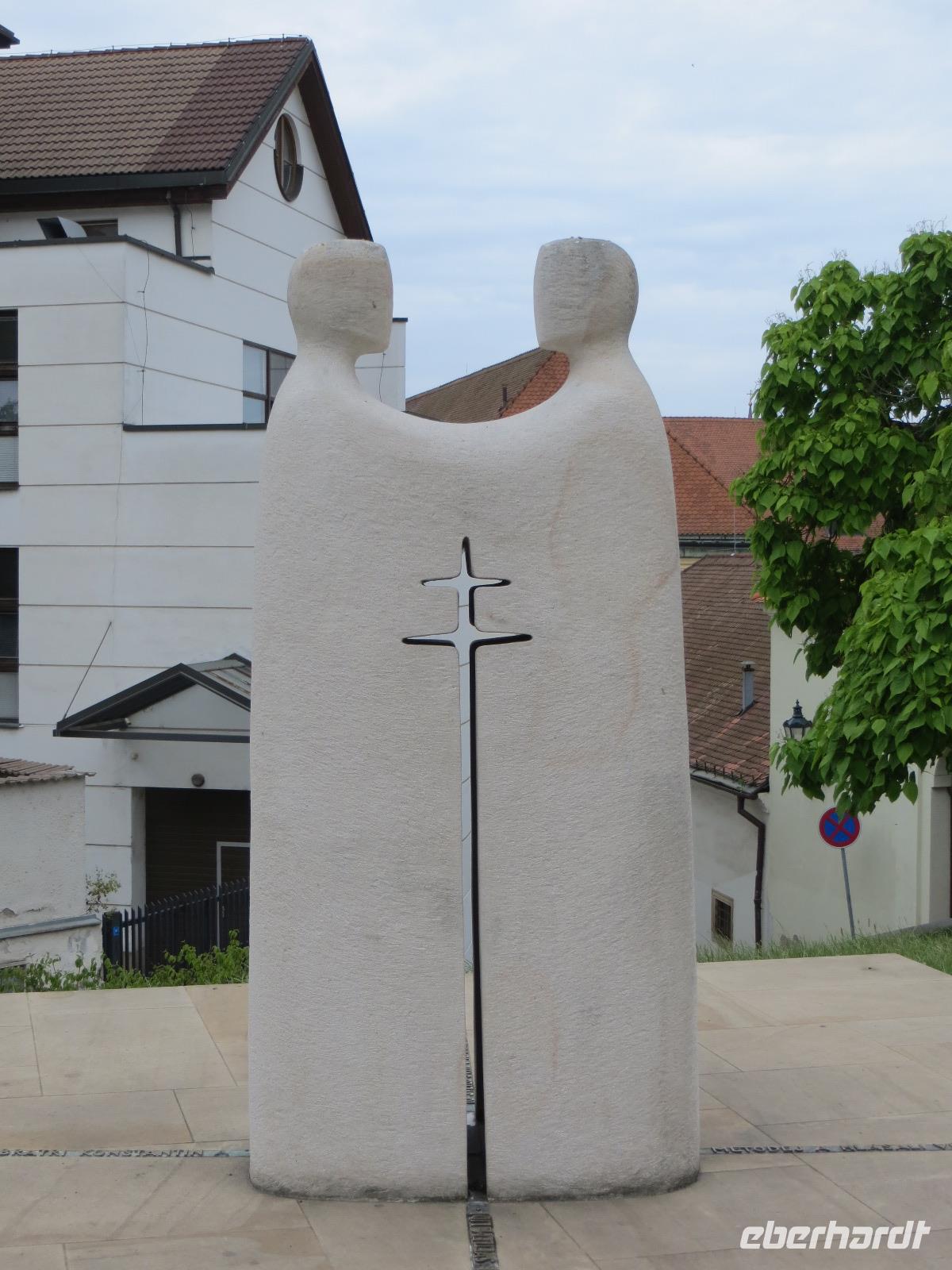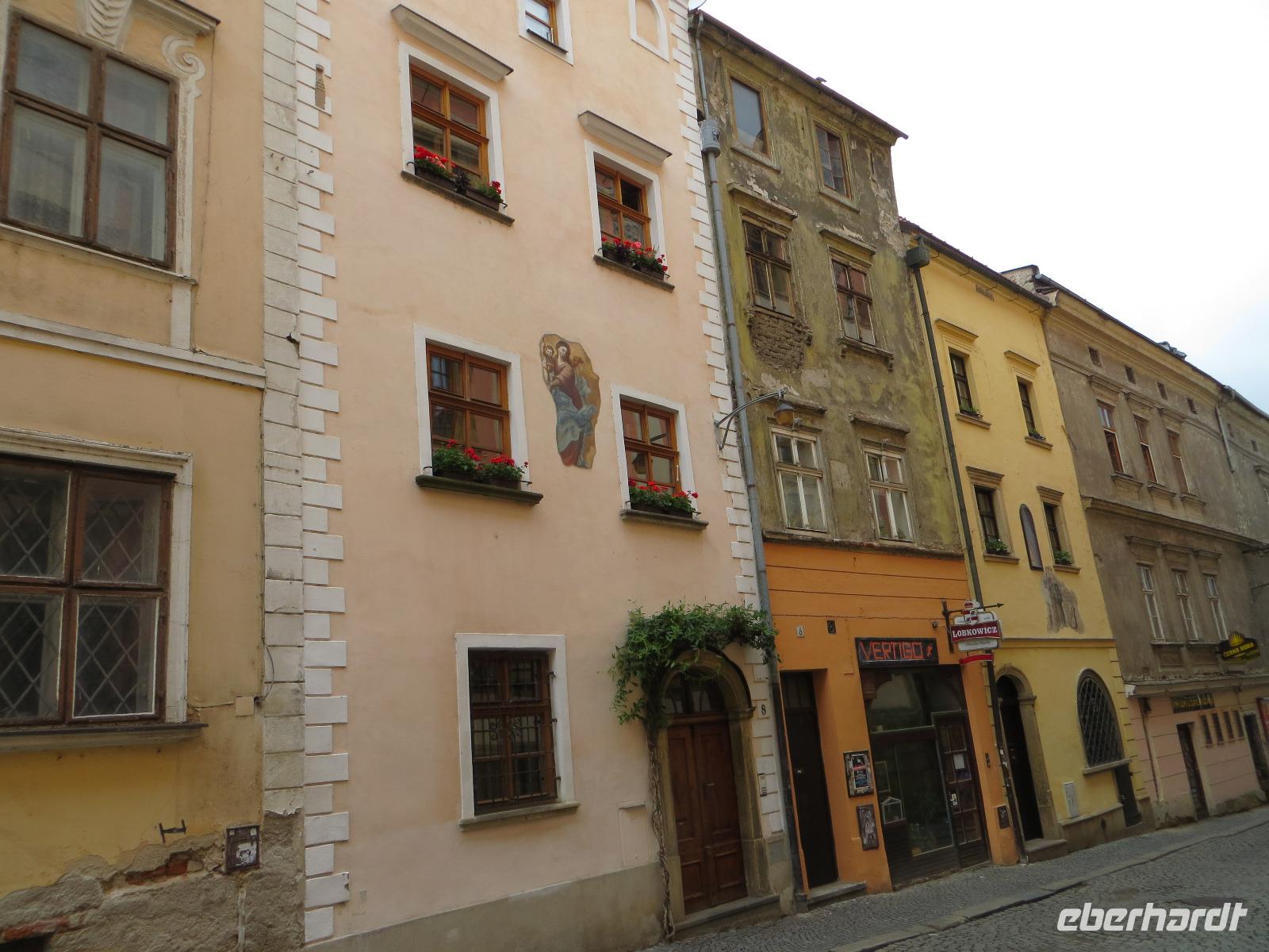 Wieder schönes Sommerwetter begleitete uns auf unserer Tour nach Trebic und Telc, um zwei UNESCO-Welterbestandorte kennen zu lernen. In Trebic war die alte Brücke unter der Bazilika am Rande des Jüdischen Viertels abgerissen, so dass wir südlich parkten und unseren Weg im jüdischen Viertel begannen. Durch enge Gassen zwischen irgendwann einmal rekonstruierten Häusern, die mittlerweile teilweise ihre Farbe wieder verlieren, stiegen wir auf zum jüdischen Friedhof, einem der größten in der Tschechischen Republik. Von dort ging es zum Schloss mit seiner spätromanisch-frühgotischen Bazilika St. Prokop. Diese Baziliga von Trebic ist wahrscheinlich die älteste Kirche auf unserem Reiseweg. Wir hatten Glück und erreichten sogar eine der wenigen Besichtigungszeiten, so dass wir den Innenausbau und die romanische Krypta besichtigen konnten.
