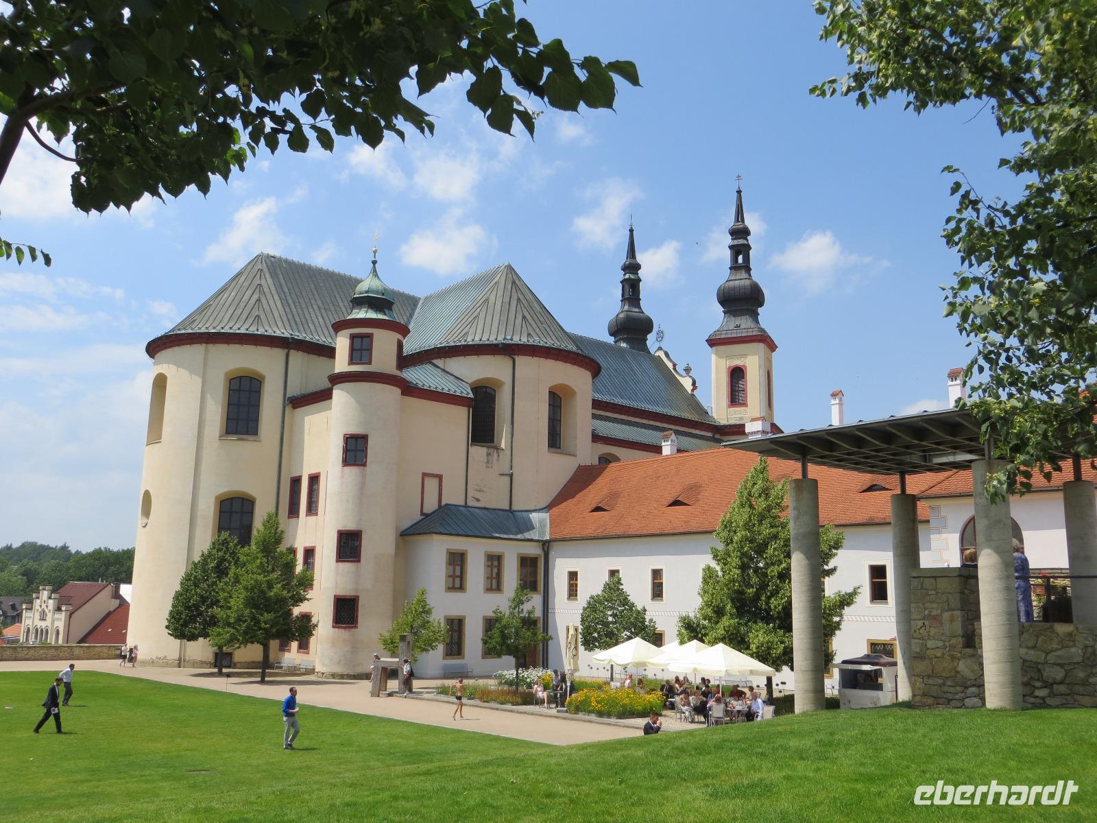 Nach einem langen EM-Spiel mit spannendem Elfmeterkrimi war am Sonntag Zeit zum Ausschlafen. Trotzdem waren die meisten Gäste kurz nach siegen Uhr bereits beim Frühstück. Sonnenschein begleitete uns bei der Ausfahrt aus Prag: an Vysegrad vorbei, der ersten Prager Burg. Nach einer Stunde hatten wir Kolin, Köln an der Elbe, erreicht. Das eher unbekannte Städtchen war im 13. Jahrhundert eine von über vierzig Königsstädten und erlebte 1757 die Schlacht des Großen Fritzen gegen die Österreicher, eine der ersten Schlachten im 7-jährigen Krieg. In Kolin unternahmen wir eine kleine Runde über den Markt mit einem prächtigen Rathaus und durch das ehemalige jüdische Viertel mit einer Synagoge.