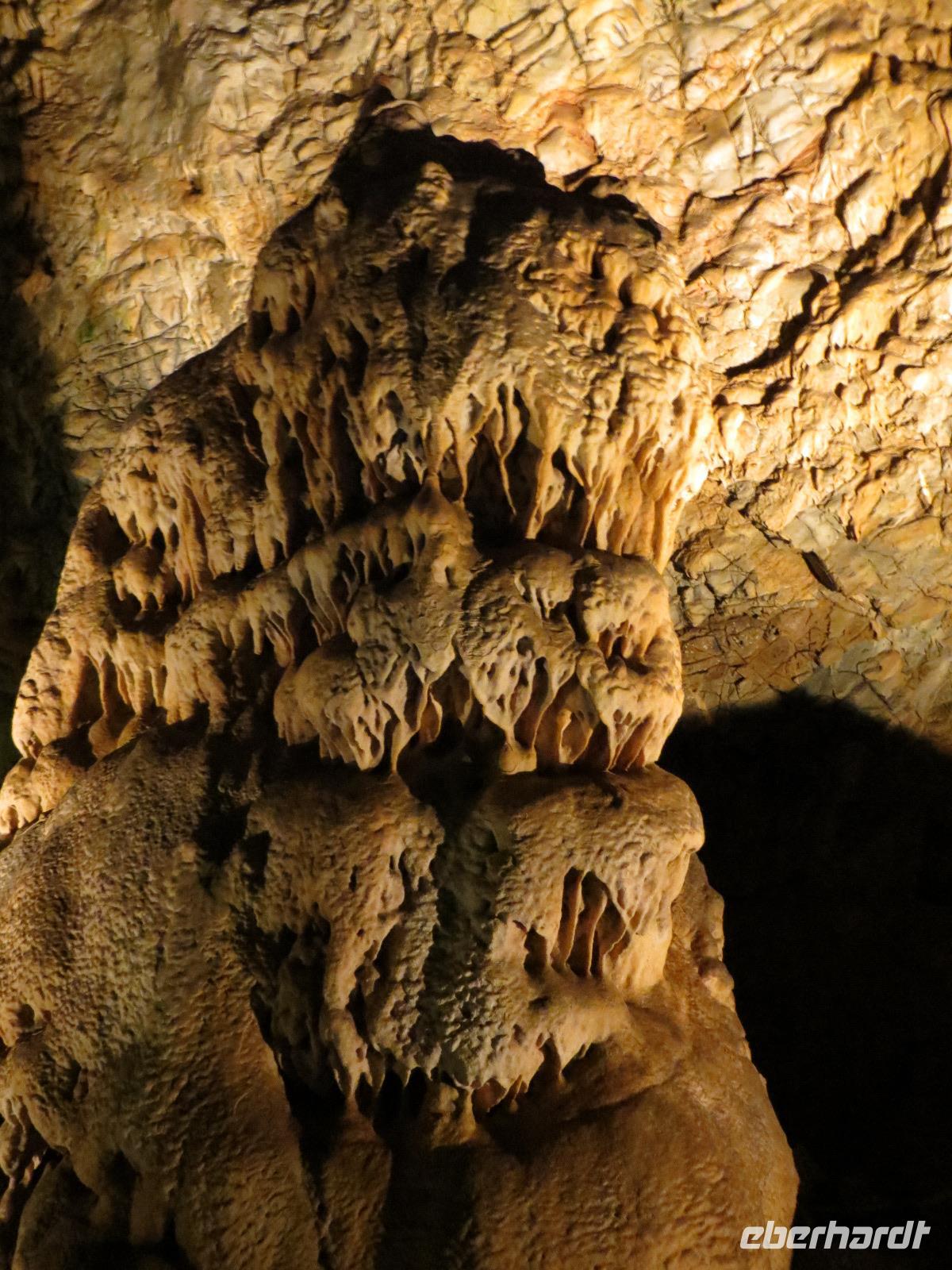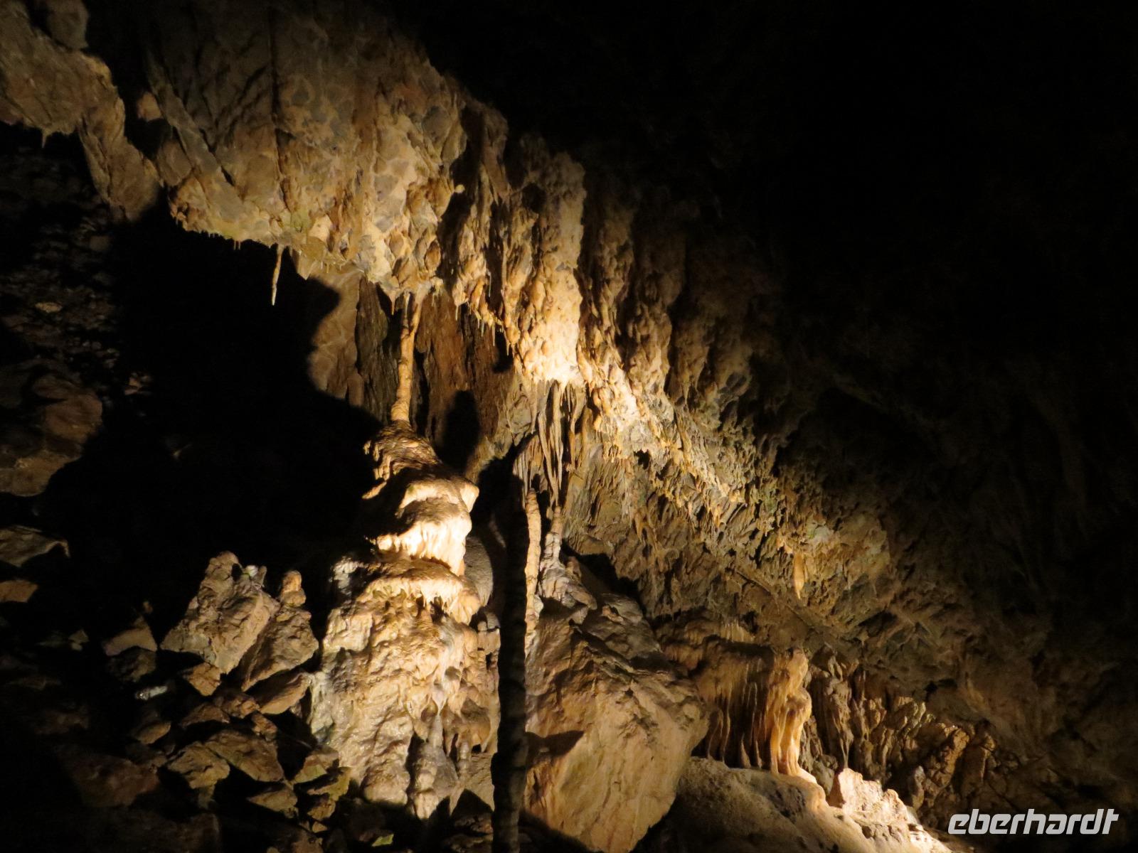 Nach dem Frühstück starteten wir mit dem Bus in Richtung Mährischer Karst. Eigenlich wollten wir - angemeldet - die große Punkva-Höhle besichtigen. Aber irgendwie war der Wurm drin. Wir bastelten eine Alternative: zunächst besichtigten wir die Katharinen-Höhle, deren renommiertes Figur eine Hexe ist. Neben Tropfsteinen ist diese Höhle vor allem durch die größten inneren Felsendome bekannt - tolle Akustik!