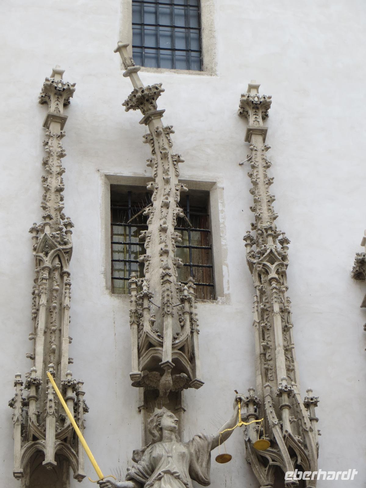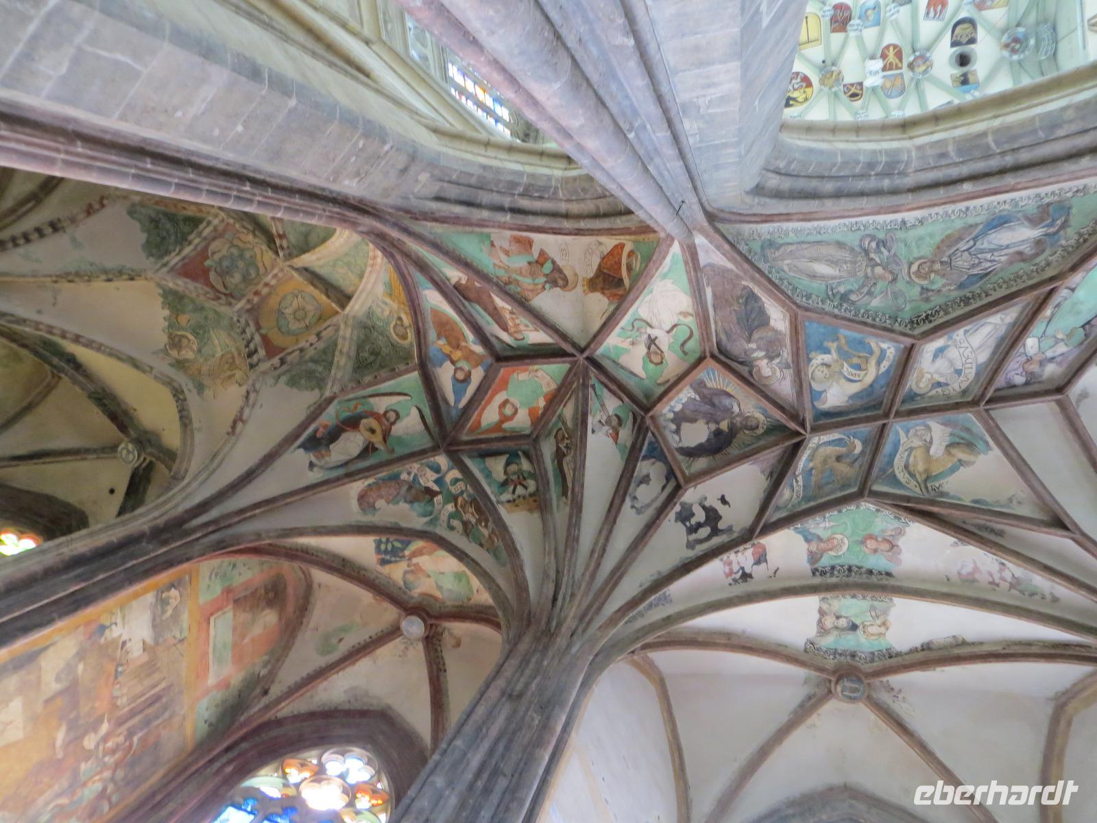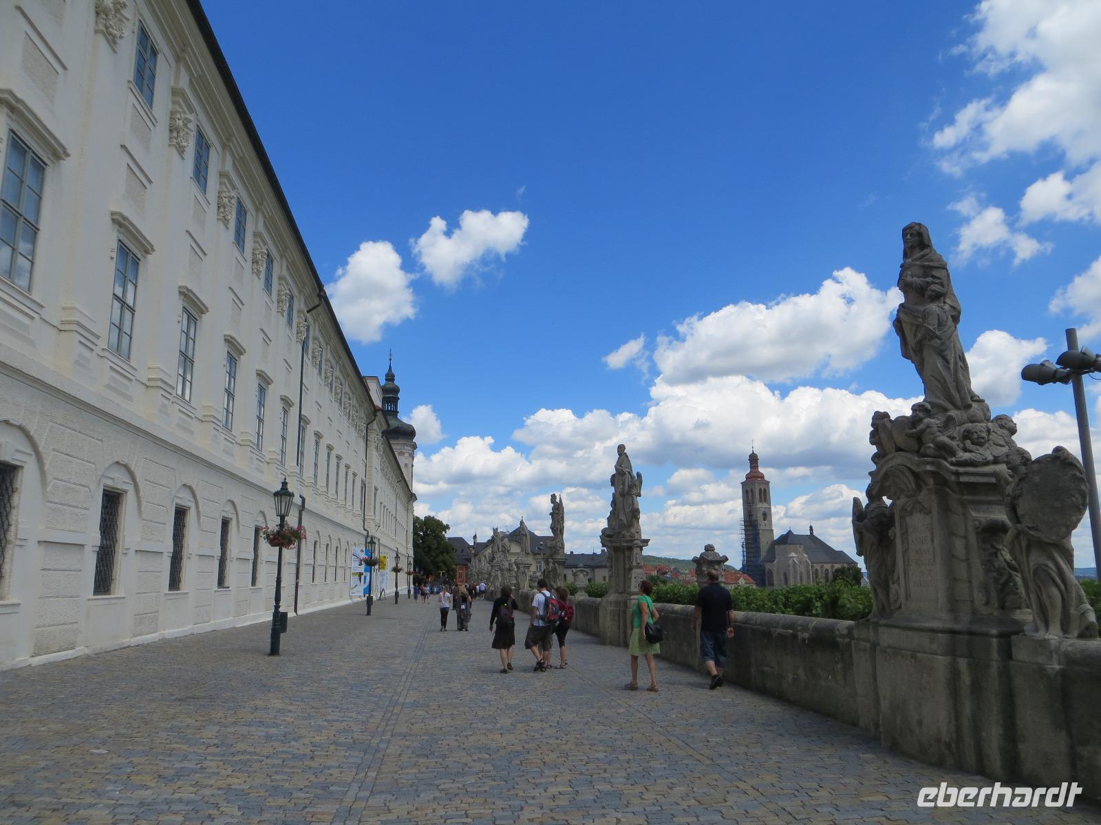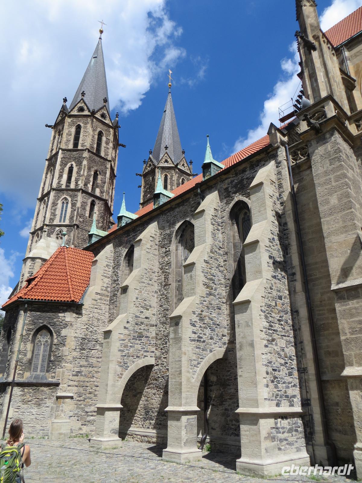 Dann schloss man uns St. Bartholomäus auf, eine gotische Kirche, die stark vom Stararchitekten seiner Zeit Petr Parler geprägt wurde. Zur Mittagszeit trafen wir in Kuttenberg ein und erkundeten das Örtchen an der Kathedrale St. Barbara - auch von Jan und Petr Parler - beginnend. Die Netzkonstruktion des riesigen Kirchenschiffs ist beeindruckend. Das riesige Jesuitenkolleg auf dem Weinberg ist frisch rekonstruiert und strahlte uns beim Weg über die Terrasse - als Weg vom Kolleg zur Kirche einst entstanden - entgegen. Aufgeräumte Gässchen mit zahlreichen Kneipen machten den Bummel und eine Rast im Örtchen Kutna Hora sehr angenehm. Wunderhübsch auch der Welsche Hof, die einstige Münze, und die rekonstruierte Kirche St. Jakobus.