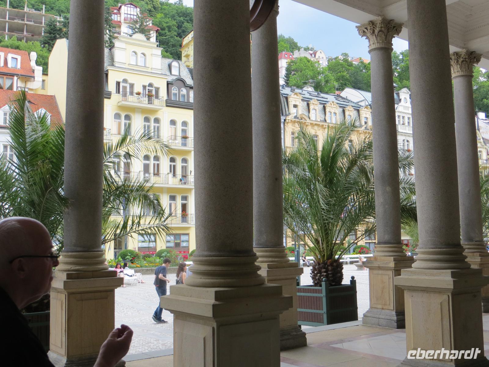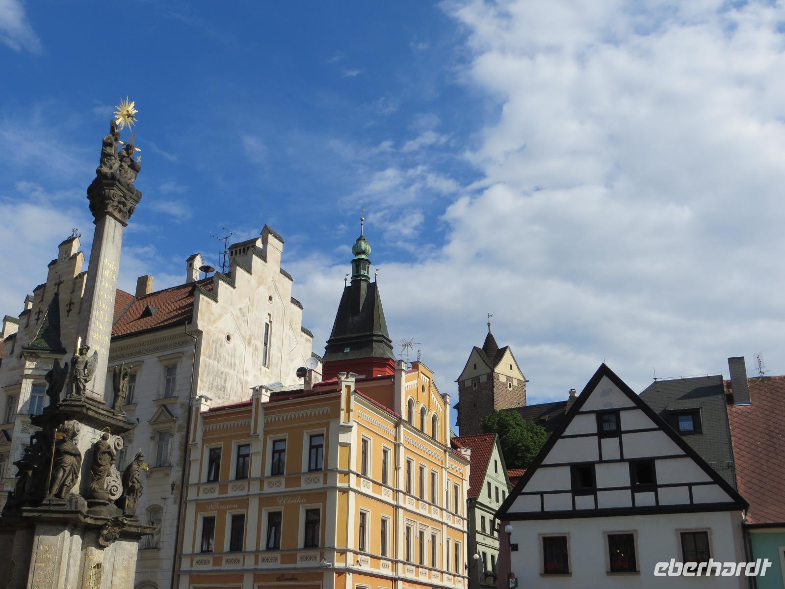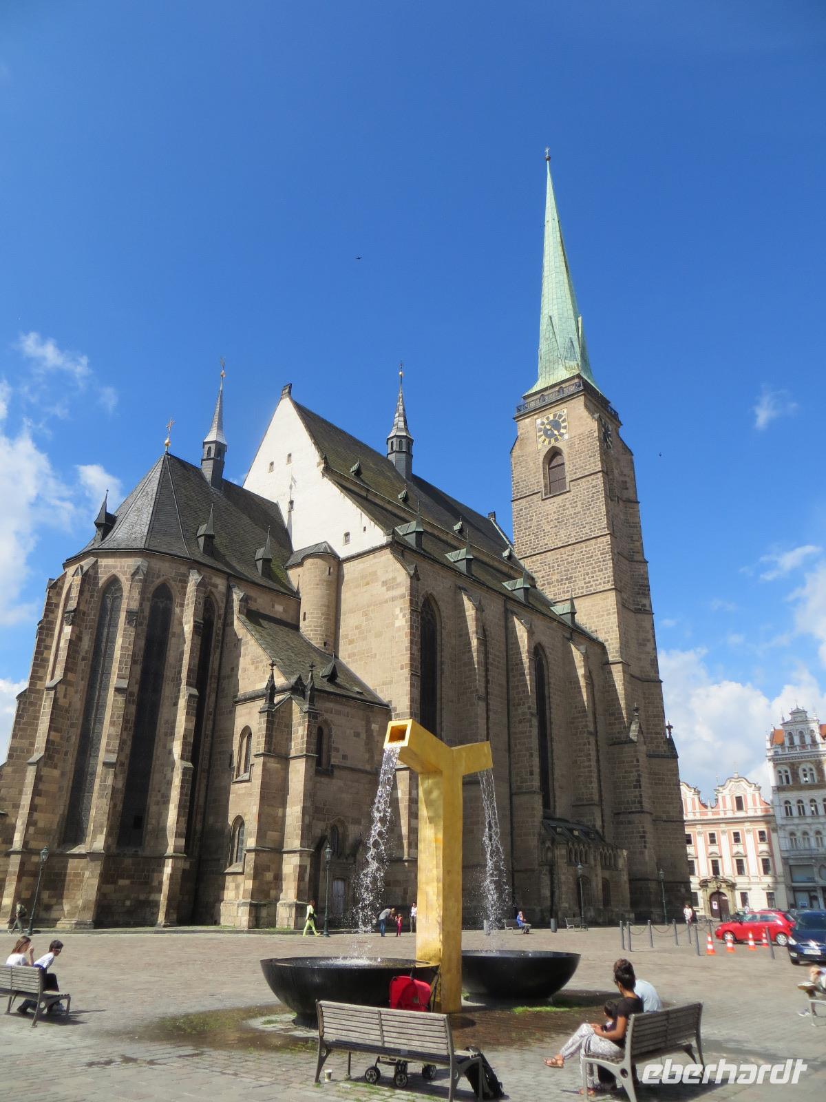 Nach Schlösser- und Burgentagen wollten wir uns heute einige Orte mit Geschichte im Westen Tschechiens anschauen. Bei der Fahrt nach Pilsen mit Durchfahrt des Ortes Nepomuk, noch ein geschichtlicher Rückblick auf die Bedeutung des Heiligen Nepomuk für die Tschechen. Auf Grund seiner industriellen Geschichte gilt Pilsen oft eher als graue Stadt. Indes hat Pilsen - insbesondere als Kulturhauptstadt Europas 2015 - an touristischer Qualität gewonnen und rund um den Markt einige ansehnliche Gebäude herausgeputzt. Bedeutsam vor allem St. Bartholomäus, der höchste Kirchturm Tschechiens, Bürgerhäuser in den Straßen rund um den Markt und die Synagoge, eine der mächtigsten in Europa. Mittagspause dann in Eger, dem heutigen Cheb. Auch diese Stadt, bekannt eher als Stadt der Vertriebenen, der tschechischen Sinti und Roma, von Vietnamesen und Prostituierten, hat an Charme gewonnen: der Markt, die Gassen im Umfeld und die Parkanlage an der ehemaligen Kaiserpfalz, wo Kaiser Barbarossa die Goldene Bulle von Eger verfasste. Zeit nochmals an Wallenstein zu erinnern, der hier 1634 ermordet wurde. Nachmittagsstopp dann in Karlsbad mit einem Bummel vom Niedern Bahnhof über den Necherplatz, den Masarykplatz, entlang der Tepla zu den Kolonnaden, an deren Quellen sich auch Atatürk, Goethe und Marx labten. Heute ist Karlsbad wohl die russischste Stadt in Mitteleuropa...auch wenn es scheinbar nicht mehr so boomt wie noch in den Vorjahren - und manches einst russische Hotel steht gar zum Verkauf.
