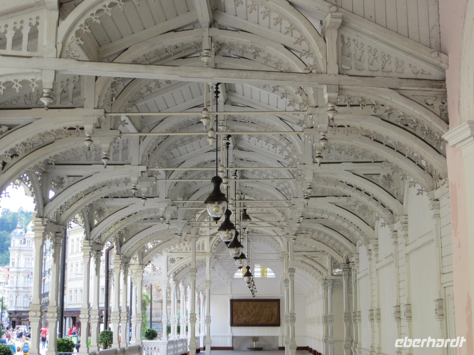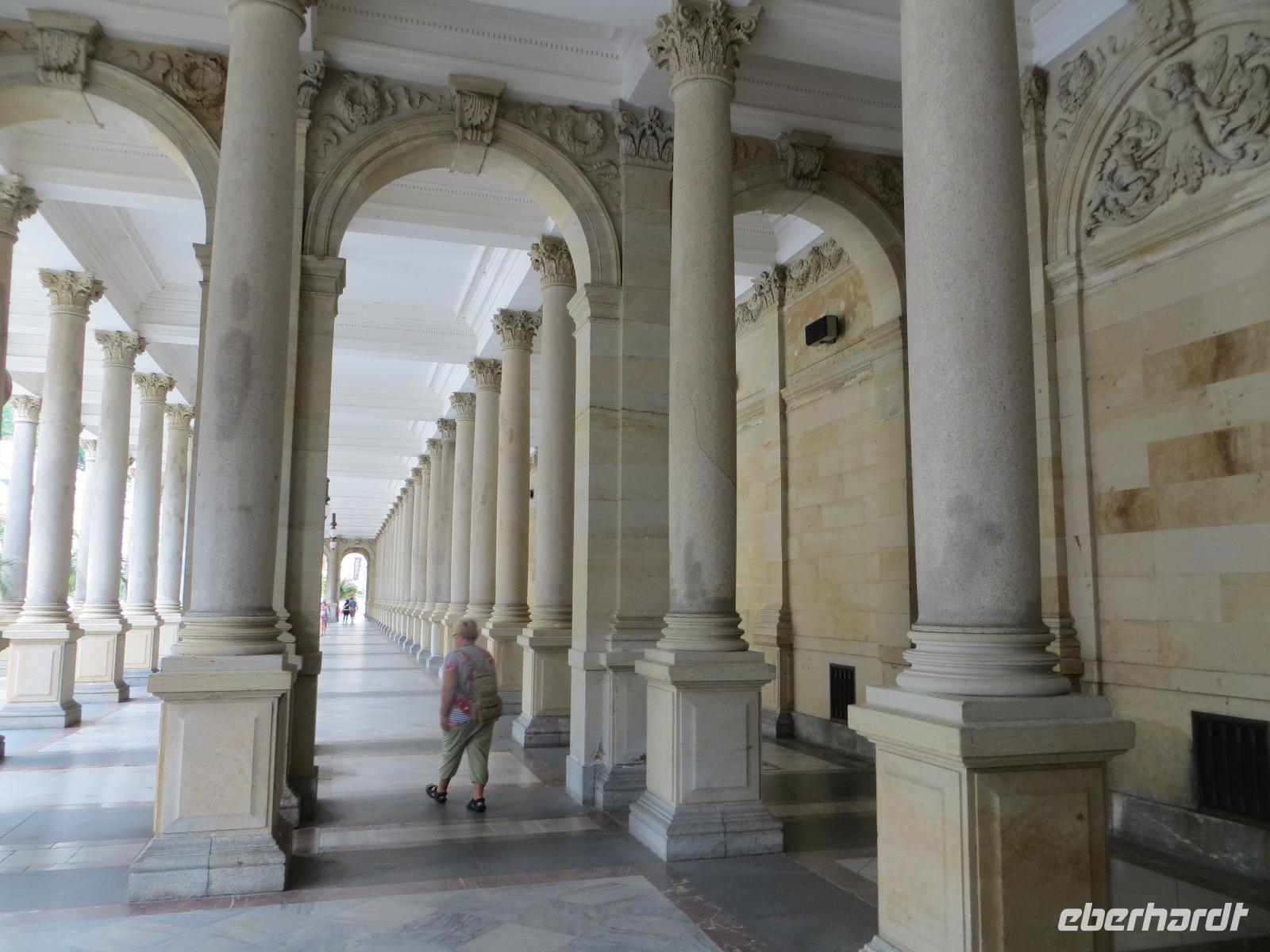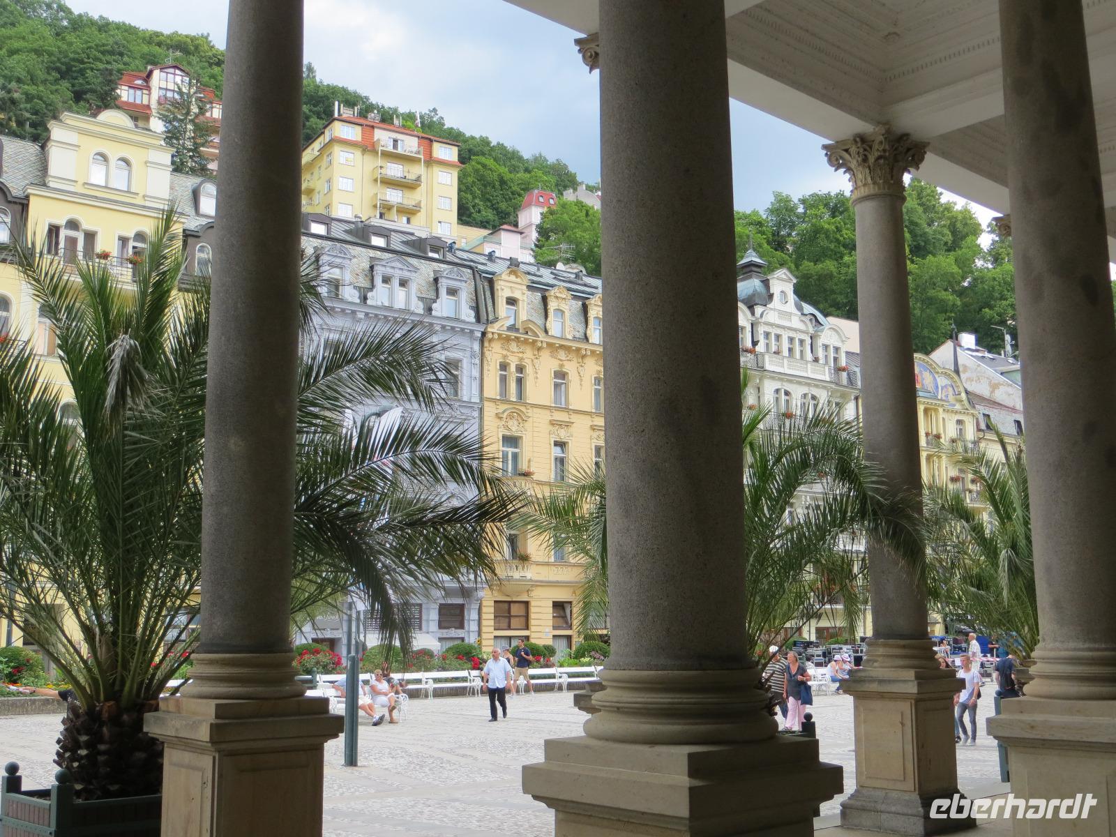 Nach Schlösser- und Burgentagen wollten wir uns heute einige Orte mit Geschichte im Westen Tschechiens anschauen. Bei der Fahrt nach Pilsen mit Durchfahrt des Ortes Nepomuk, noch ein geschichtlicher Rückblick auf die Bedeutung des Heiligen Nepomuk für die Tschechen. Auf Grund seiner industriellen Geschichte gilt Pilsen oft eher als graue Stadt. Indes hat Pilsen - insbesondere als Kulturhauptstadt Europas 2015 - an touristischer Qualität gewonnen und rund um den Markt einige ansehnliche Gebäude herausgeputzt. Bedeutsam vor allem St. Bartholomäus, der höchste Kirchturm Tschechiens, Bürgerhäuser in den Straßen rund um den Markt und die Synagoge, eine der mächtigsten in Europa. Mittagspause dann in Eger, dem heutigen Cheb. Auch diese Stadt, bekannt eher als Stadt der Vertriebenen, der tschechischen Sinti und Roma, von Vietnamesen und Prostituierten, hat an Charme gewonnen: der Markt, die Gassen im Umfeld und die Parkanlage an der ehemaligen Kaiserpfalz, wo Kaiser Barbarossa die Goldene Bulle von Eger verfasste. Zeit nochmals an Wallenstein zu erinnern, der hier 1634 ermordet wurde. Nachmittagsstopp dann in Karlsbad mit einem Bummel vom Niedern Bahnhof über den Necherplatz, den Masarykplatz, entlang der Tepla zu den Kolonnaden, an deren Quellen sich auch Atatürk, Goethe und Marx labten. Heute ist Karlsbad wohl die russischste Stadt in Mitteleuropa...auch wenn es scheinbar nicht mehr so boomt wie noch in den Vorjahren - und manches einst russische Hotel steht gar zum Verkauf.