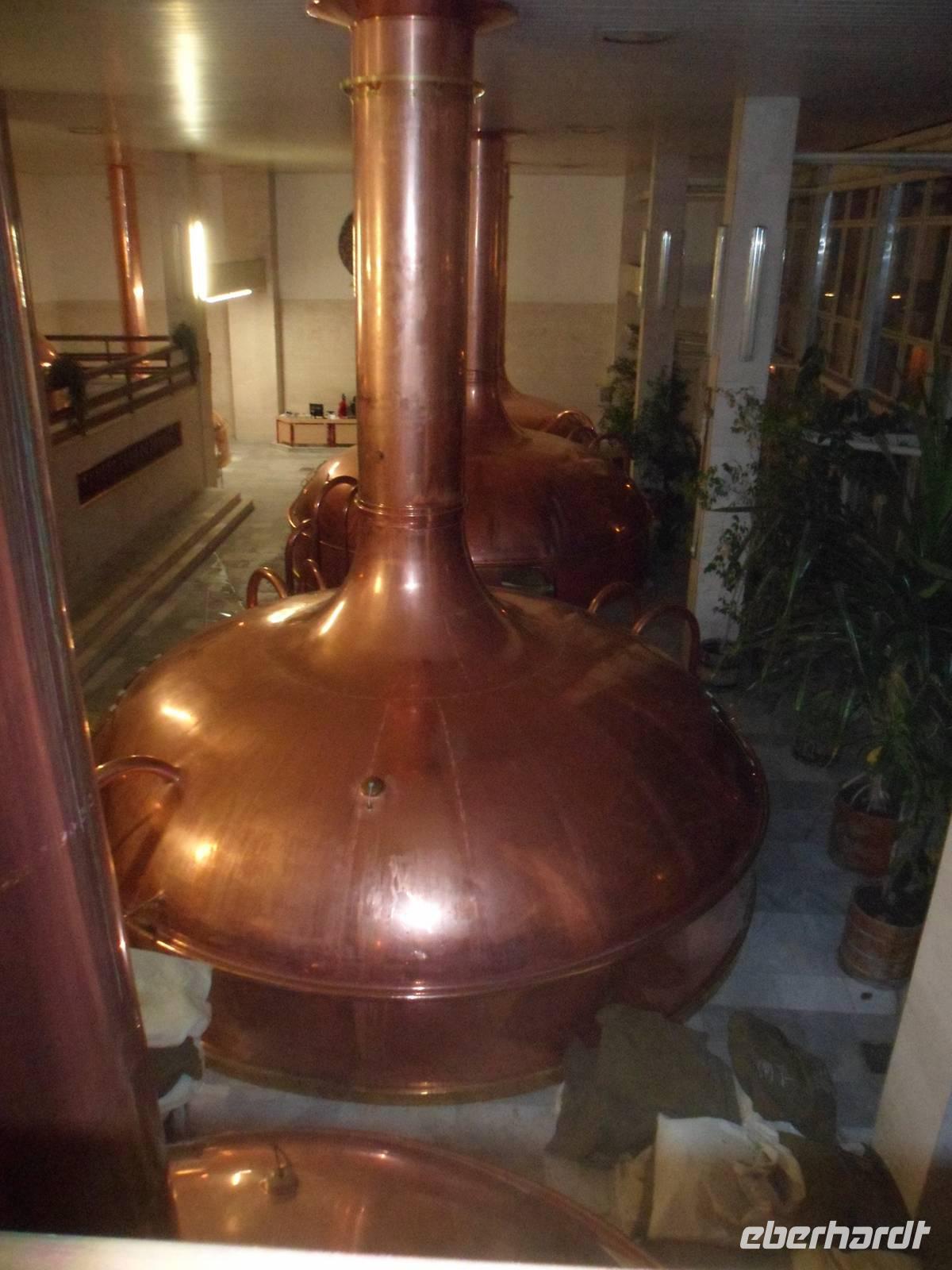 Zurück zum Bus - es war schon dunkel geworden - fuhren wir zur Brauerei, wo das berühmte „Budweiser" gebraut wird. . Hier wurden wir schon zur Brauereibesichtigung erwartet. Unser Weg führte uns zuerst zum 300 m tiefen Brunnen. Hieraus wird das Wasser verwendet. Wir haben erfahren, wie das Malz und die Brauwürze entstehen, wie mit der Zugabe der Hefe der einzigartig volle Geschmack, der Stich sowie der Duft des Bieres mit dem beständigen Schaum zur Welt kommt. Im Bierkeller konnten wir das 12%ige Bier probieren.