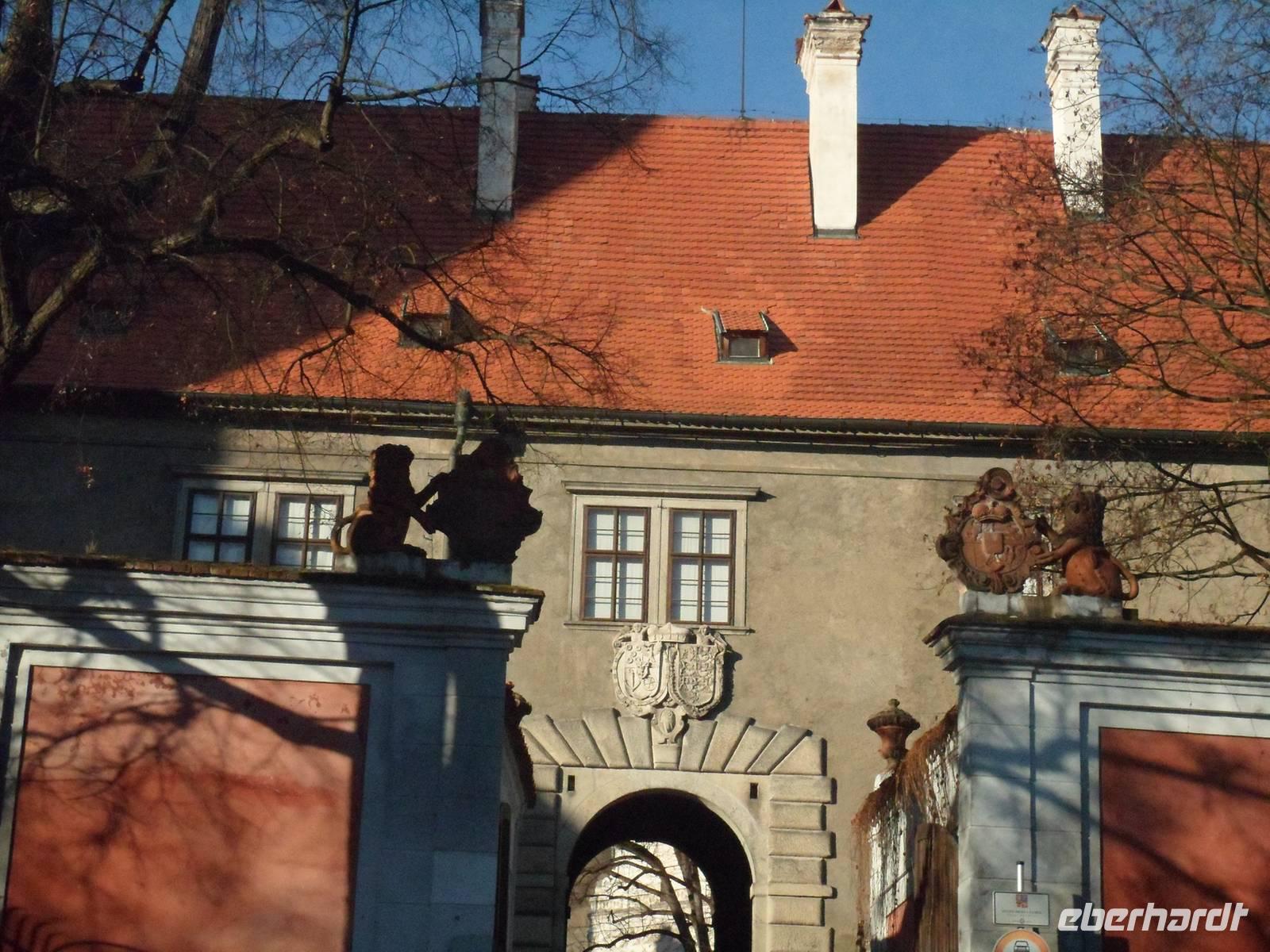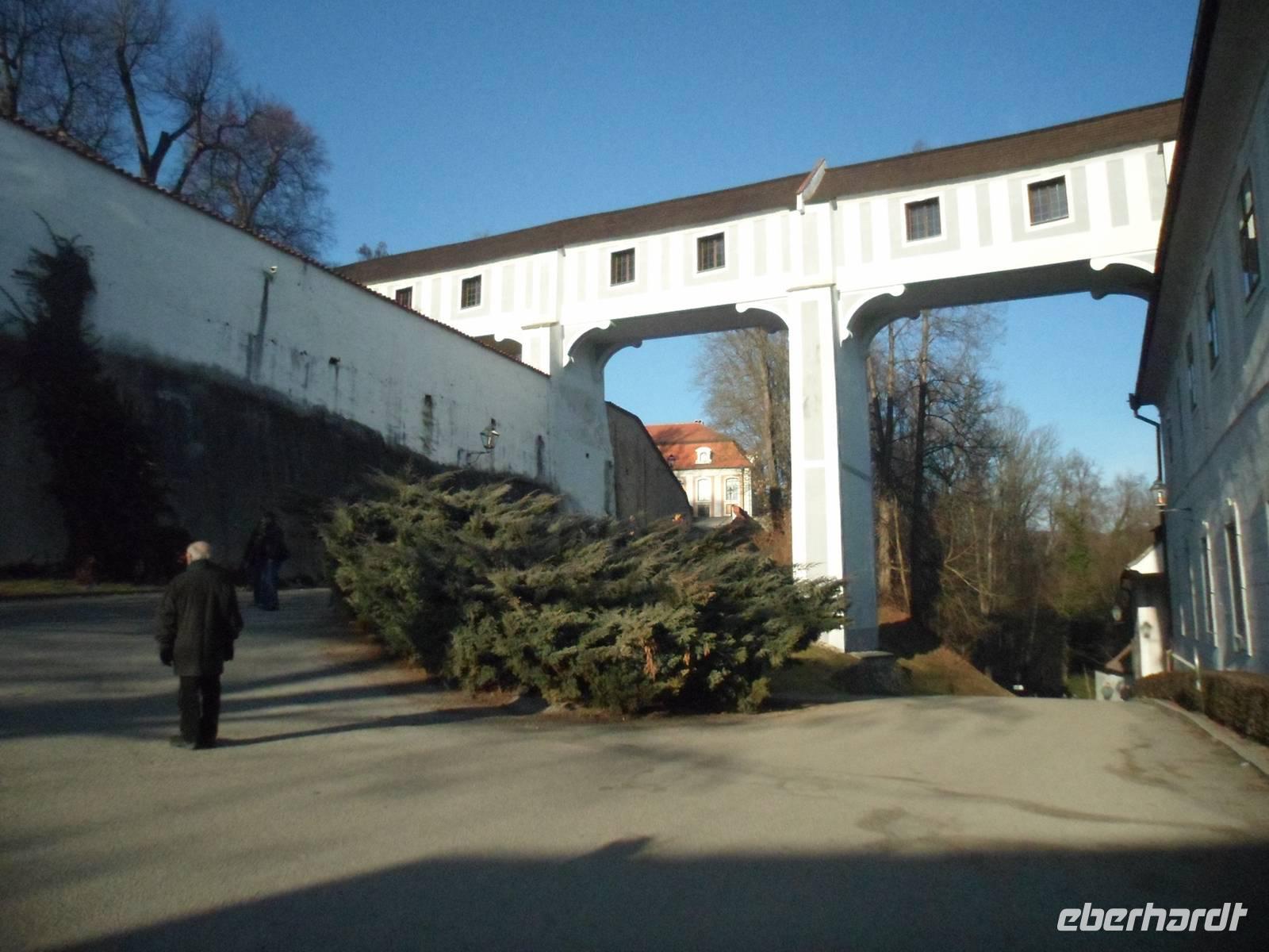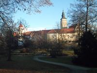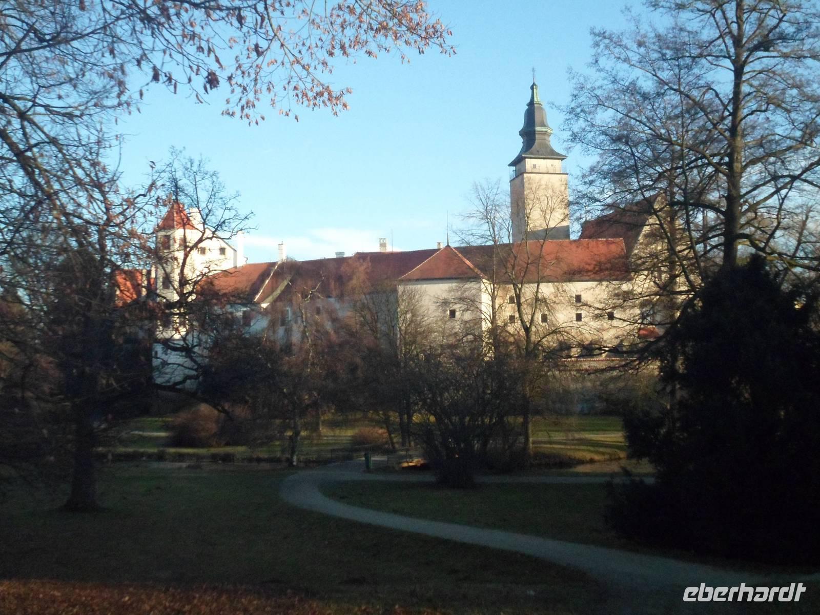 Unser Bus hielt vor dem Burggarten des schneeweißen Schlosses. Wir besichtigten die Kirche St.-Ägidius, den länglichen Marktplatz mit herrlichen Laubenganghäusern, Mariensäule und Brunnen. Danach führte unser Weg zum Renaissanceschloss. Durch mächtige Tore und mehrere Höfe bis hin zum Schlosspark. - angelegt im englischen Stil.