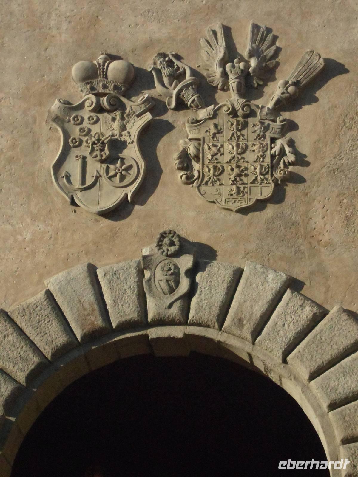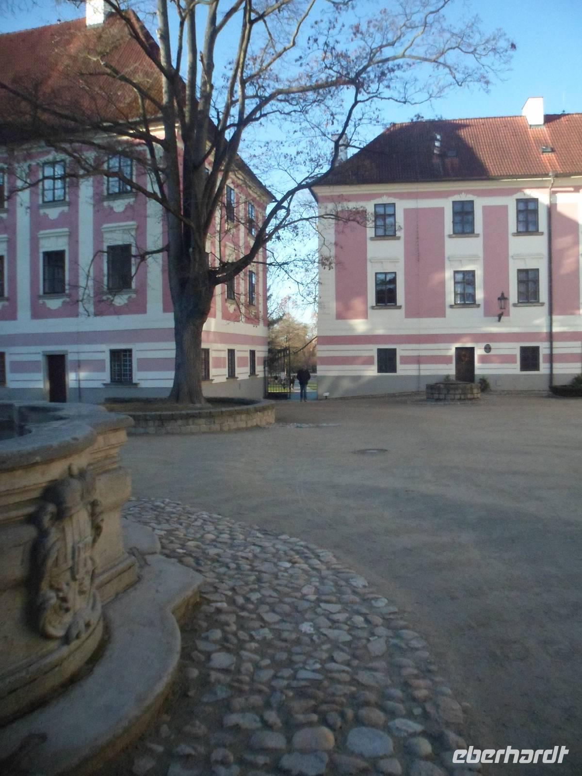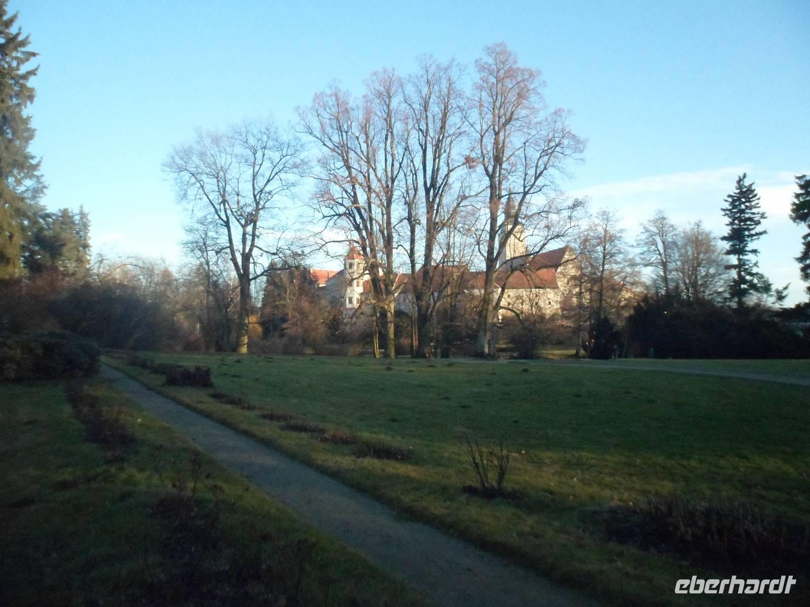 Unser Bus hielt vor dem Burggarten des schneeweißen Schlosses. Wir besichtigten die Kirche St.-Ägidius, den länglichen Marktplatz mit herrlichen Laubenganghäusern, Mariensäule und Brunnen. Danach führte unser Weg zum Renaissanceschloss. Durch mächtige Tore und mehrere Höfe bis hin zum Schlosspark. - angelegt im englischen Stil.