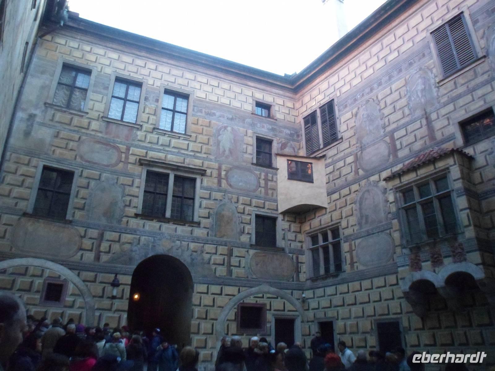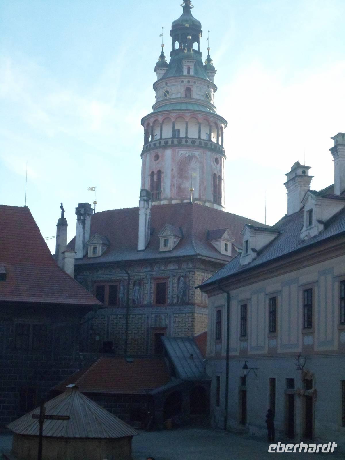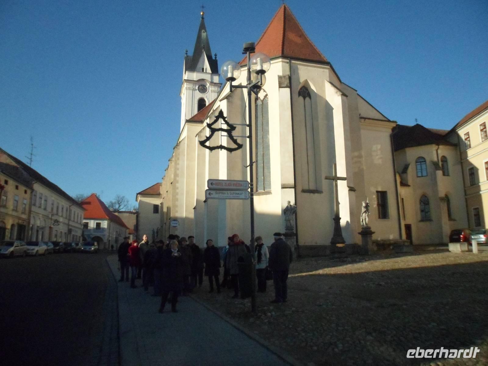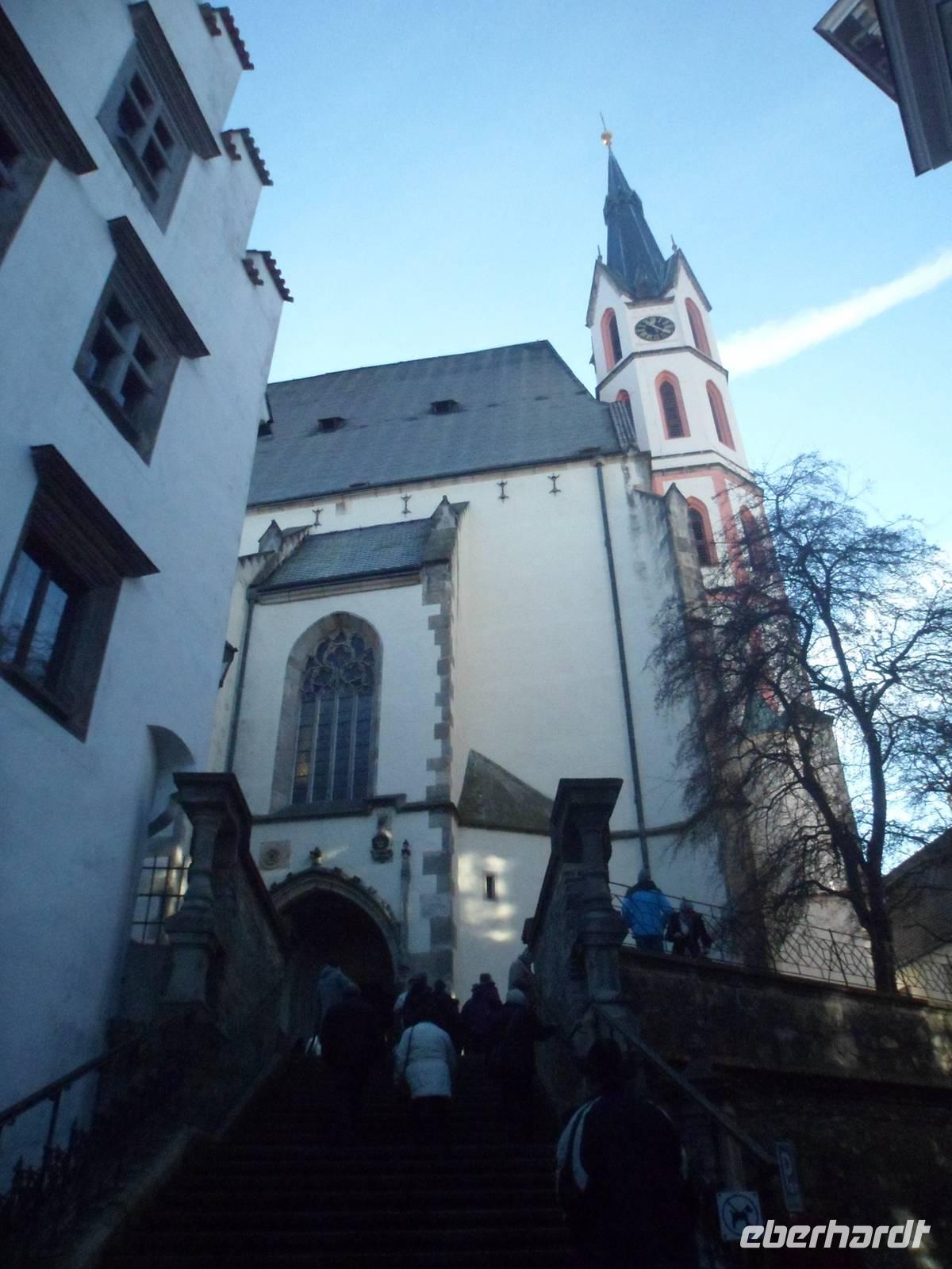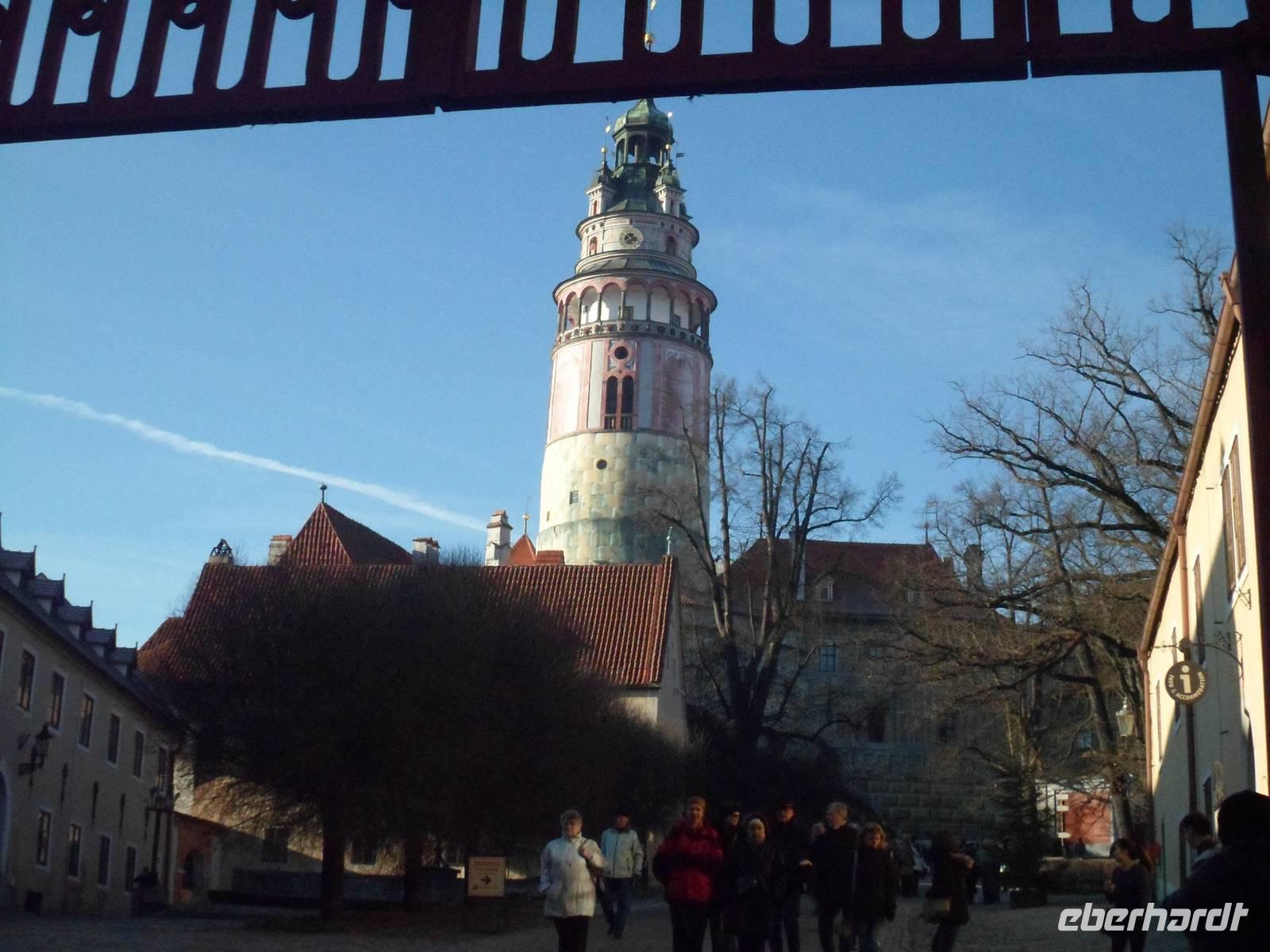 Die drei großen Adelsgeschlechter Südböhmens, die Rosen-, Eggen- und Schwarzenbergs haben hier immer wieder um-, an- und neu gebaut. Entstanden ist, nach Prag, die zweitgrößte Burganlage Böhmens mit fünf Schlosshöfen, um die sich zahlreiche Gebäude gruppieren. Unser Abstieg führte uns durch die vielen Schlosshöfe, durchs Bärentor und durch viele kleine schmale Gassen zum Marktplatz, weiter bis zur Kirche. Hier endete unser gemeinsamer Rundgang. Jeder konnte selbst die Stadt mit den schmalen Gassen und den vielen kleinen Einkaufsläden erkunden.