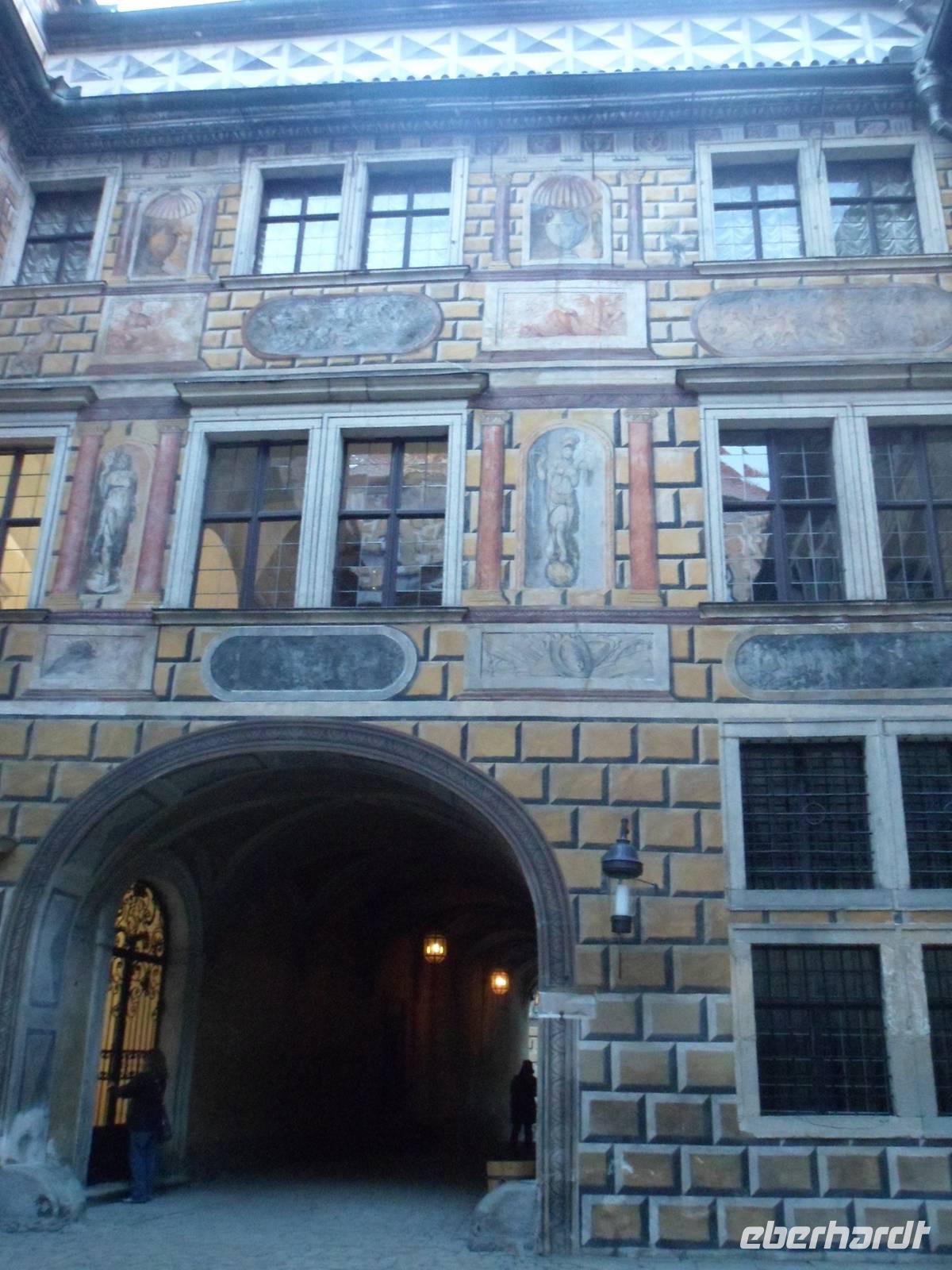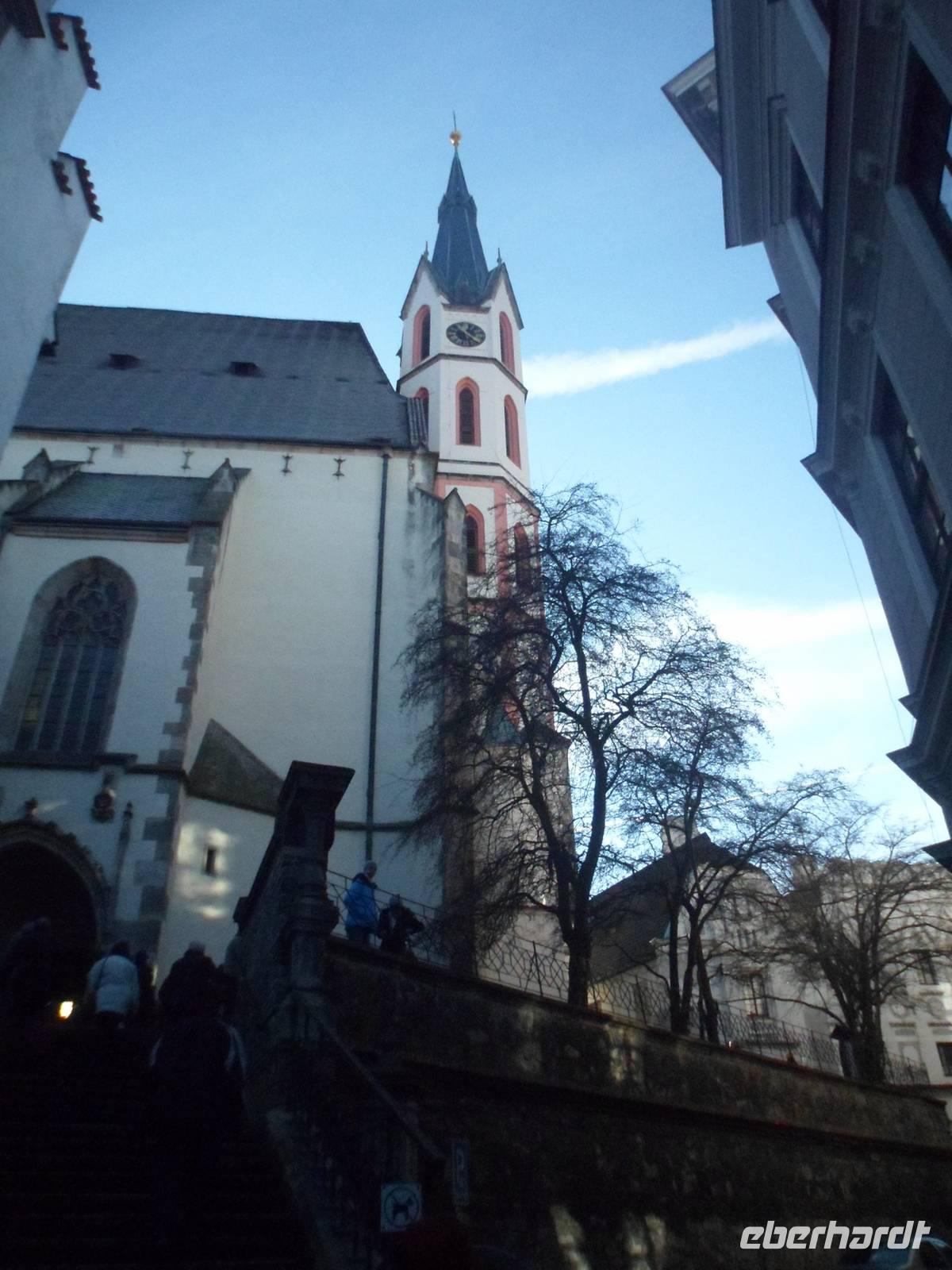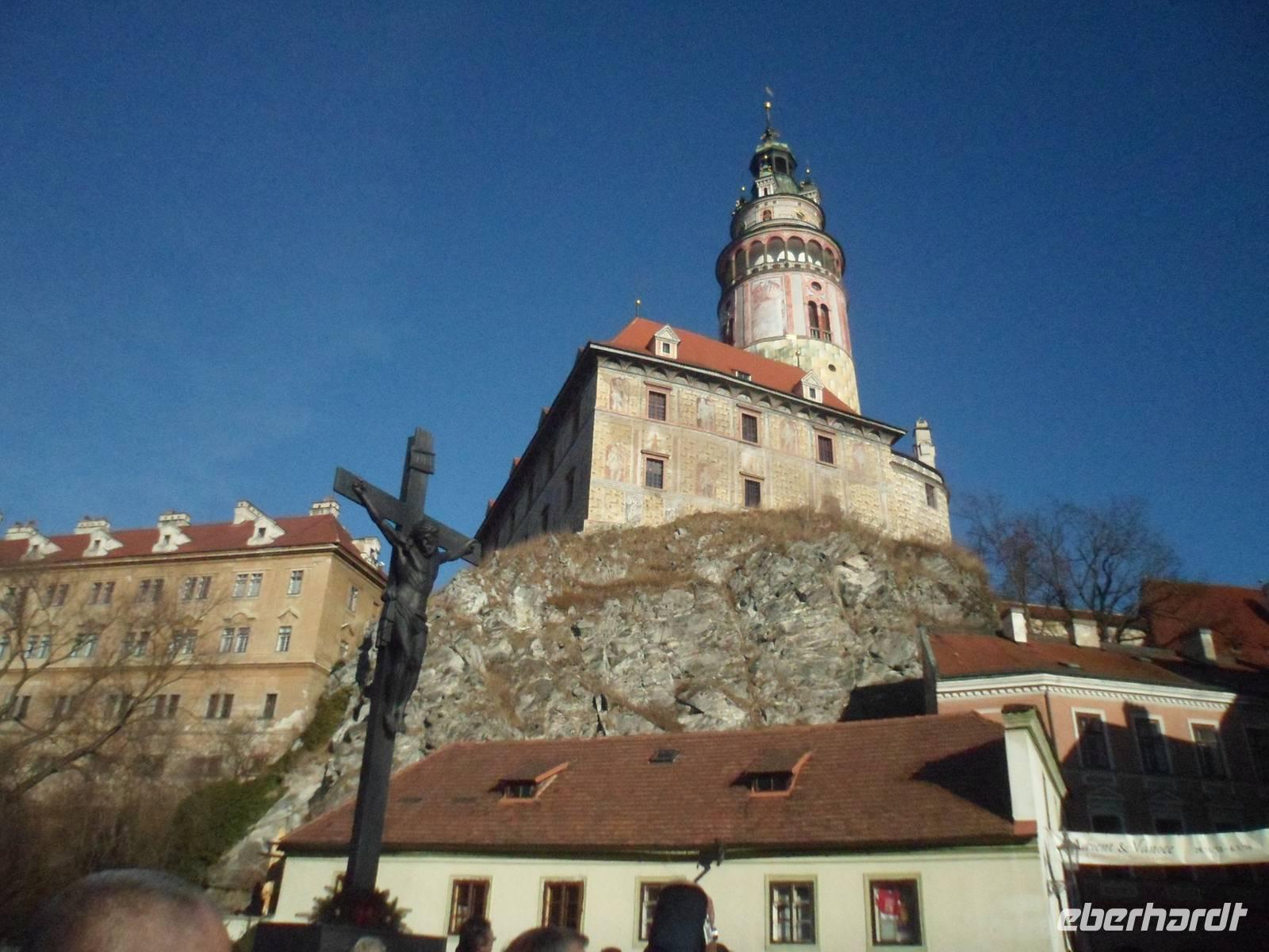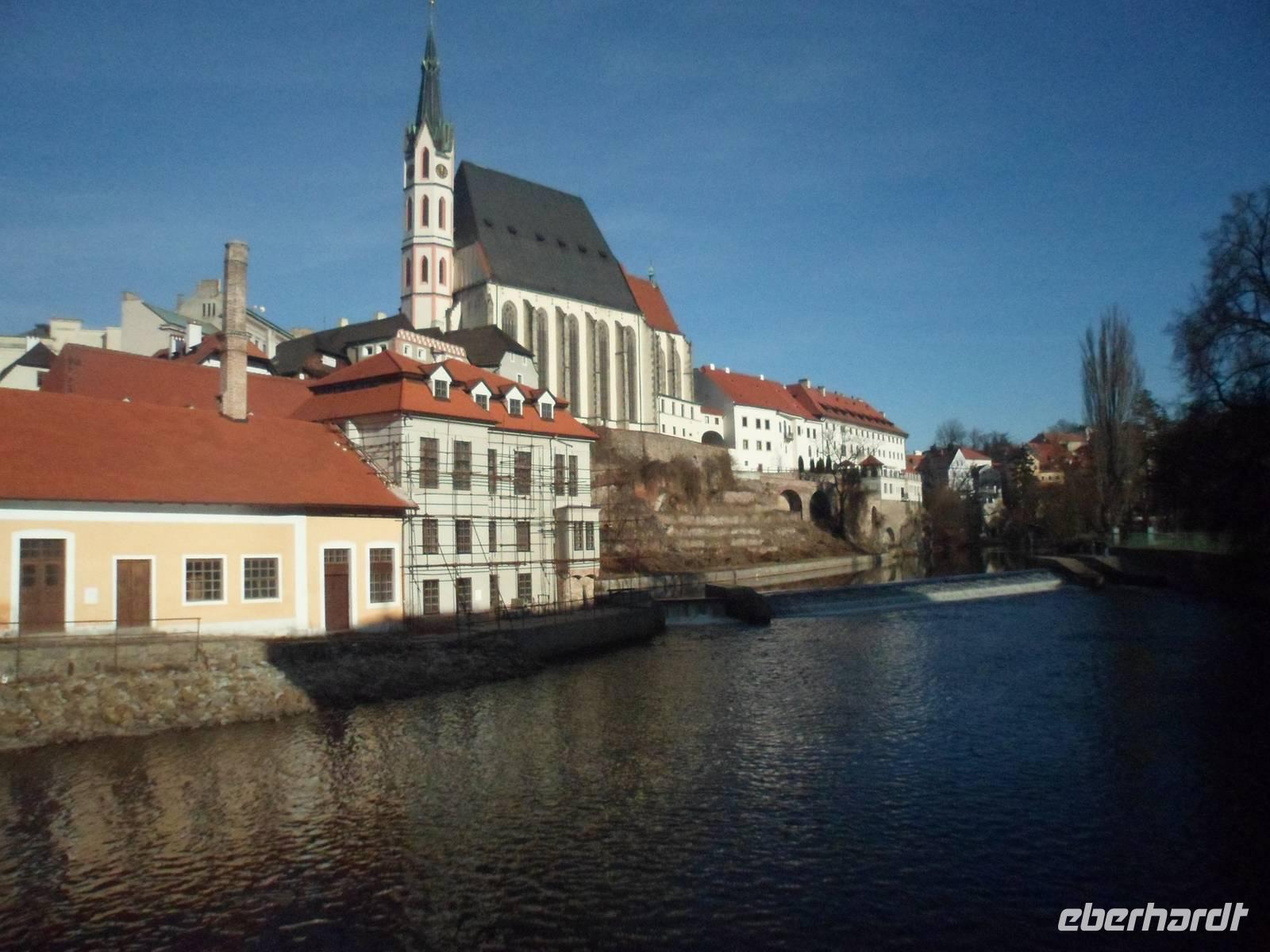 Die drei großen Adelsgeschlechter Südböhmens, die Rosen-, Eggen- und Schwarzenbergs haben hier immer wieder um-, an- und neu gebaut. Entstanden ist, nach Prag, die zweitgrößte Burganlage Böhmens mit fünf Schlosshöfen, um die sich zahlreiche Gebäude gruppieren. Unser Abstieg führte uns durch die vielen Schlosshöfe, durchs Bärentor und durch viele kleine schmale Gassen zum Marktplatz, weiter bis zur Kirche. Hier endete unser gemeinsamer Rundgang. Jeder konnte selbst die Stadt mit den schmalen Gassen und den vielen kleinen Einkaufsläden erkunden.