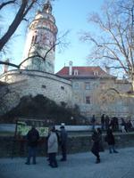 Am Parkplatz angekommen, es war noch sehr kalt, führte unser Weg hinauf zur Burg - ein etwas beschwerlicher Aufstieg, der sich aber durch die vielen schönen Ausblicke auf Altstadt und Moldauschleife gelohnt hat. Wir benutzten die schöne Aussicht für unser Gruppenfoto.