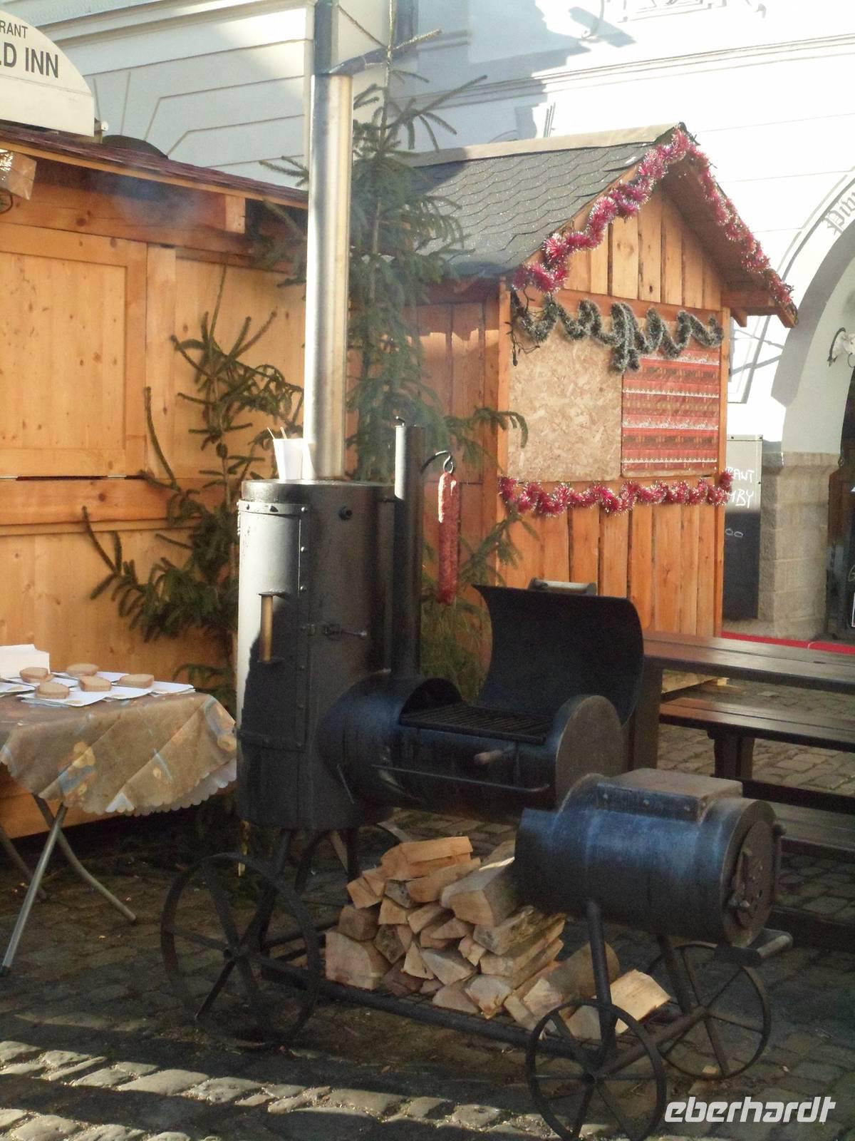 Auf dem Marktplatz war noch der Weihnachtsmarkt aufgebaut. Viele Stände luden zum Essen und zum Trinken ein. Um 13.00 Uhr gingen wir gemeinsam wieder zurück zum Bus. Unser Weg führte uns über eine Holzbrücke am Fuße der Burg zum Parkplatz.
