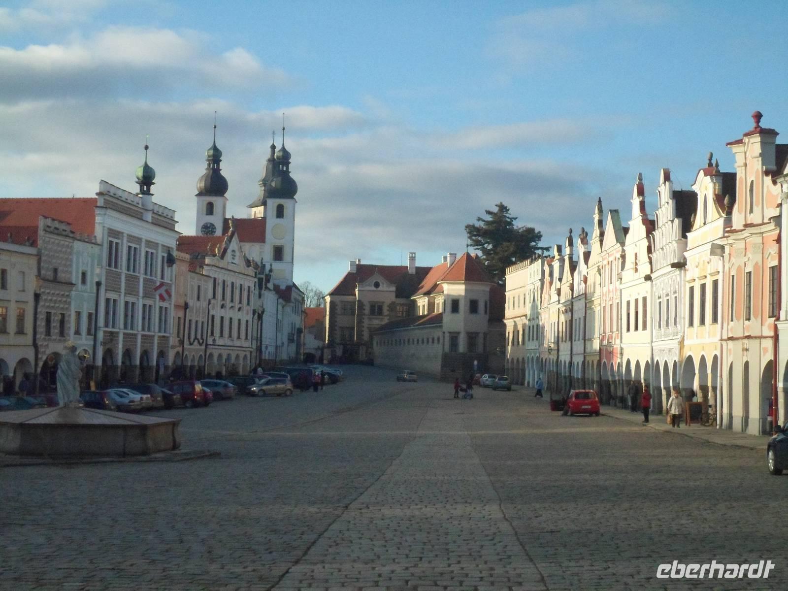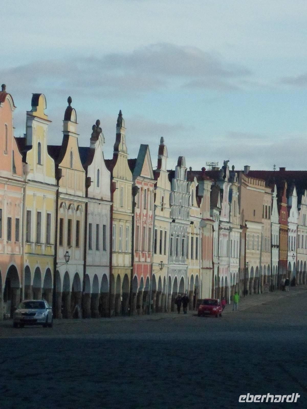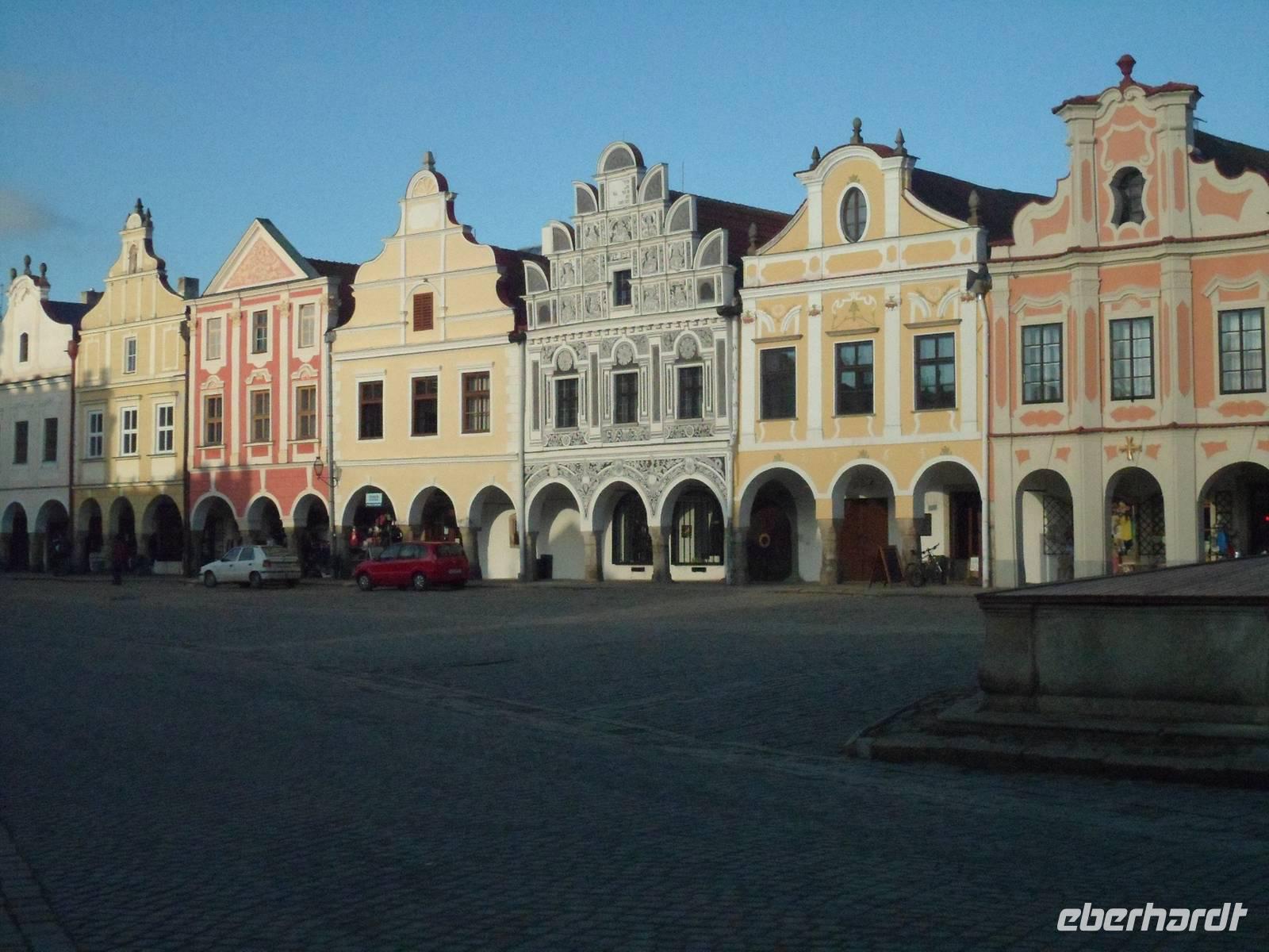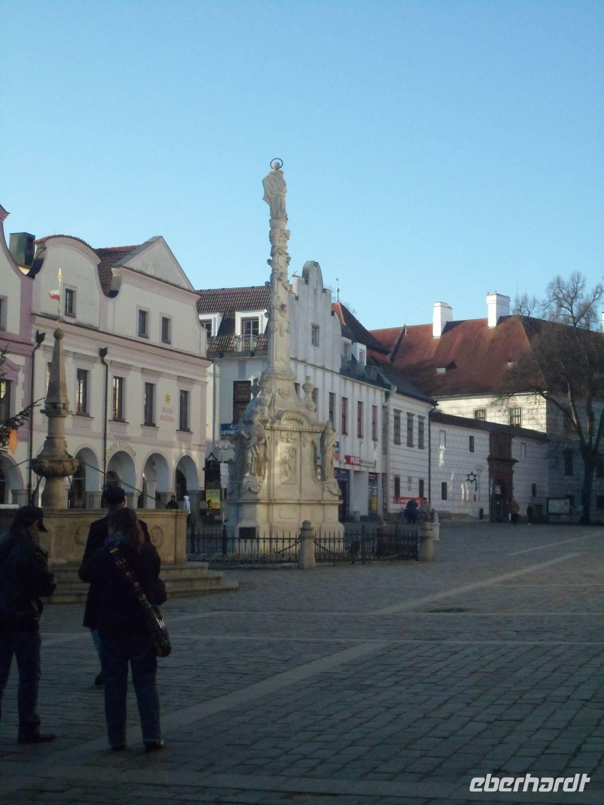 In Telc angekommen, führte unser Weg zum keilförmigen Hauptplatz mit der schönen in den Himmel rankenden Mariensäule. Da das Schloss leider nicht zu besichtigen war (montags geschlossen), hatten wir genügend Zeit die Giebel der prächtigen Renaissance- und Barockhäuser zu besichtigen. Entlang der Laubengänge konnte man kleine Galerien, Cafés und Läden entdecken und die vielen unterschiedlichen Giebel bewundern - einfach einmalig.