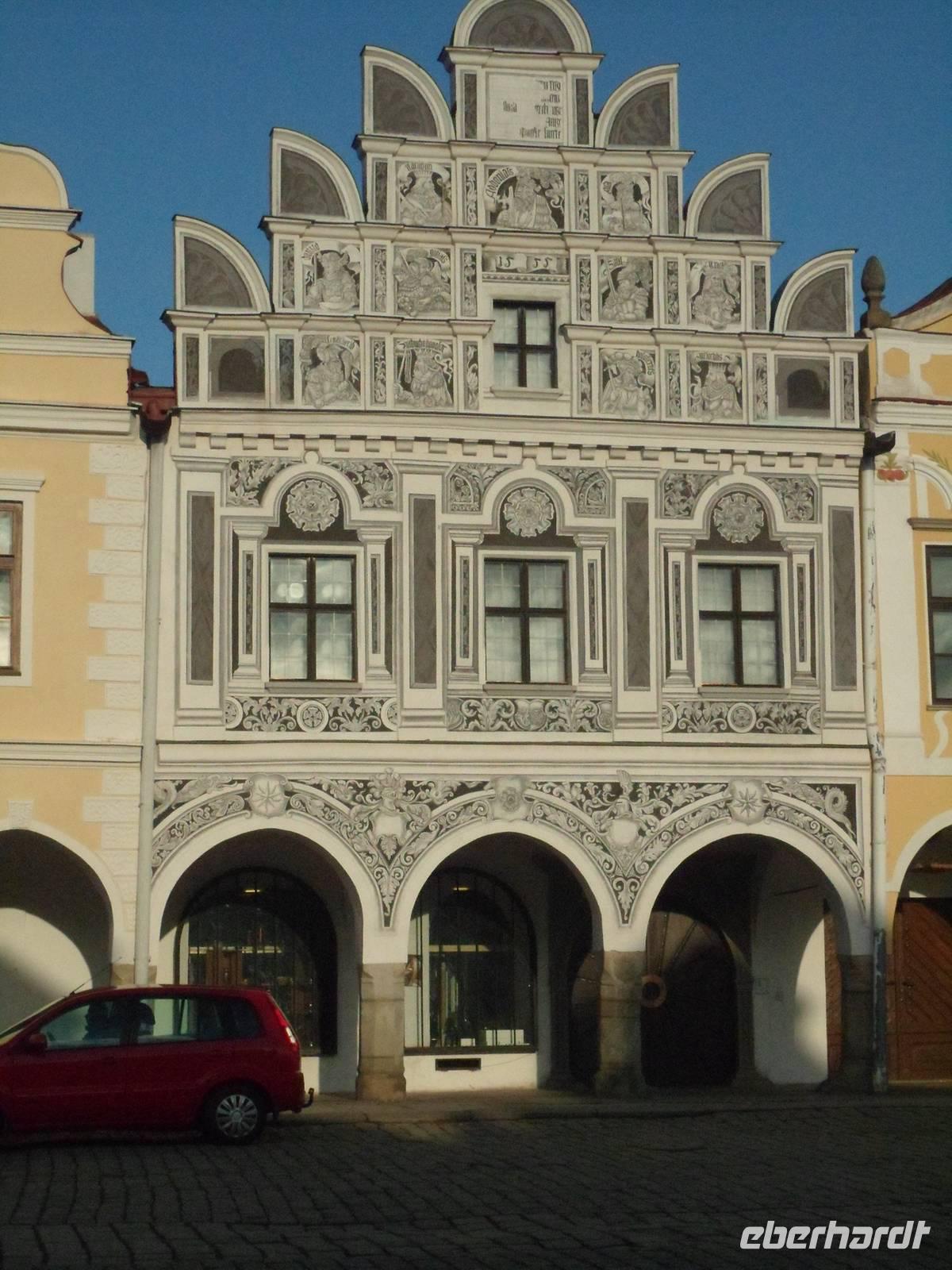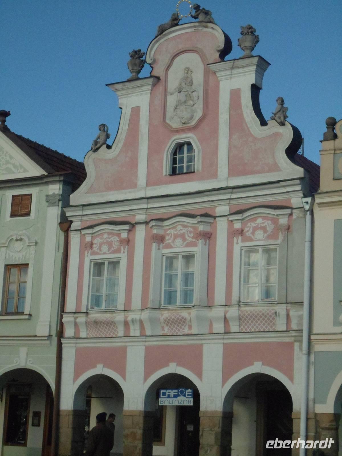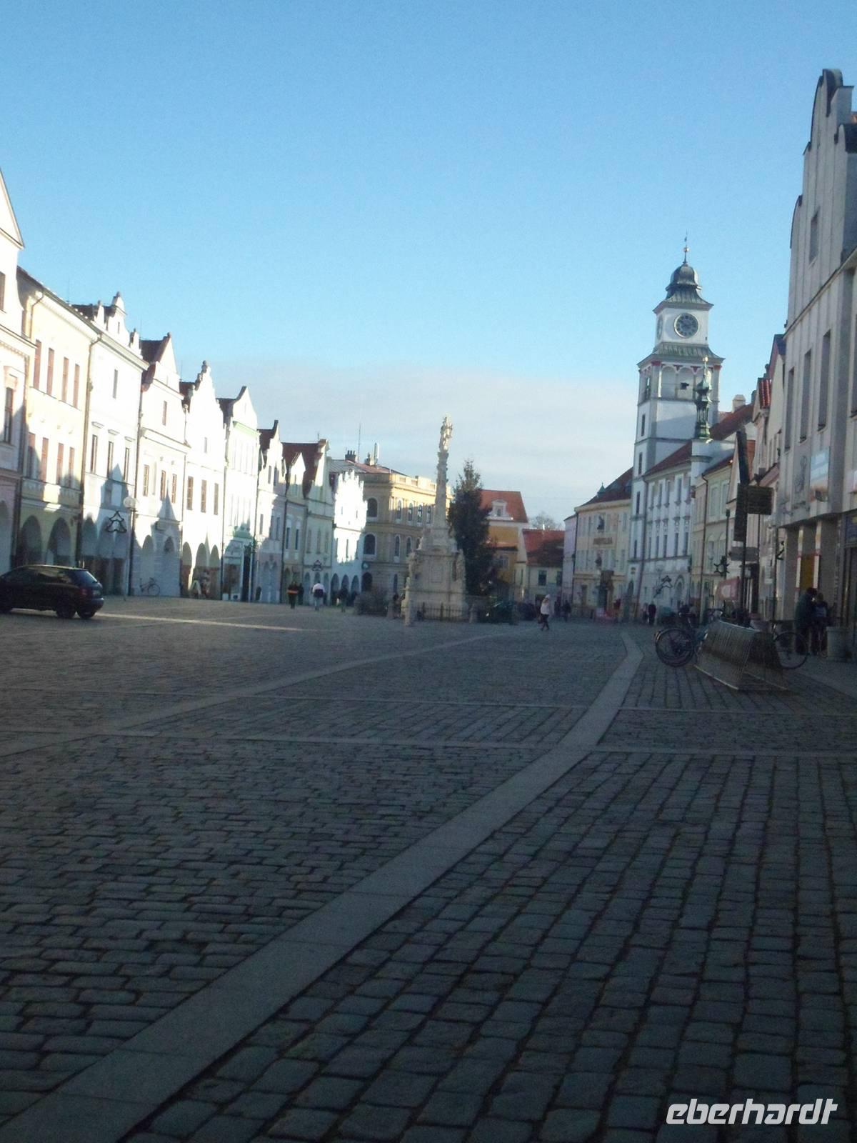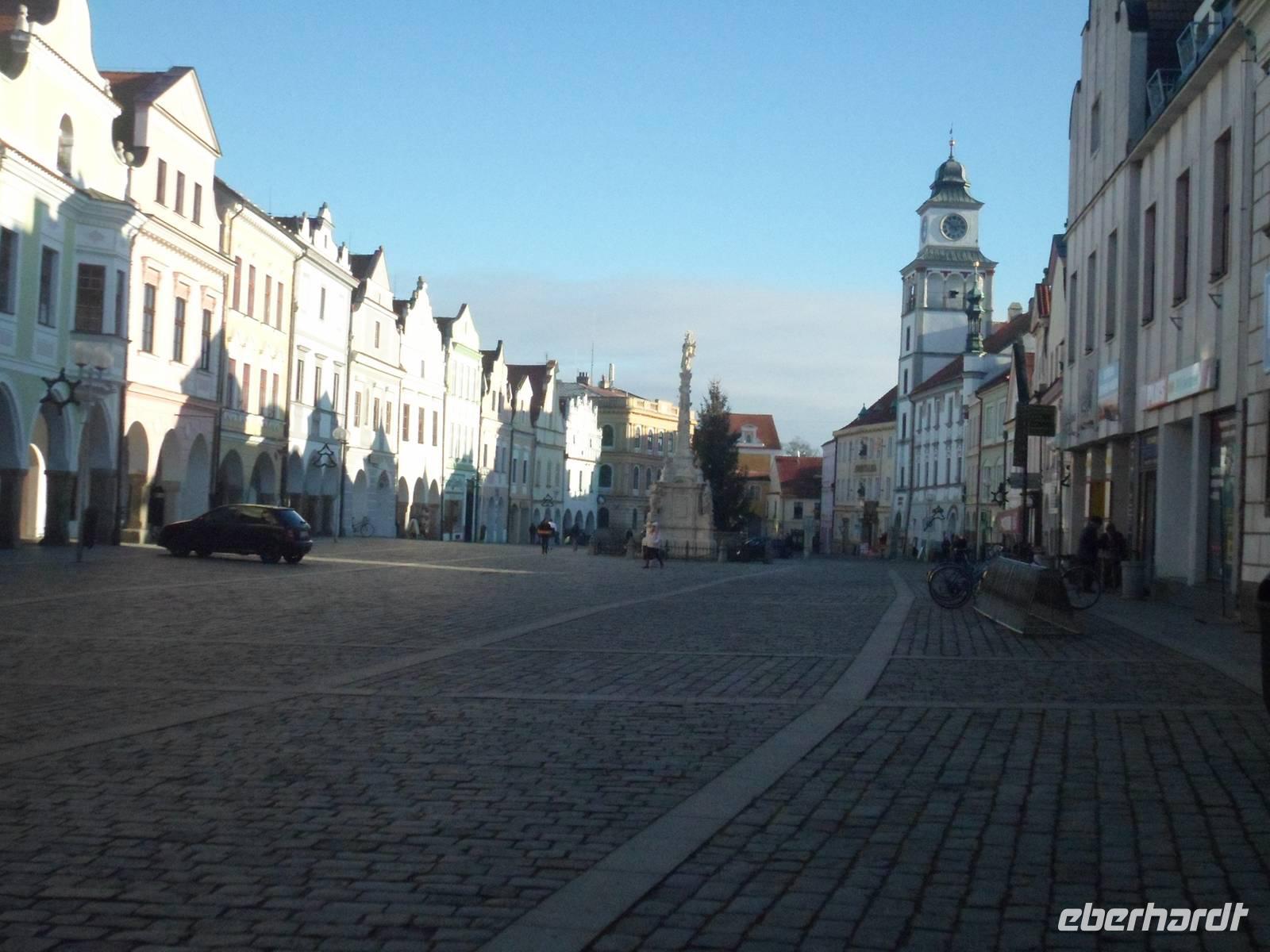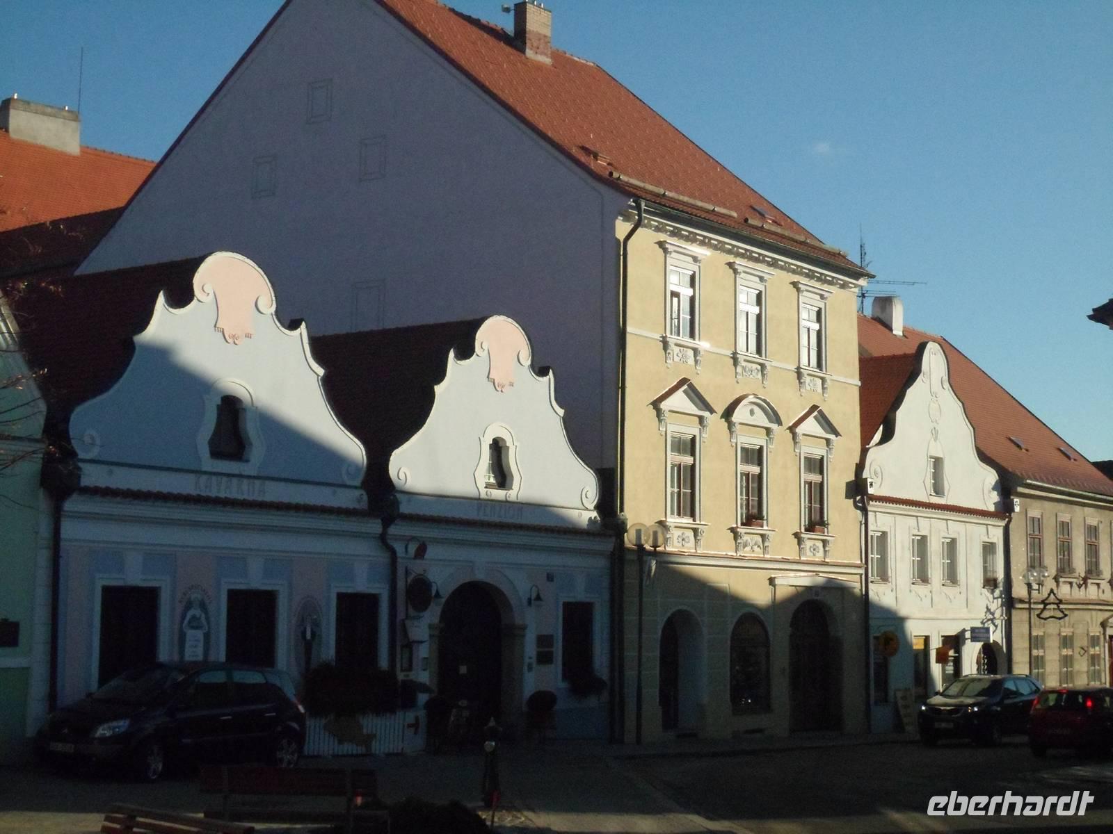 In Telc angekommen, führte unser Weg zum keilförmigen Hauptplatz mit der schönen in den Himmel rankenden Mariensäule. Da das Schloss leider nicht zu besichtigen war (montags geschlossen), hatten wir genügend Zeit die Giebel der prächtigen Renaissance- und Barockhäuser zu besichtigen. Entlang der Laubengänge konnte man kleine Galerien, Cafés und Läden entdecken und die vielen unterschiedlichen Giebel bewundern - einfach einmalig.