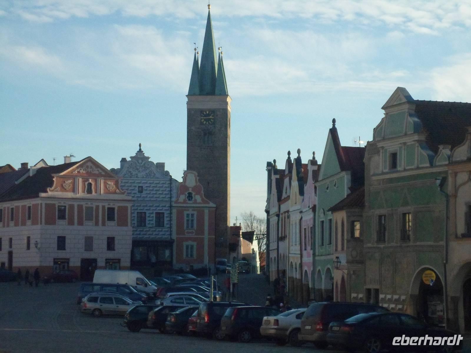Danach besichtigten wir die Brauerei, sie zählt zu den ältesten Brauereien der Welt. Zurück zum Marktplatz, wo für uns ein Mittagessen schon bestellt war. Nach den Essen fuhren wir mit dem Bus nach Telc. Unterwegs ein kleiner Fotostopp in Neuhaus, weiter durch Böhmisch-Kanada. Es war wie eine Berg- und Talfahrt durch Wälder und Felder, vorbei an vielen Teichen und durch kleine Ortschaften.