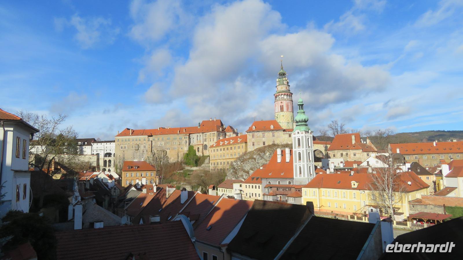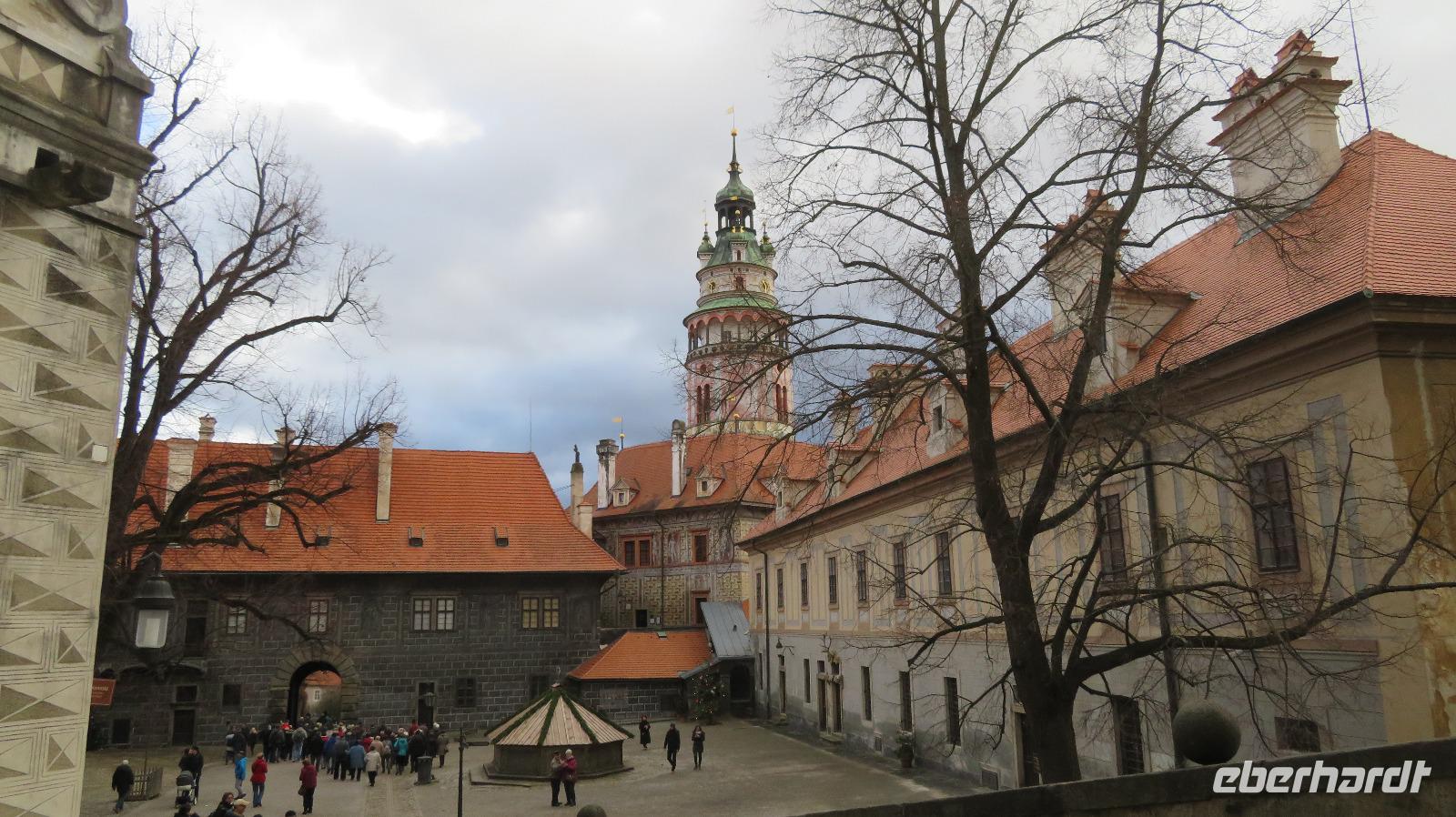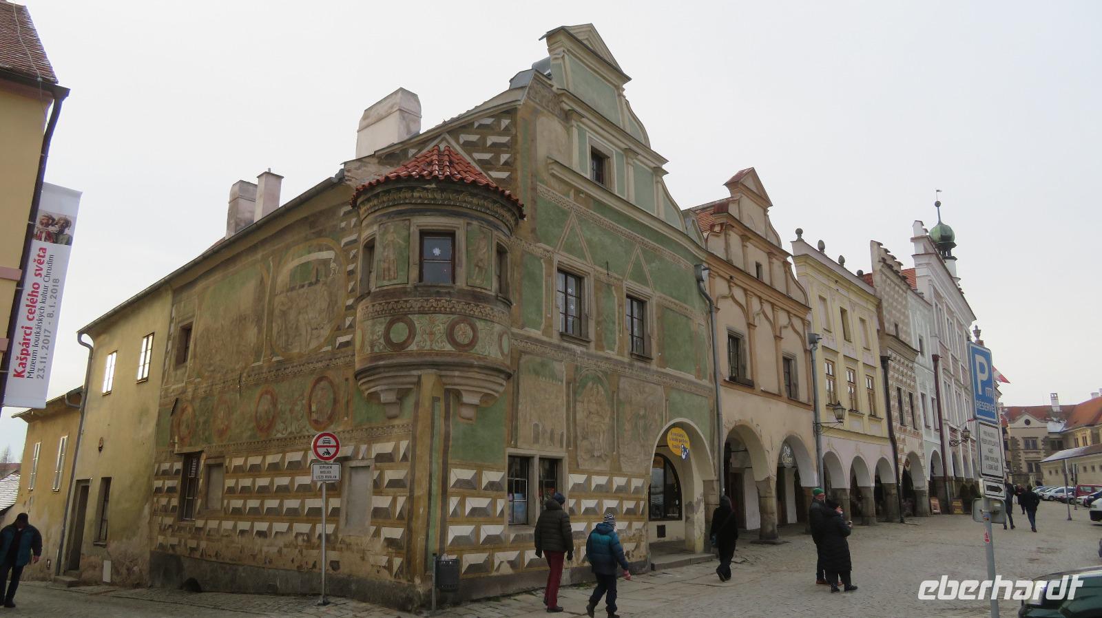 Auf dem Masaryk-Platz mit herrlich renovierten Laubenganghäusern bewundern wir die Fassaden im Stil der Renaissance und des Barock. Das Renaissance-Schloss der Familie Schwarzenberg, eines der größten des Landes, ist in der Winterzeit nur von außen zu besichtigen. Auch für den Englischen Garten reicht die Zeit nur für einen kurzen Blick.