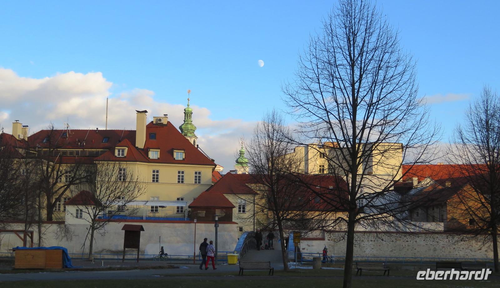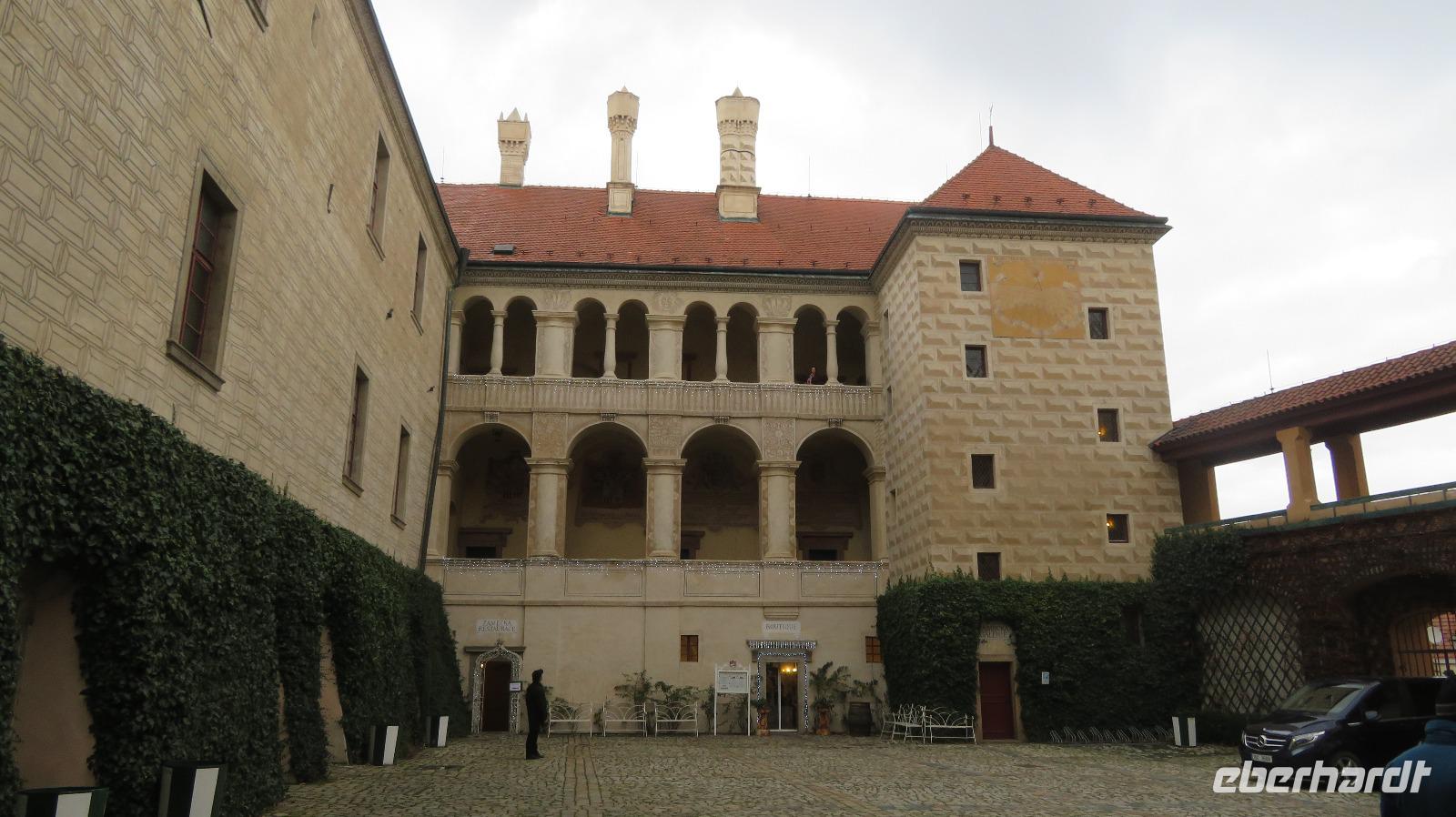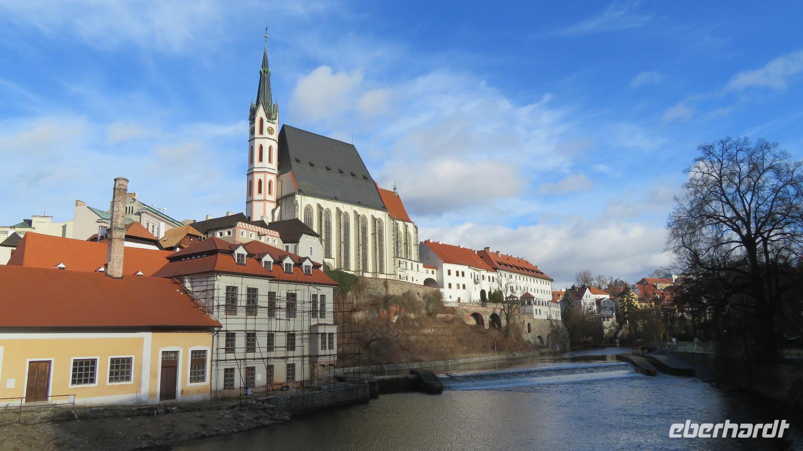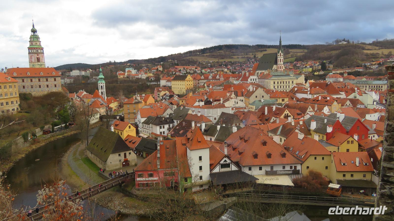 Auf dem Masaryk-Platz mit herrlich renovierten Laubenganghäusern bewundern wir die Fassaden im Stil der Renaissance und des Barock. Das Renaissance-Schloss der Familie Schwarzenberg, eines der größten des Landes, ist in der Winterzeit nur von außen zu besichtigen. Auch für den Englischen Garten reicht die Zeit nur für einen kurzen Blick.