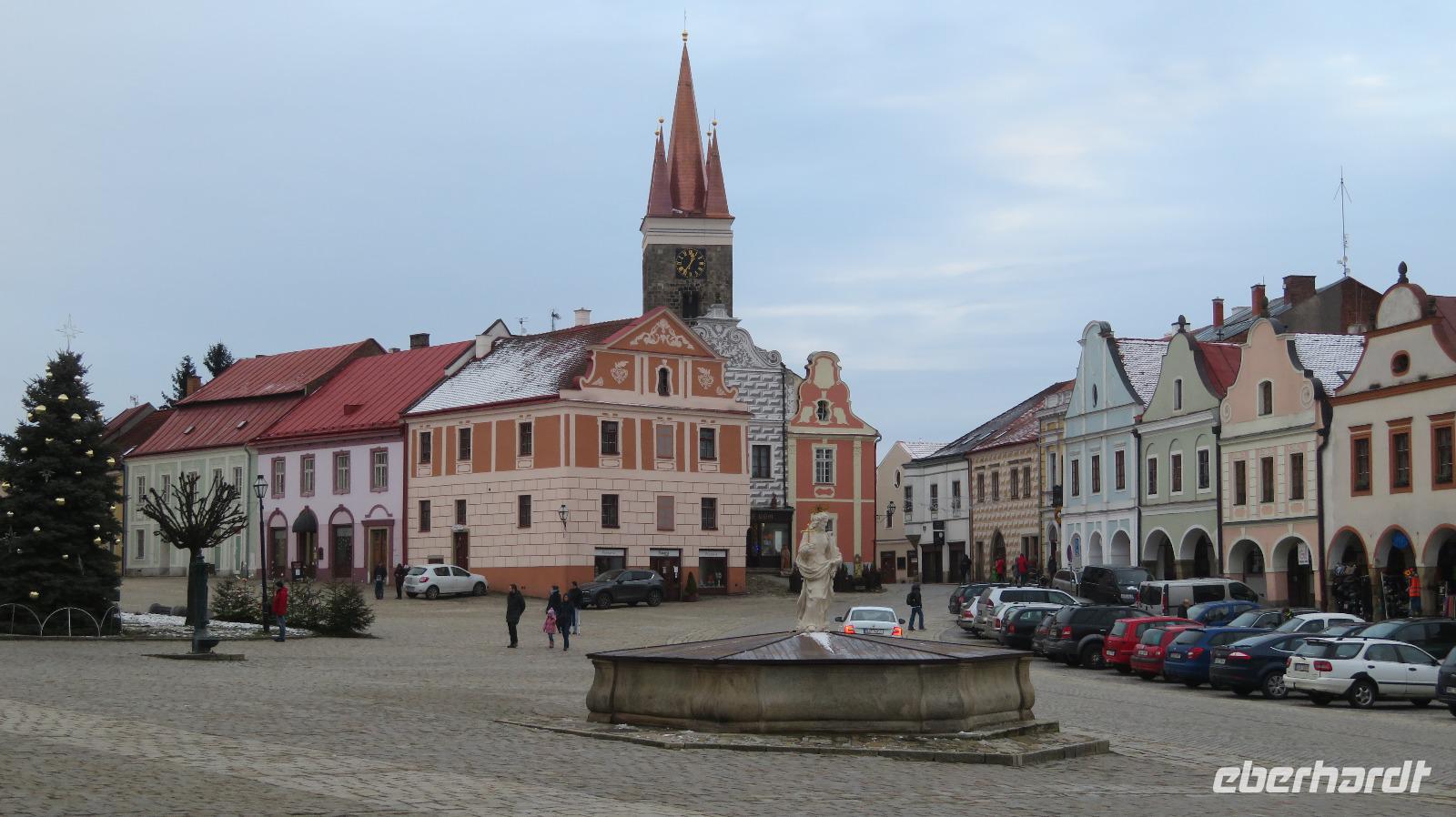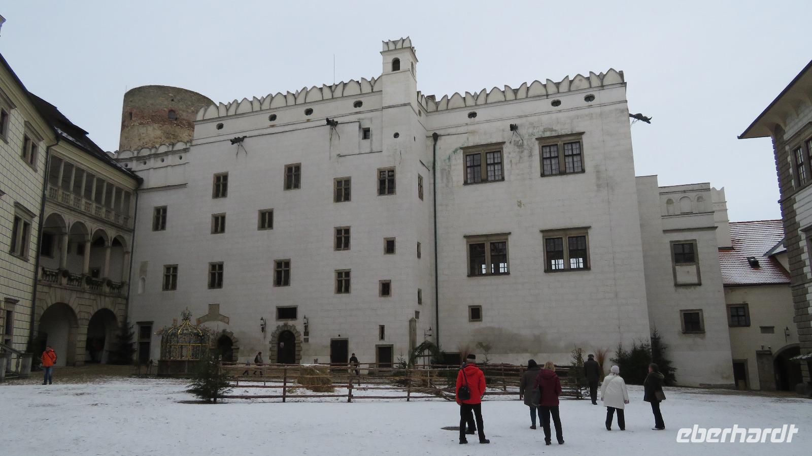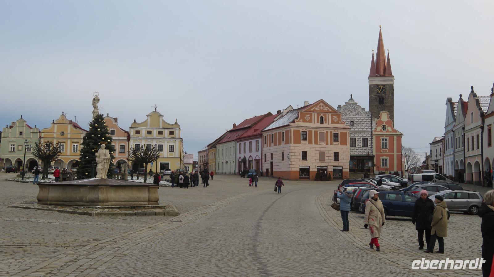 Heute steht Kanada auf dem Programm, allerdings das Böhmische. So wird die Umgebung von Jindrichuv Hradec - Neuhaus genannt. Zuerst ein Stopp in Trebon - Wittingau. In der Umgebung viele Teiche, die die Grundlage des tschechischen Weihnachtsessens ins ganze Land liefern, nämlich Karpfen. Über einen hübschen Marktplatz bringt uns Jana zum Schloss.