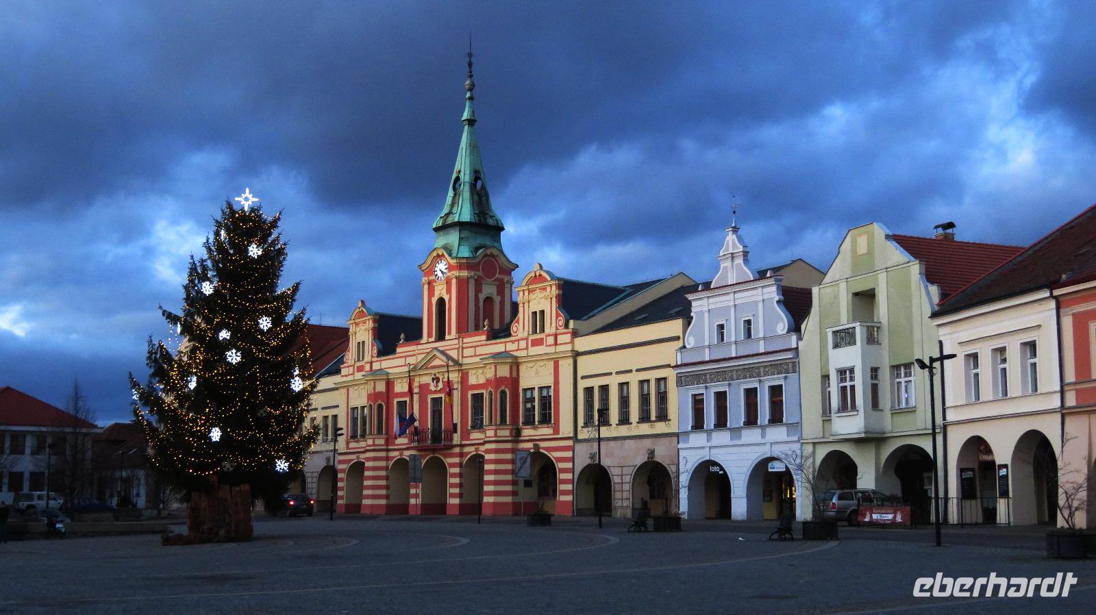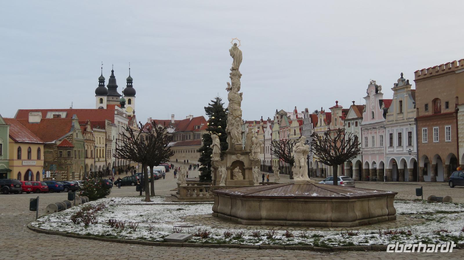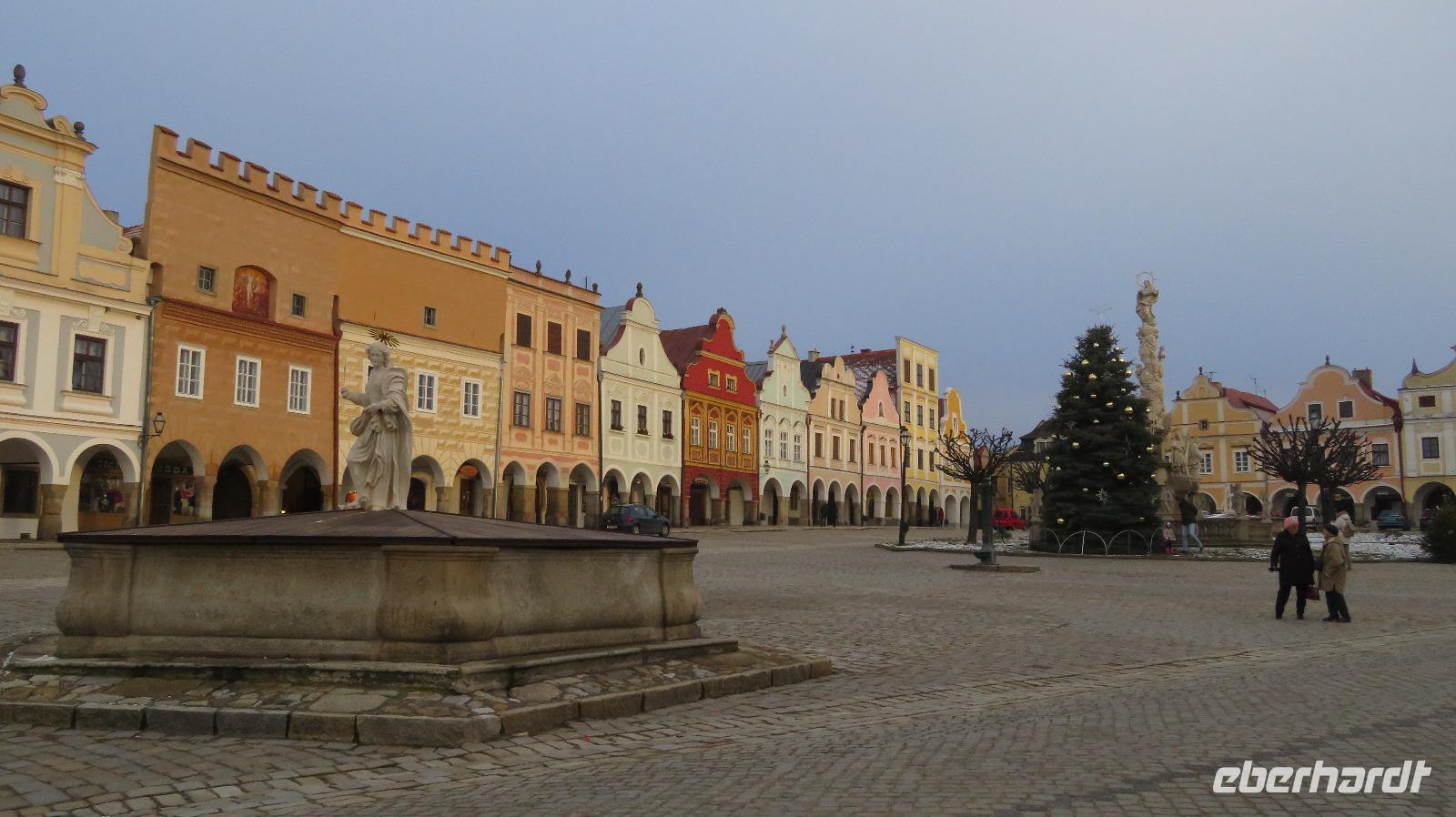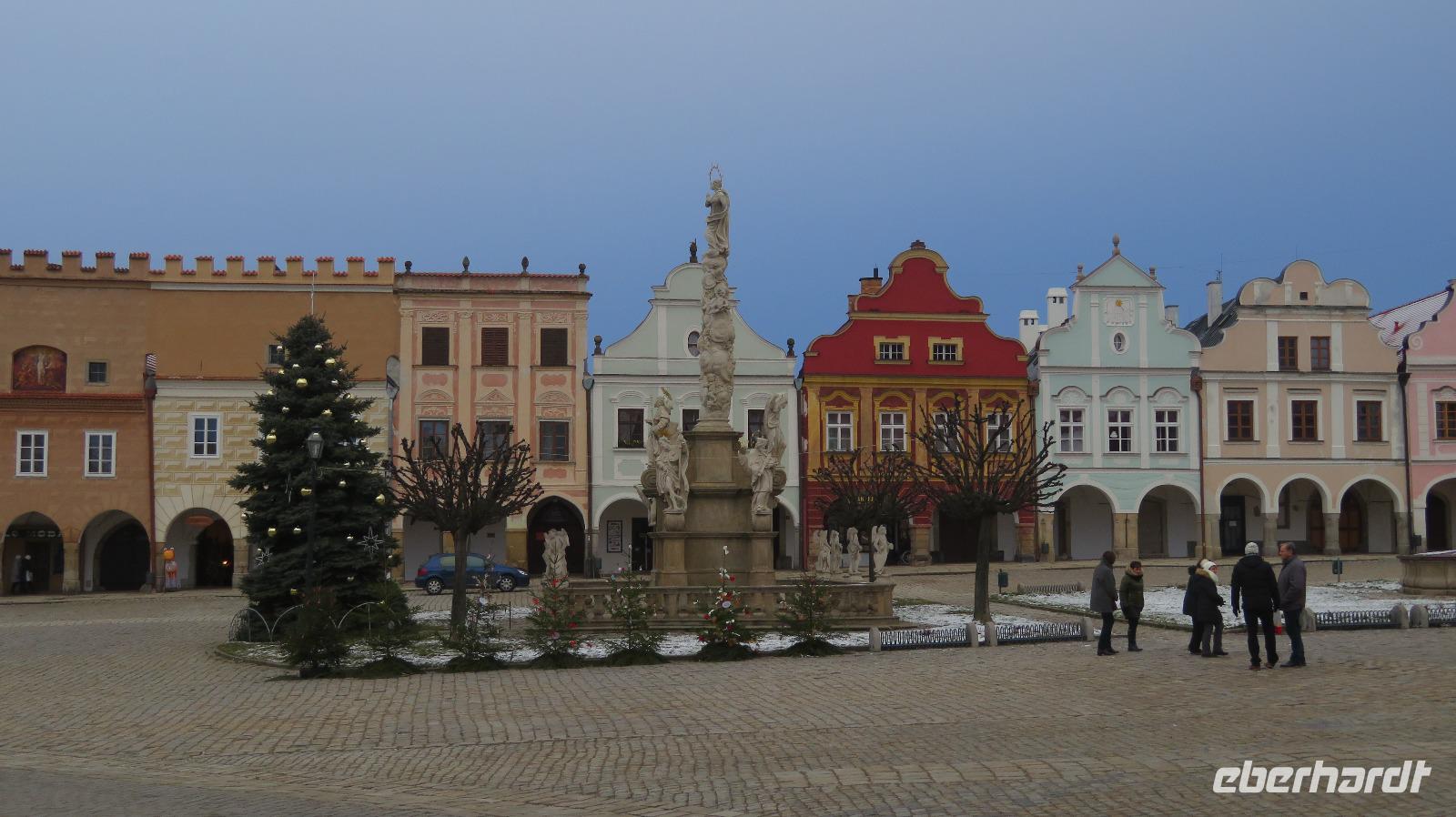 Heute steht Kanada auf dem Programm, allerdings das Böhmische. So wird die Umgebung von Jindrichuv Hradec - Neuhaus genannt. Zuerst ein Stopp in Trebon - Wittingau. In der Umgebung viele Teiche, die die Grundlage des tschechischen Weihnachtsessens ins ganze Land liefern, nämlich Karpfen. Über einen hübschen Marktplatz bringt uns Jana zum Schloss.
