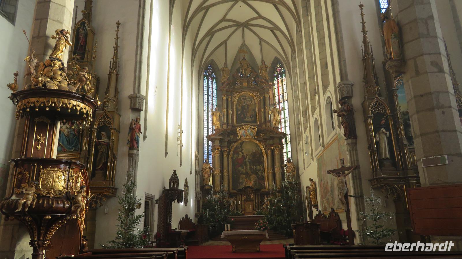 Unsere örtliche Reiseleitung Jana führt uns bei einem kleinen Stadtrundgang durch die berühmte Bierstadt Budweis. Hier liegt sogar etwas Schnee und verzaubert die Landschaft. Bei der Führung bekommen wir Informationen zum Stadtplatz namens Premysl-Otakar II. mit dem barocken Rathaus. Wir schauen in die barocke St.Nikolaus-Kathedrale, hören die Historie des 72 m hohen Schwarzen Turmes.